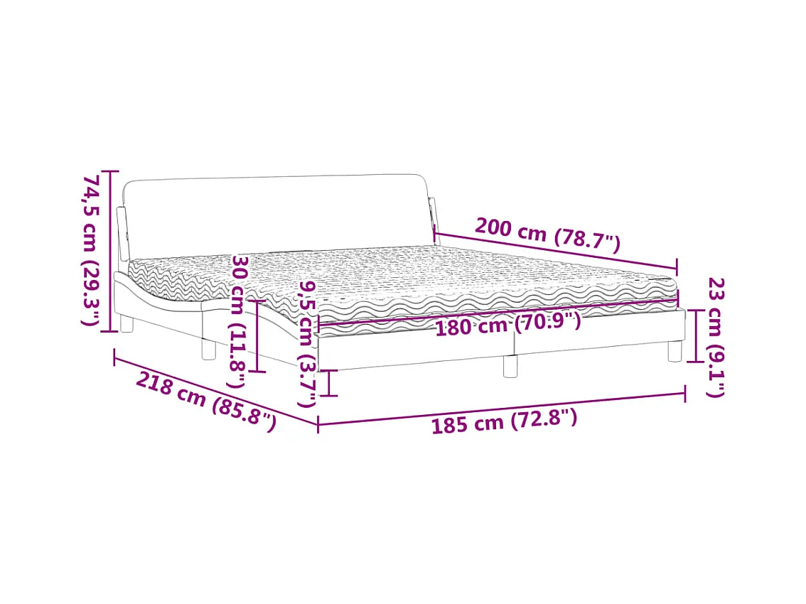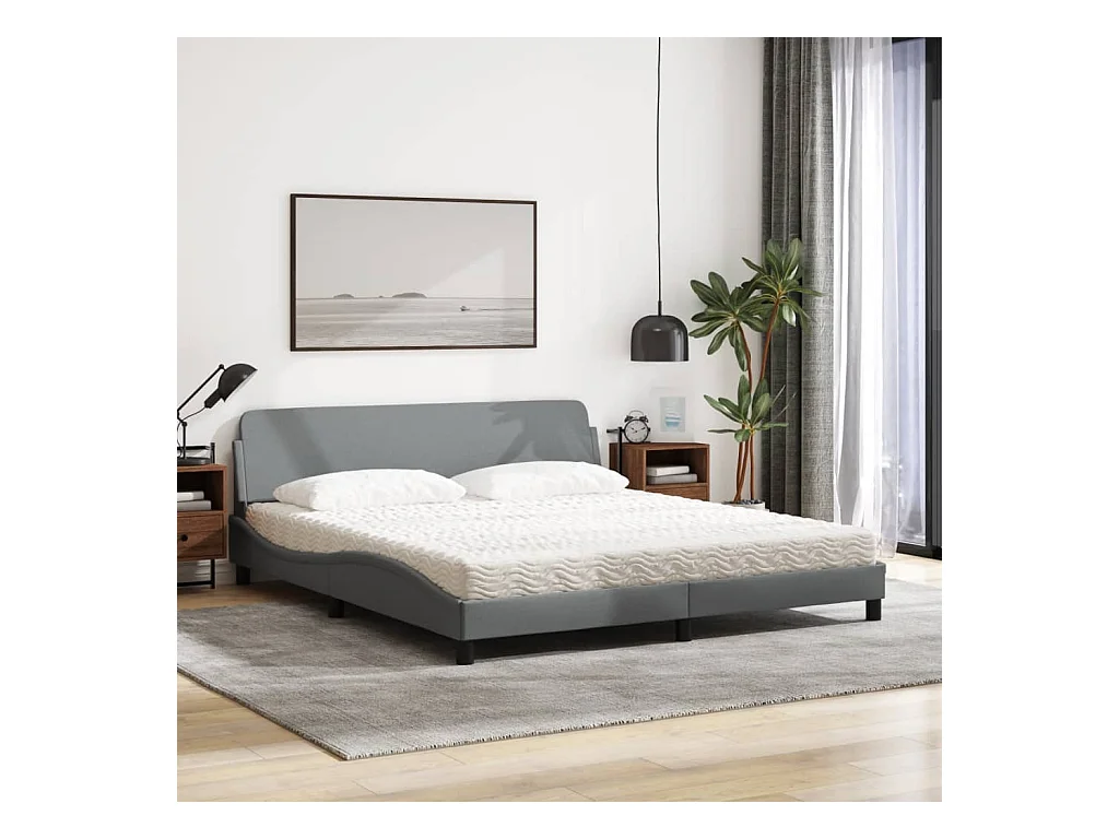 Lit avec matelas gris clair 180x200 cm tissu