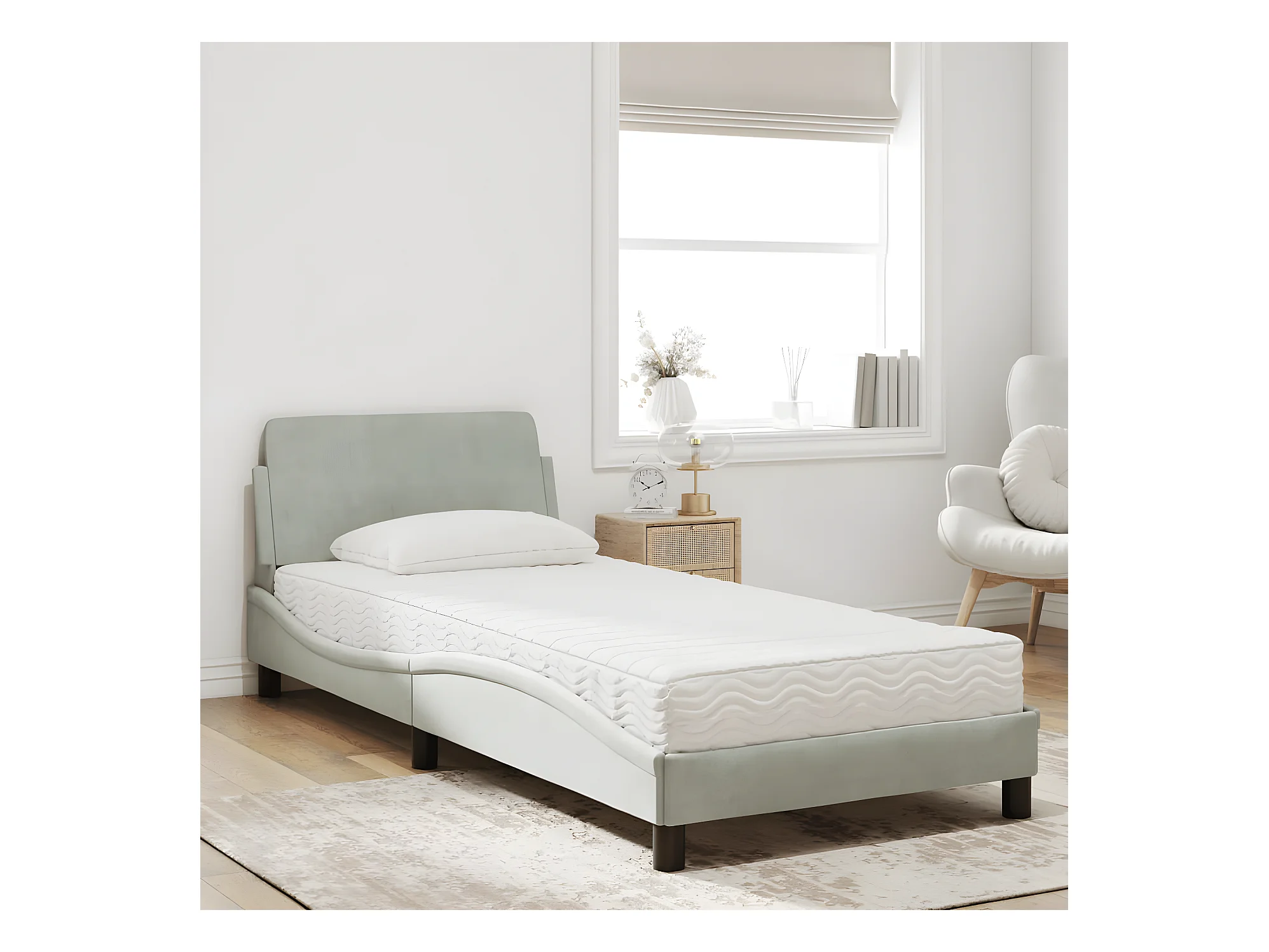 Lit avec matelas gris clair 90x200 velours