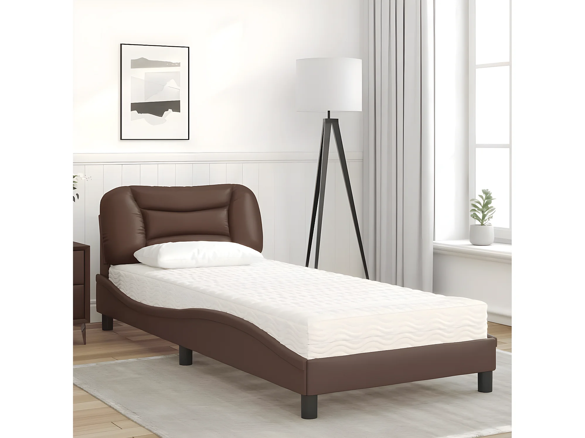 Lit avec matelas marron 80x200 similicuir
