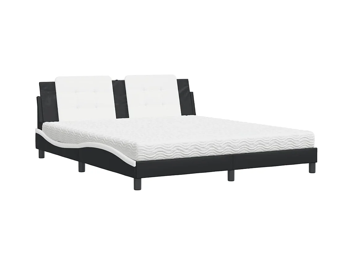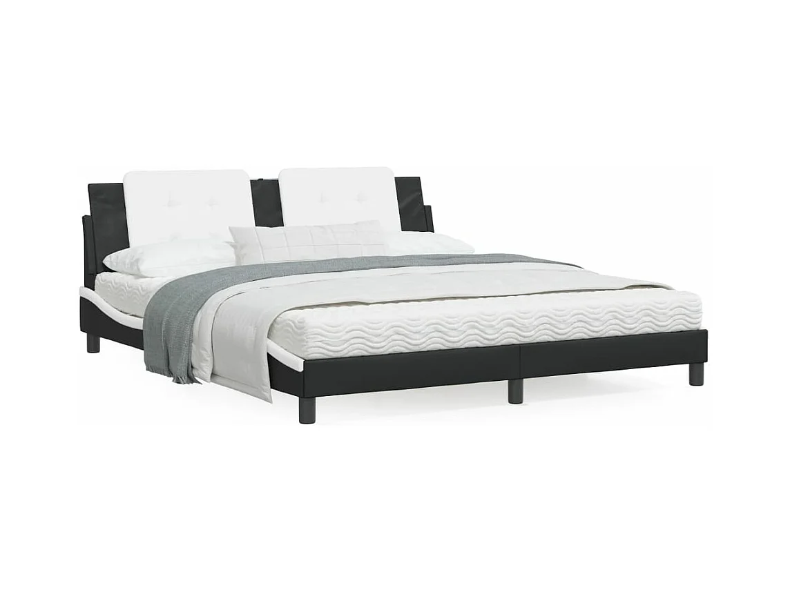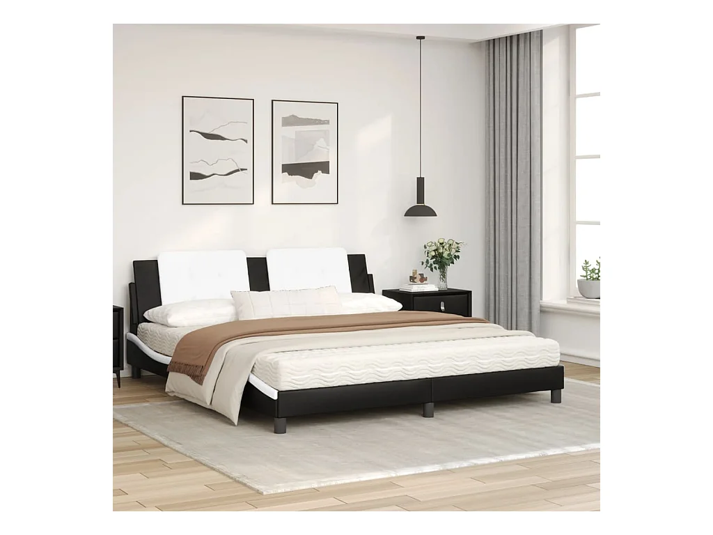 Lit avec matelas noir et blanc 180x200 similicuir