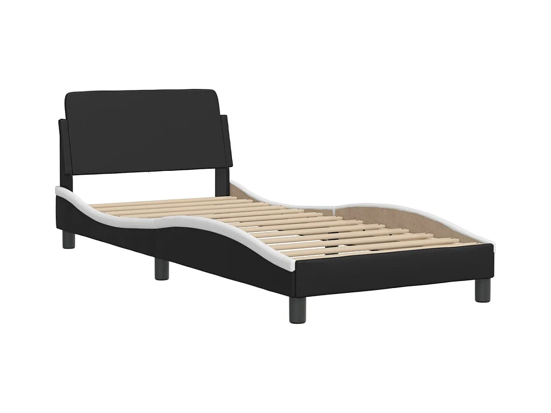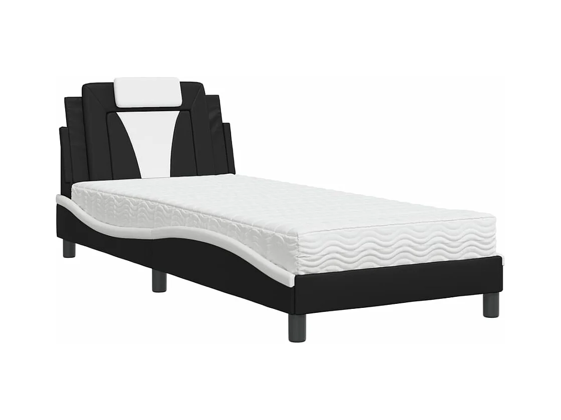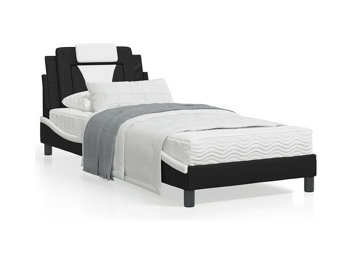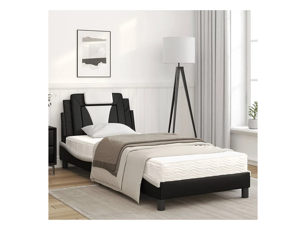 Lit avec matelas noir et blanc 90x200 similicuir