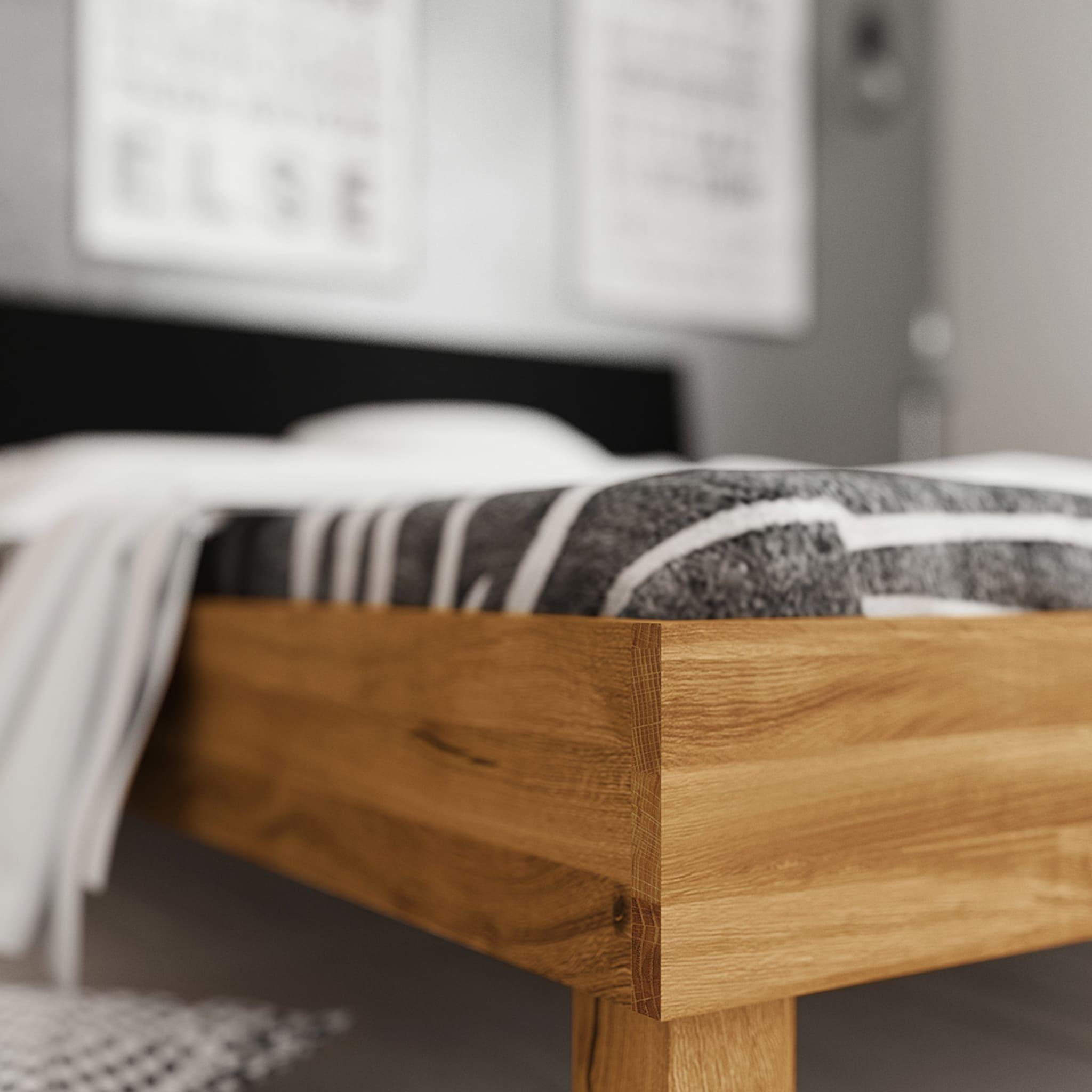 Lit avec pieds carrés en chêne massif clair 140x190 et tête de lit noire - LT36005