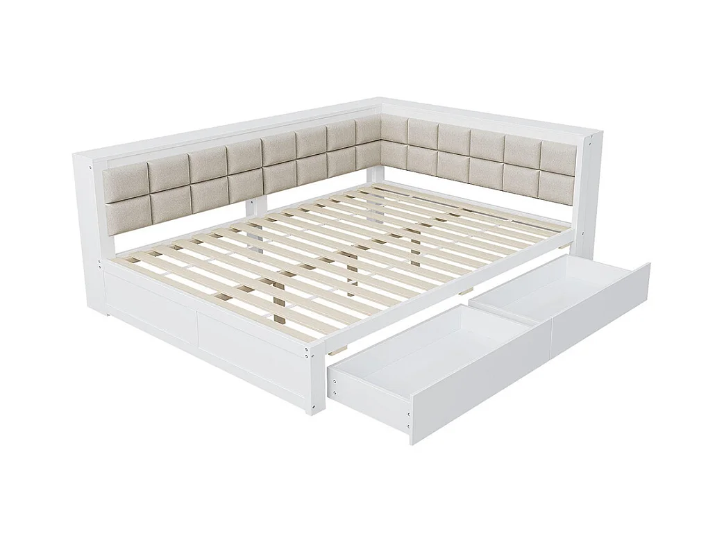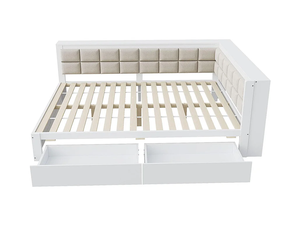 Lit avec rangement en bois de pin 140x200 multifonctionnel dossier moelleux grand tiroir pour adolescent blanc