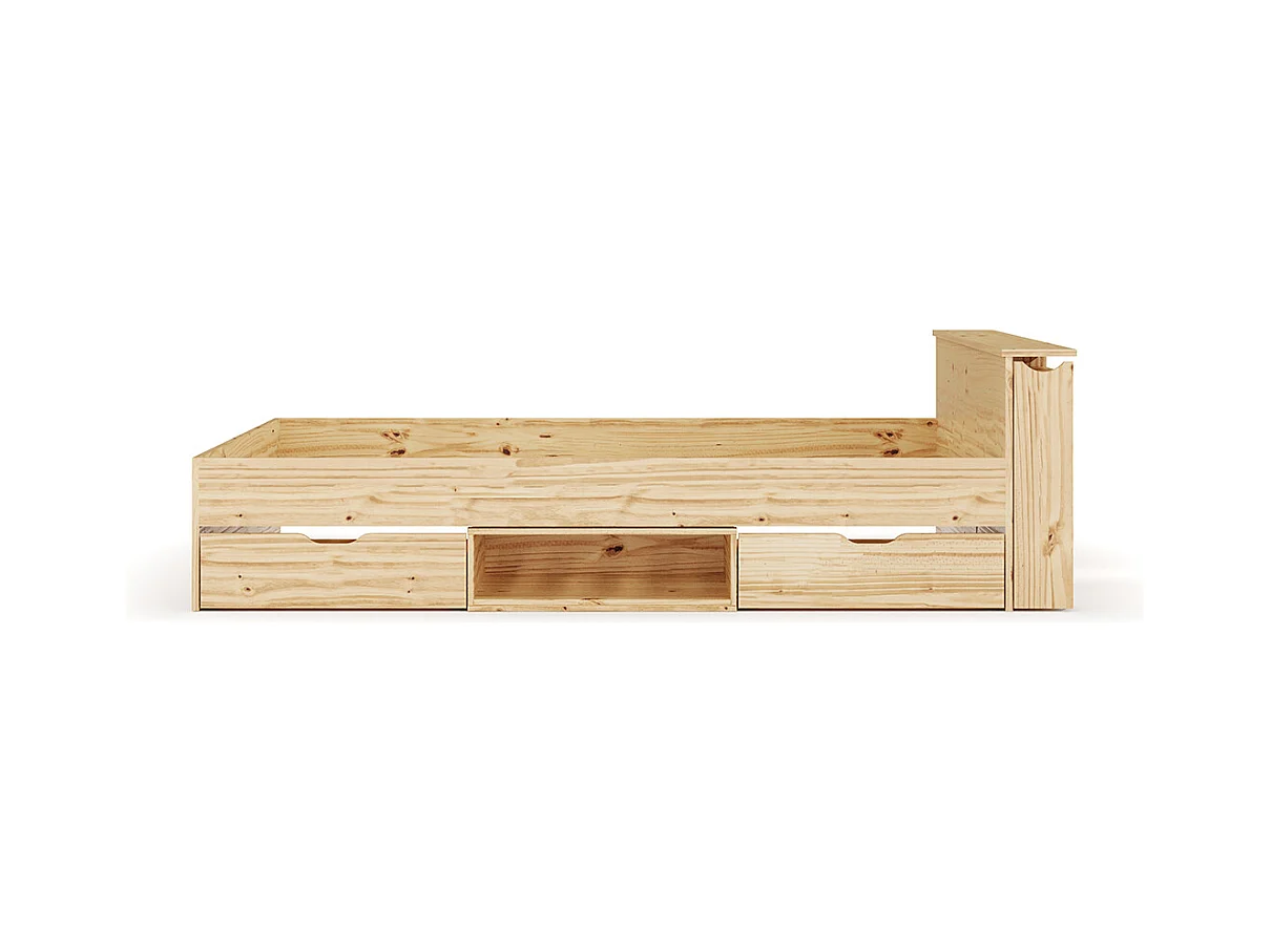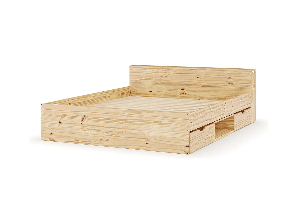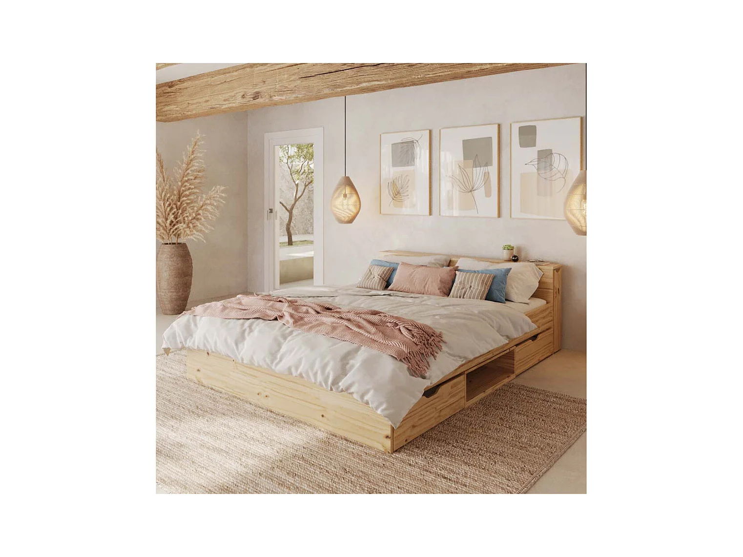 Lit avec rangement et 2 tiroirs 160x200 cm bois massif bois naturel JUDY