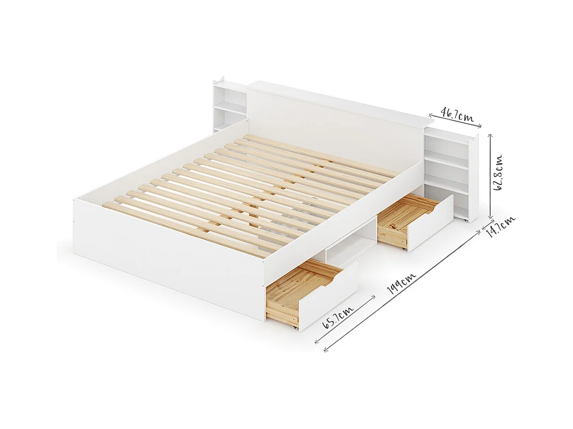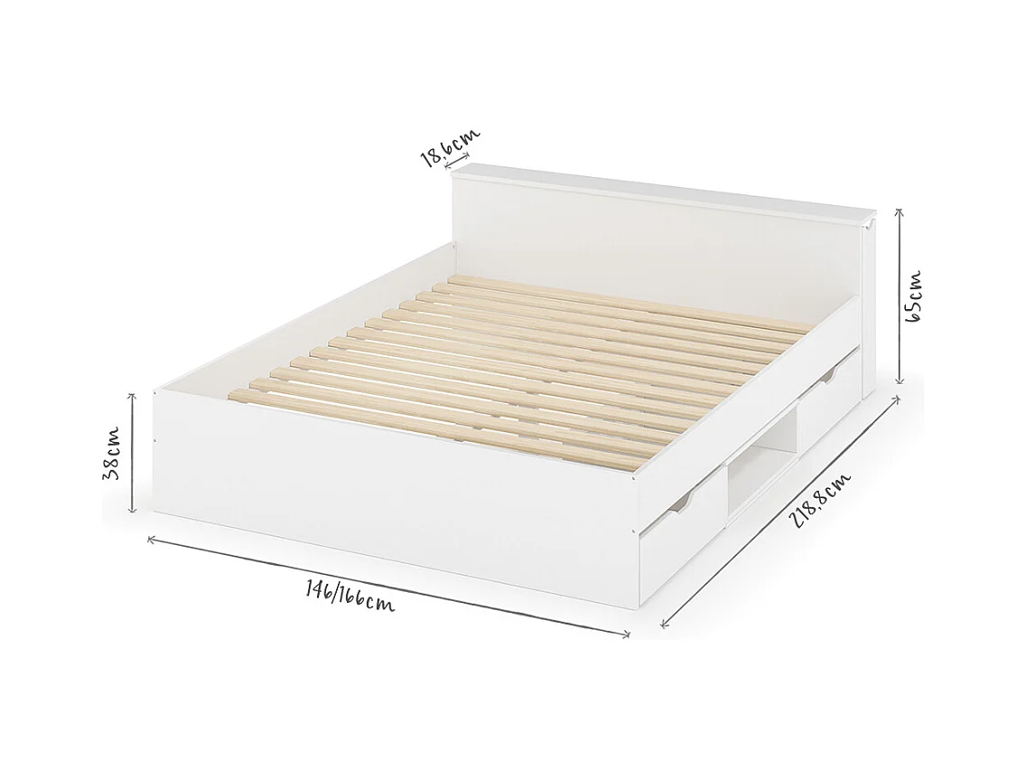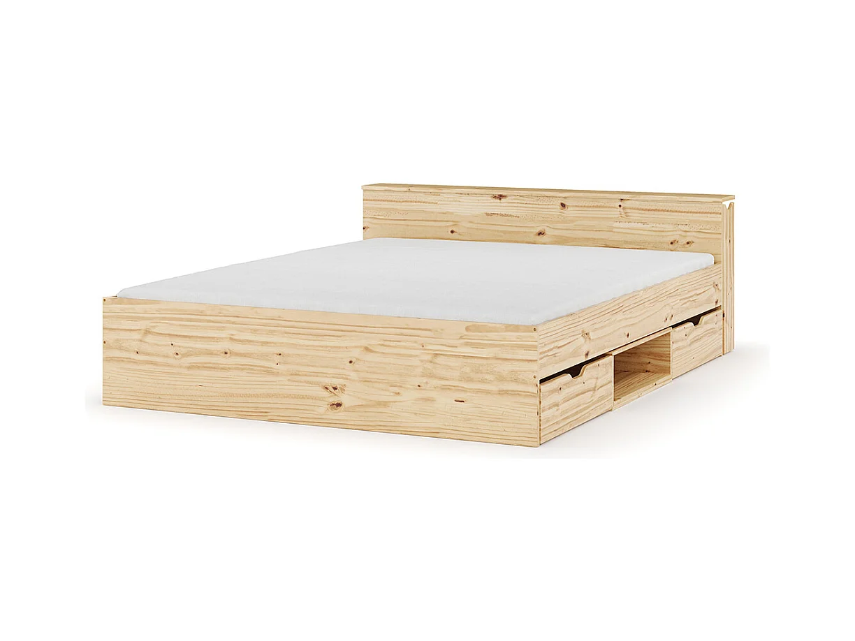 Lit avec rangement et 2 tiroirs 160x200 cm bois massif bois naturel JUDY