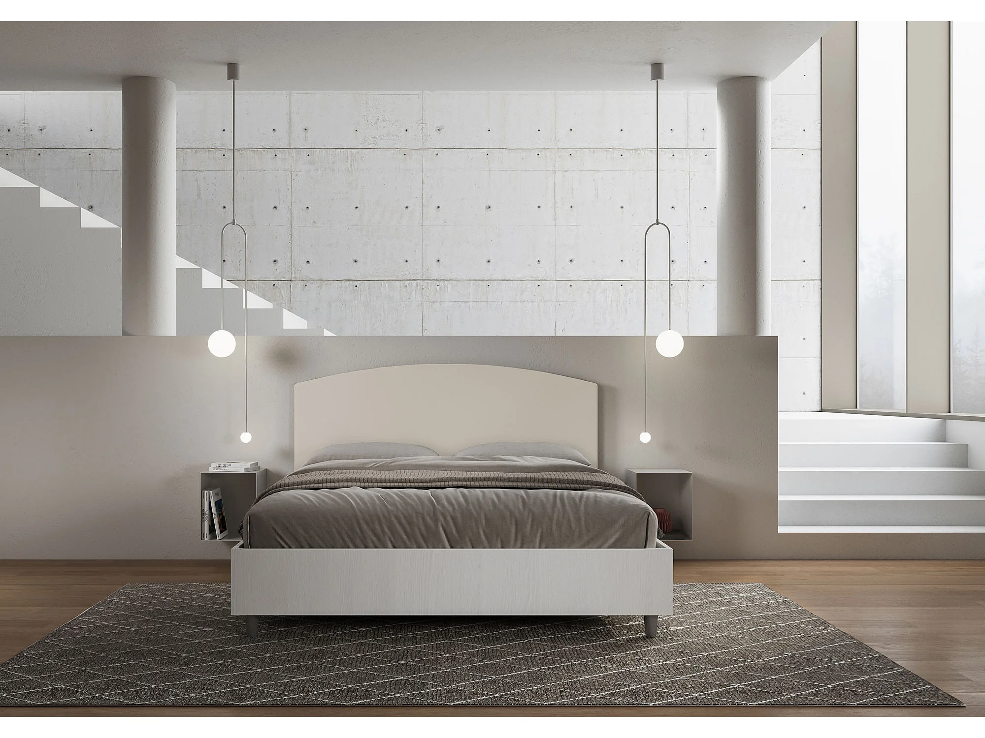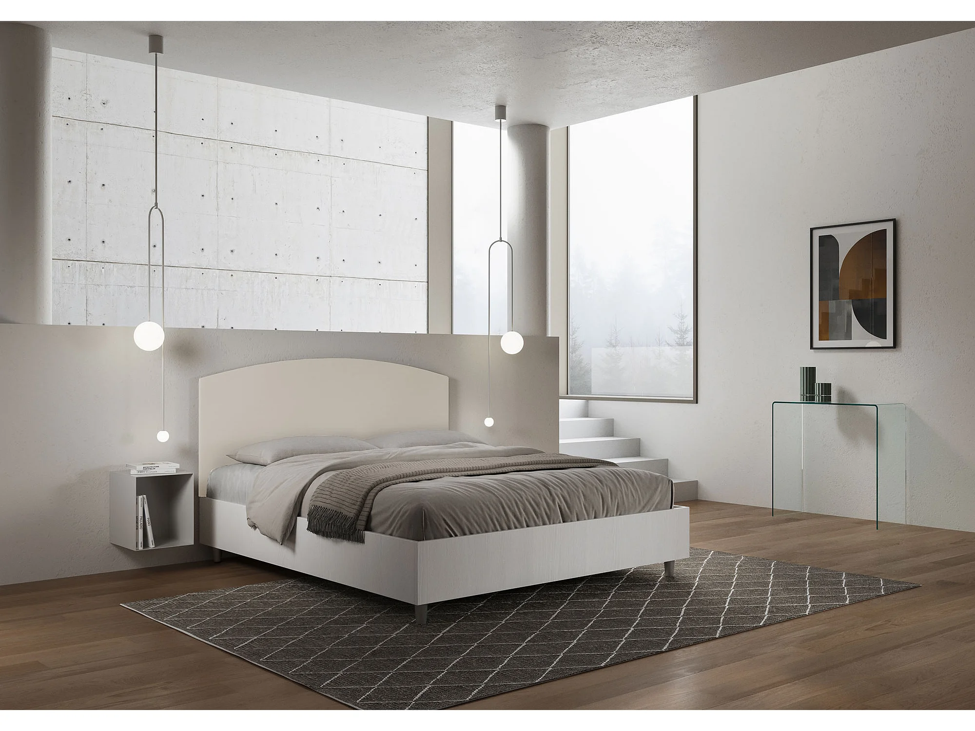 Lit avec sommier 160x190 structure frêne blanc tête de lit similicuir taupe Antilia