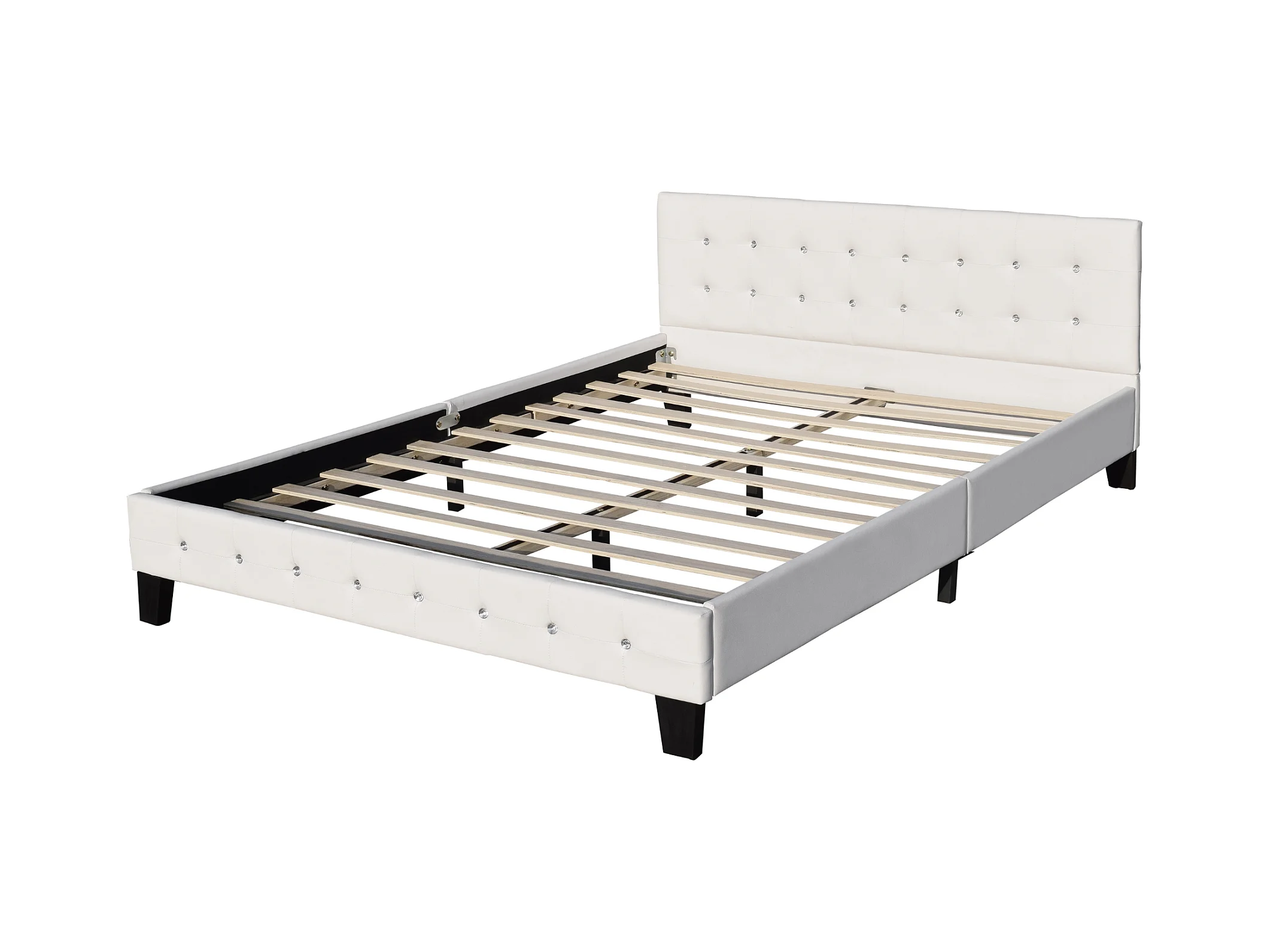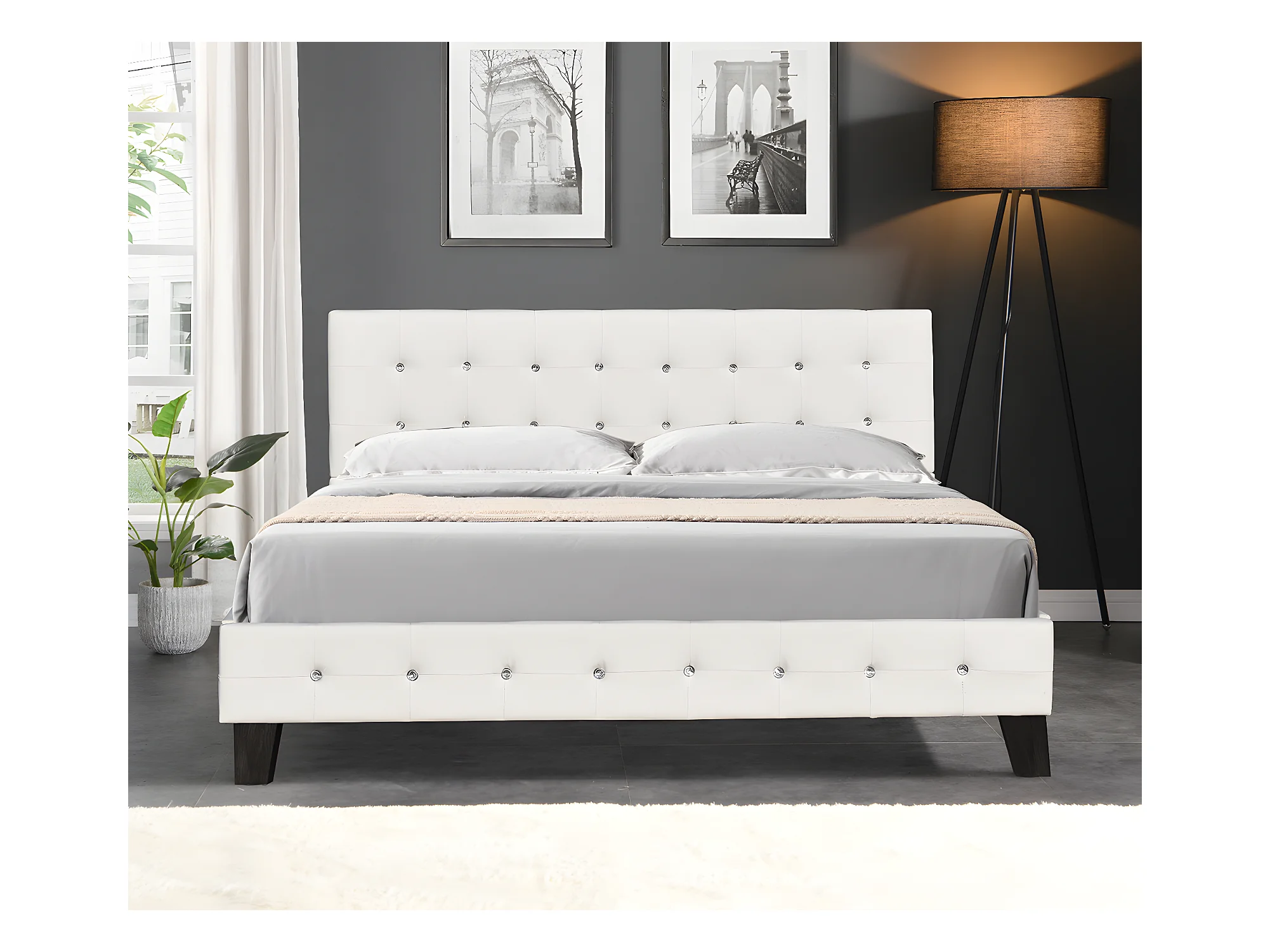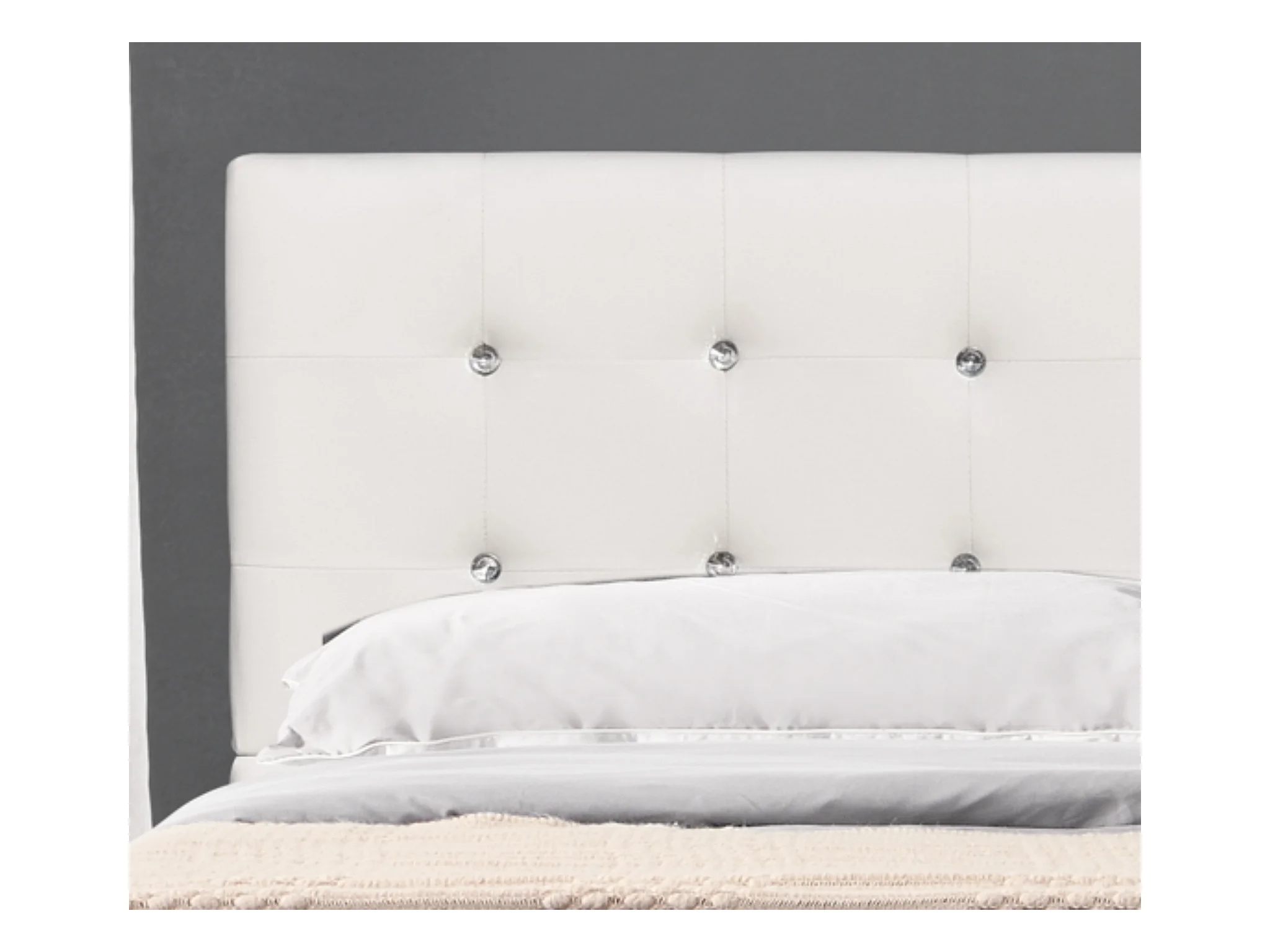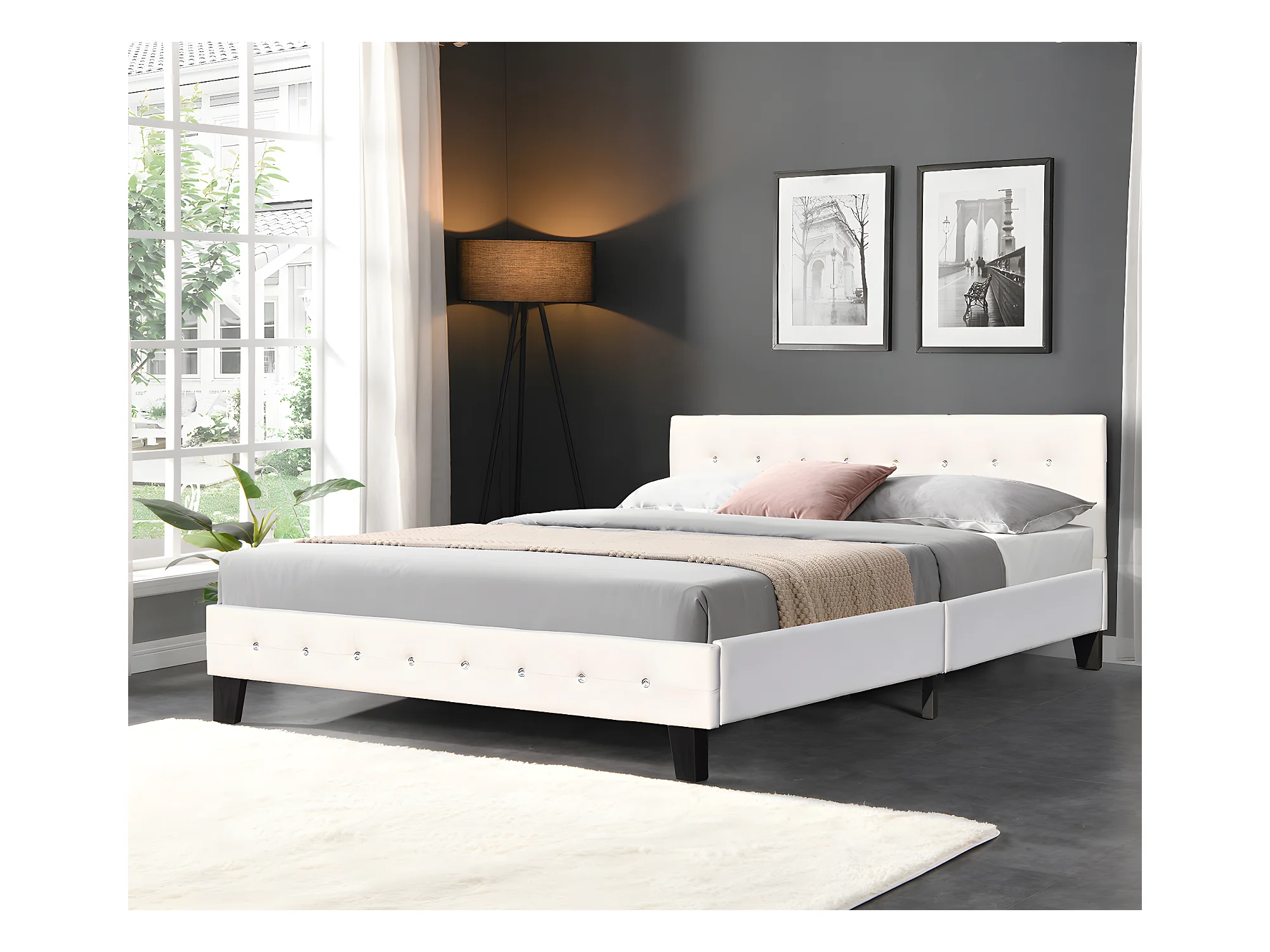 Lit 160x200 cm avec Tête de Lit Capitonnée Blanc, Pieds 10 cm, 13 Lattes, Simili PVC, Montage Facile