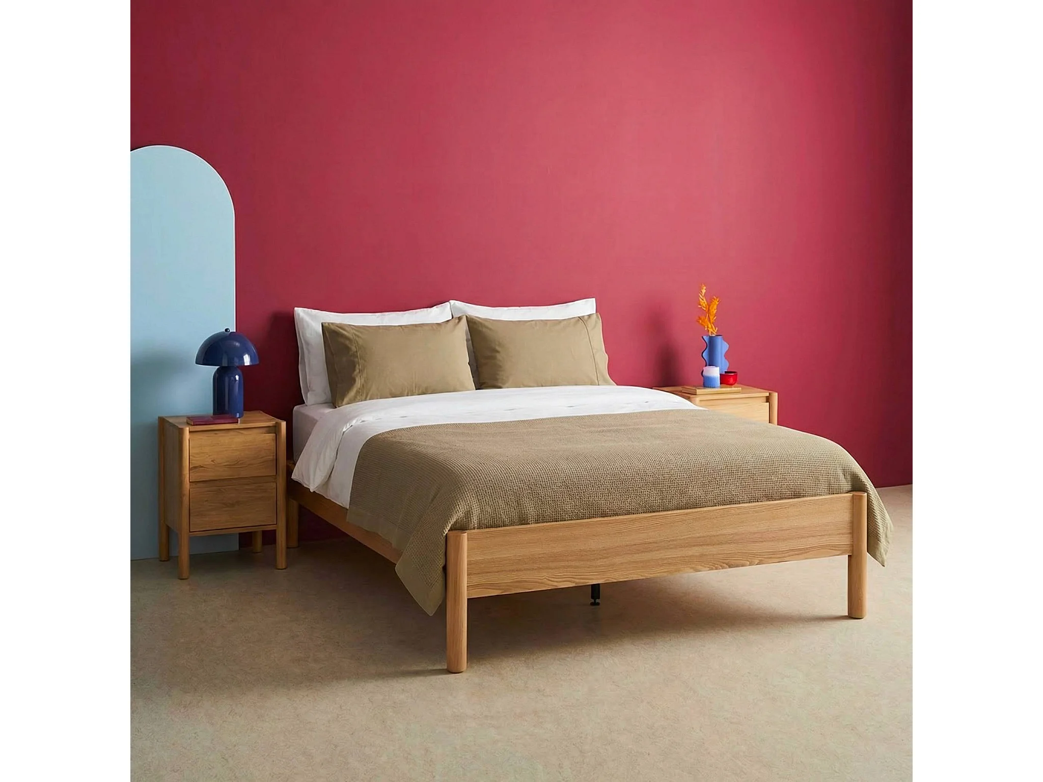 Lit avec sommier à lattes 140x190cm décor bois naturel - Harmony