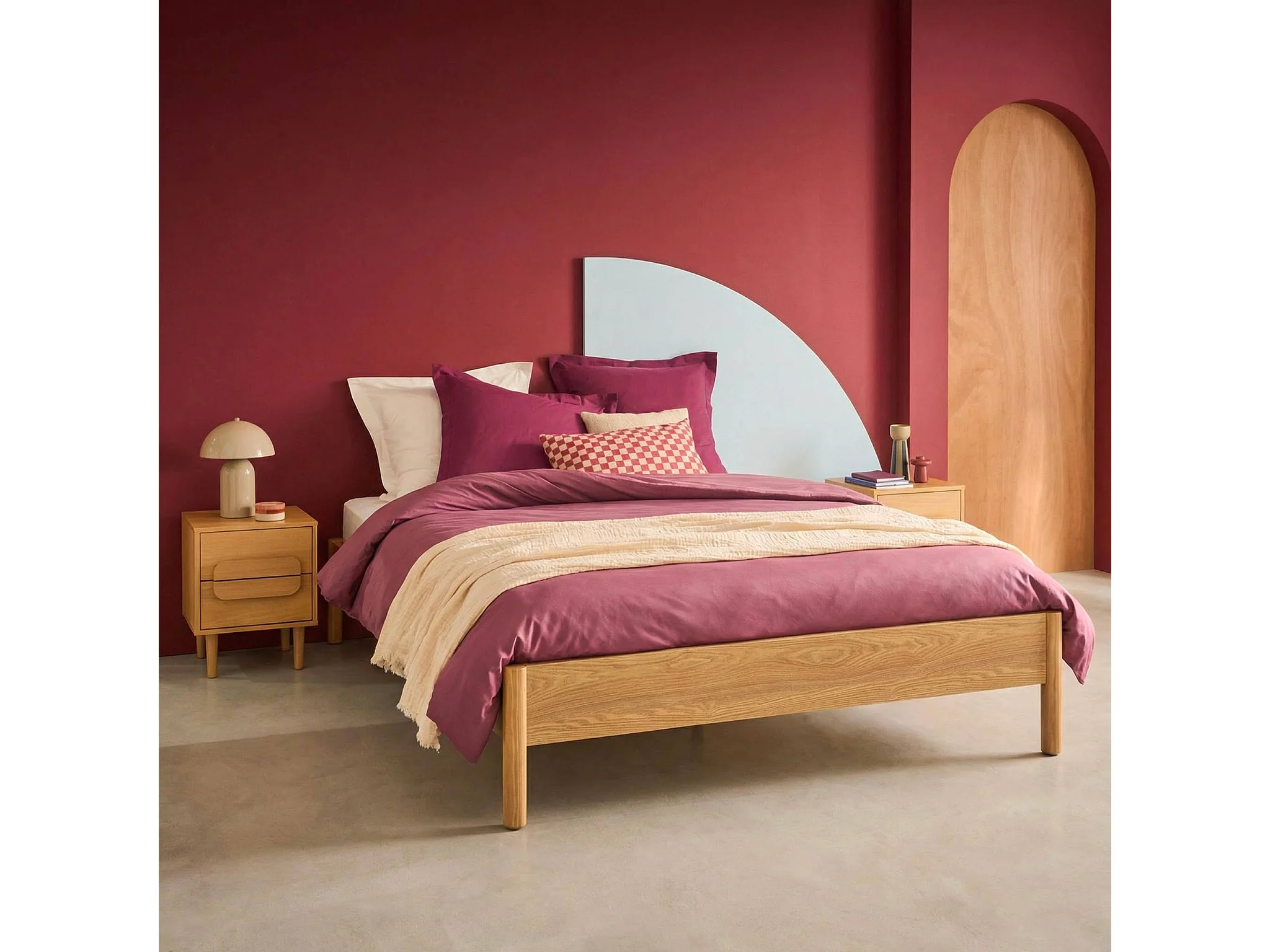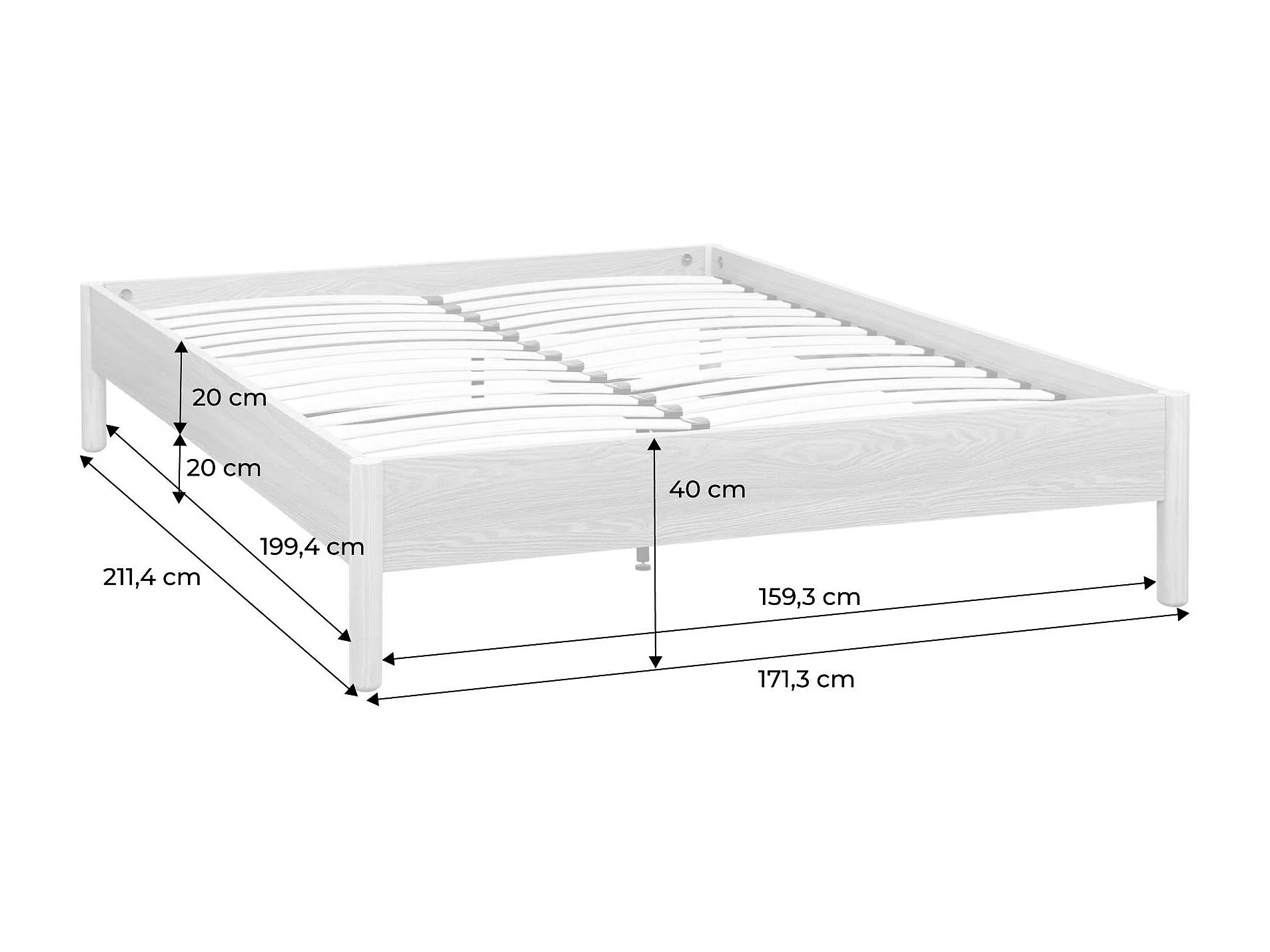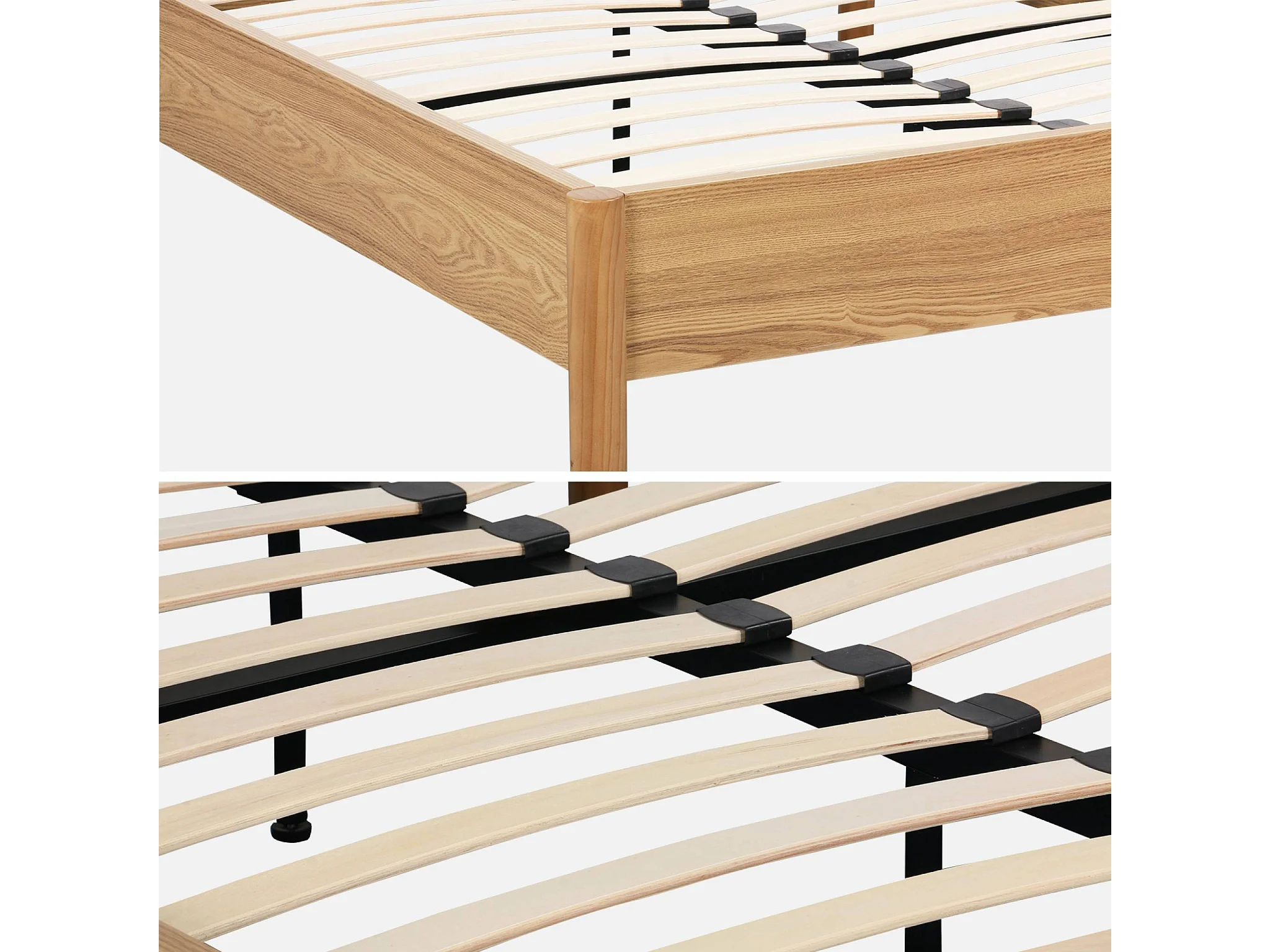 Lit avec sommier à lattes 160x200cm décor bois naturel - Harmony