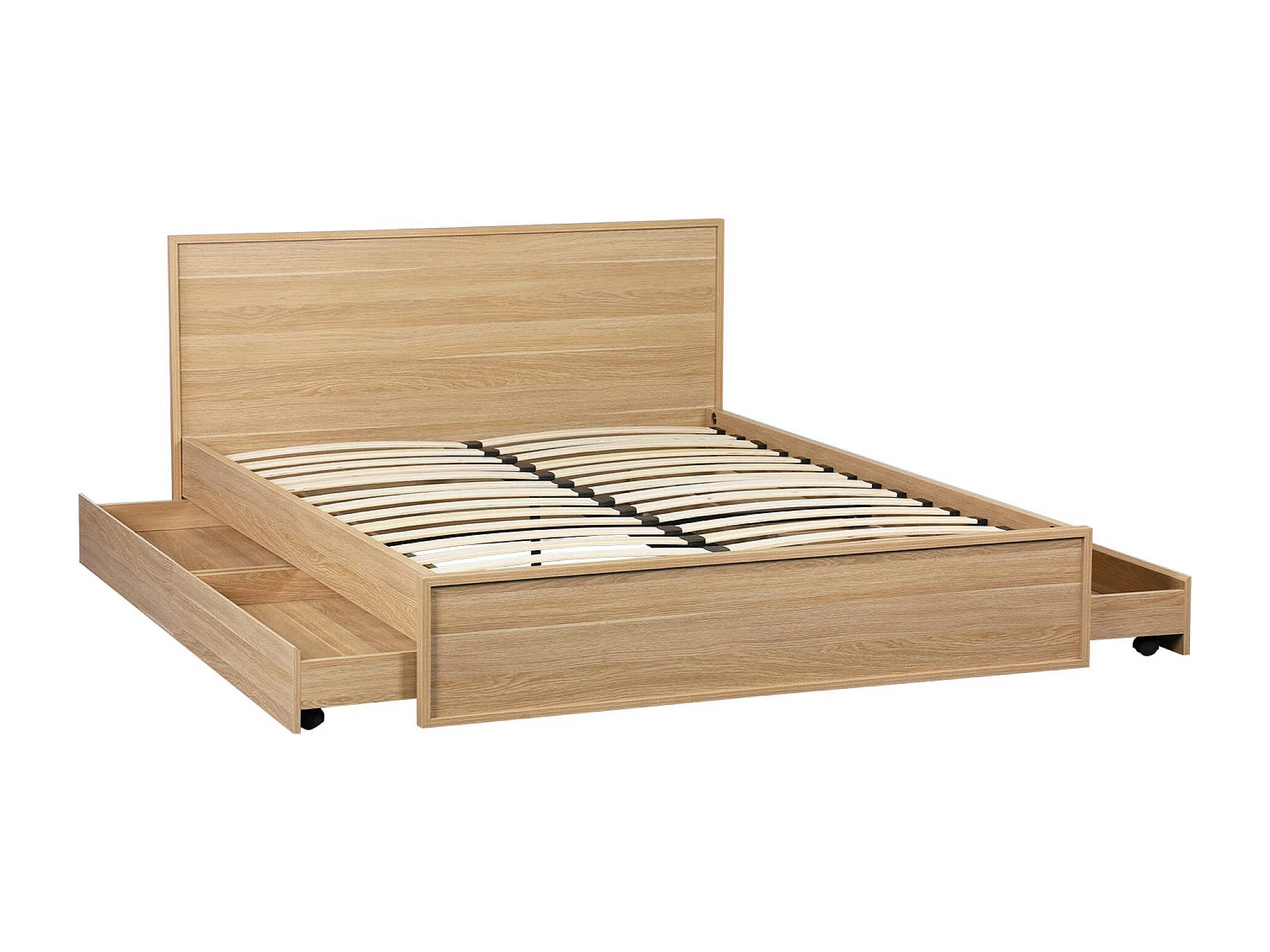Lit avec sommier à lattes et tête de lit 140 x 190cm + 4 tiroirs décor bois naturel - Kuba