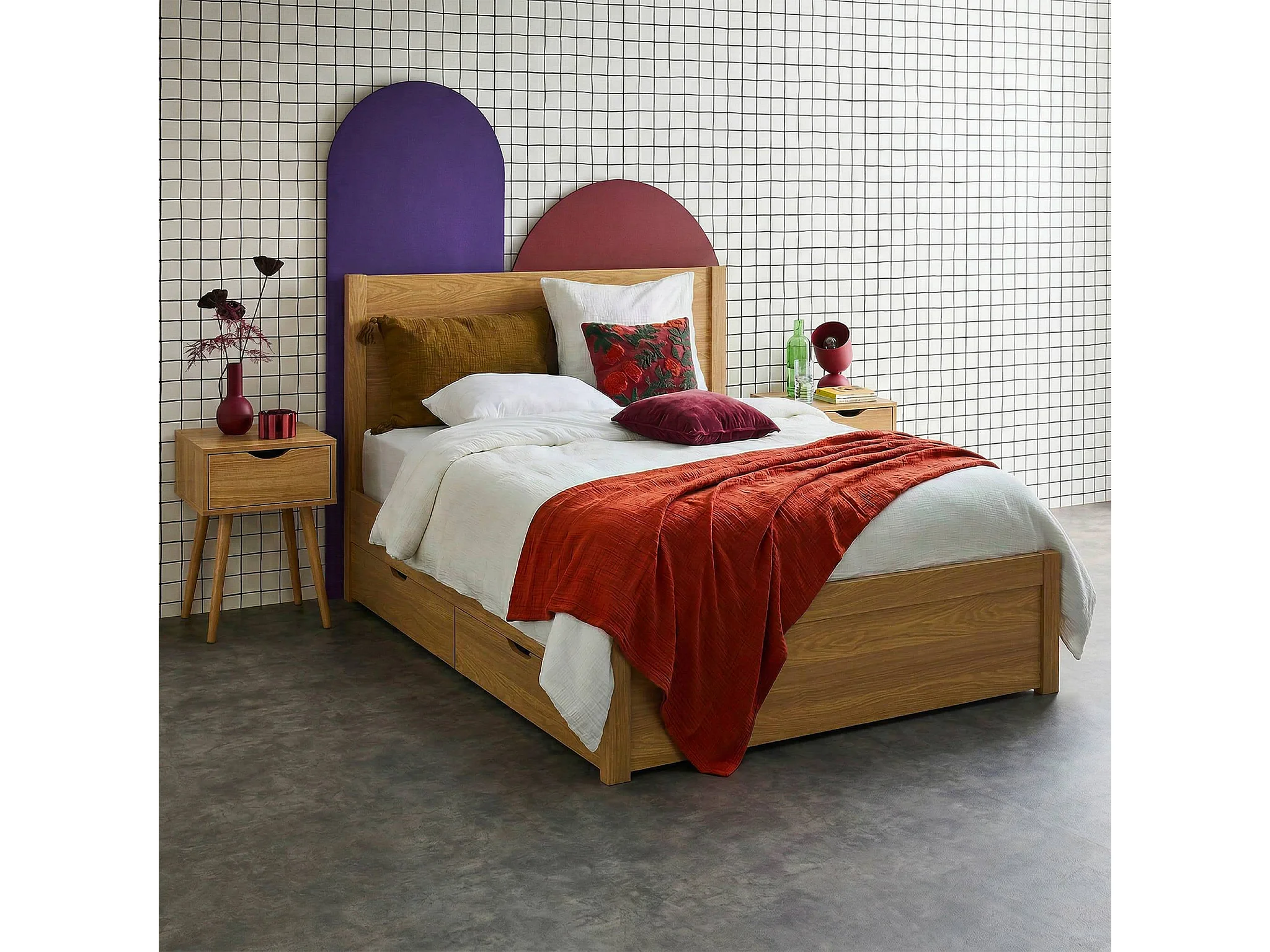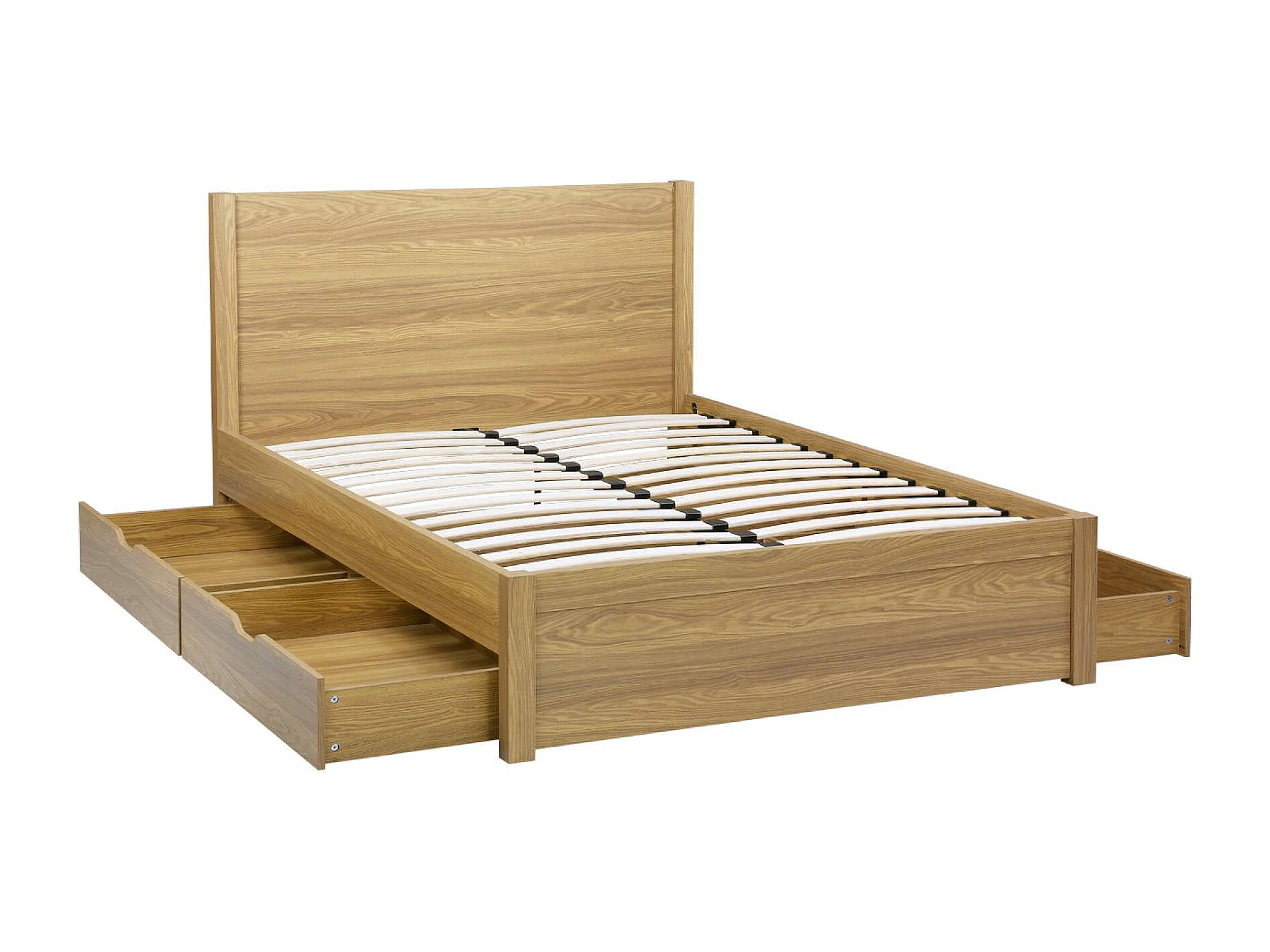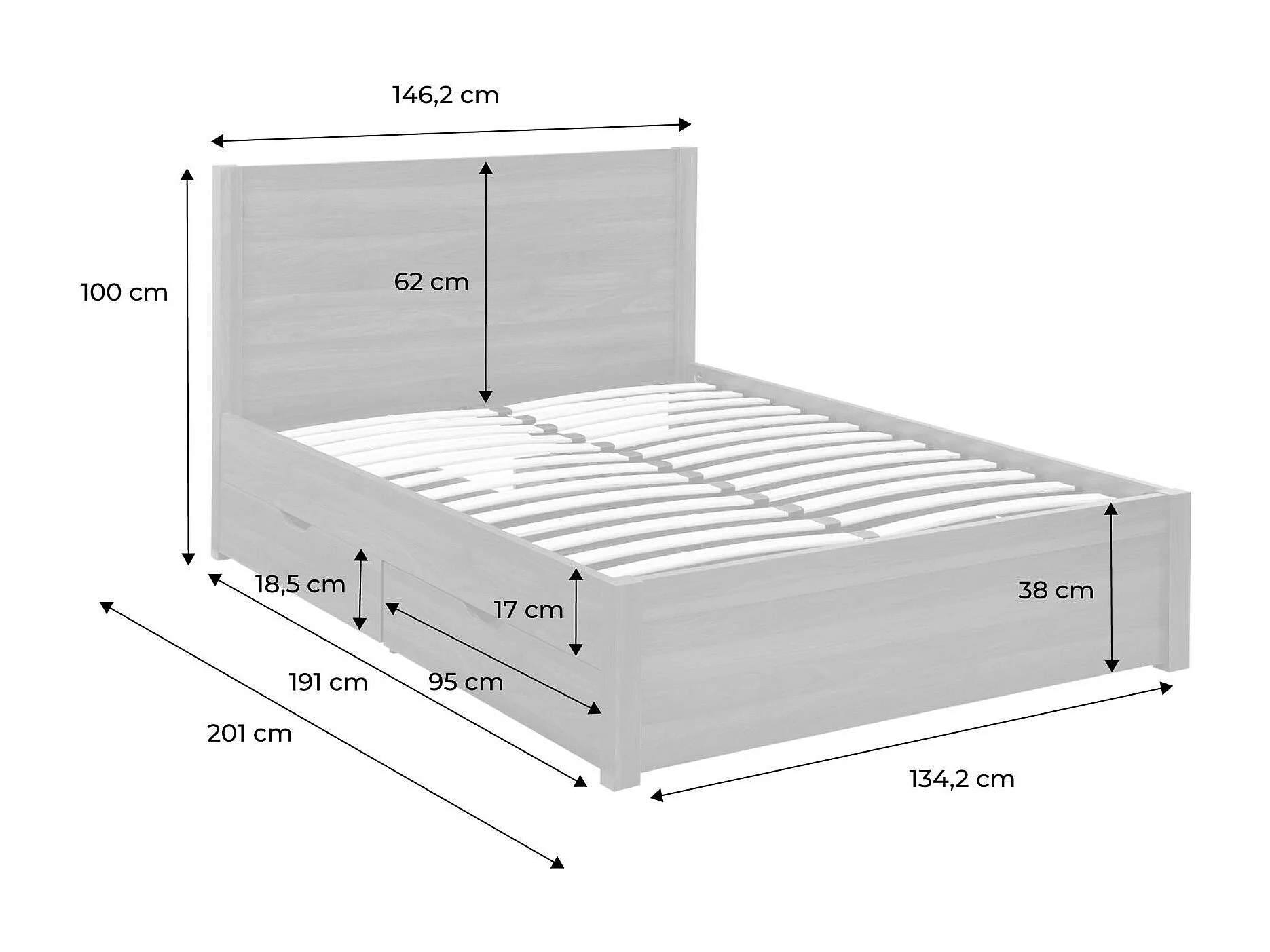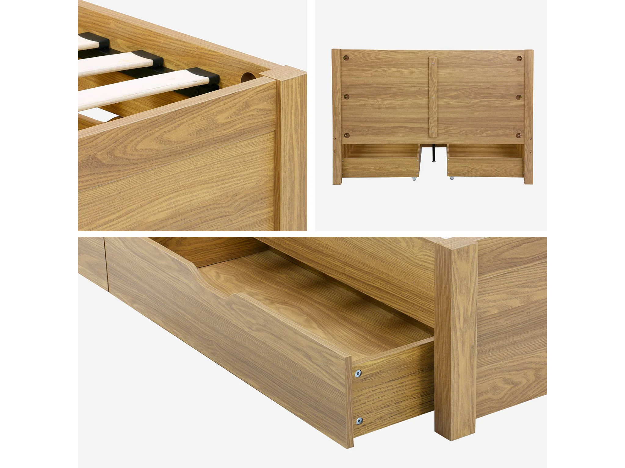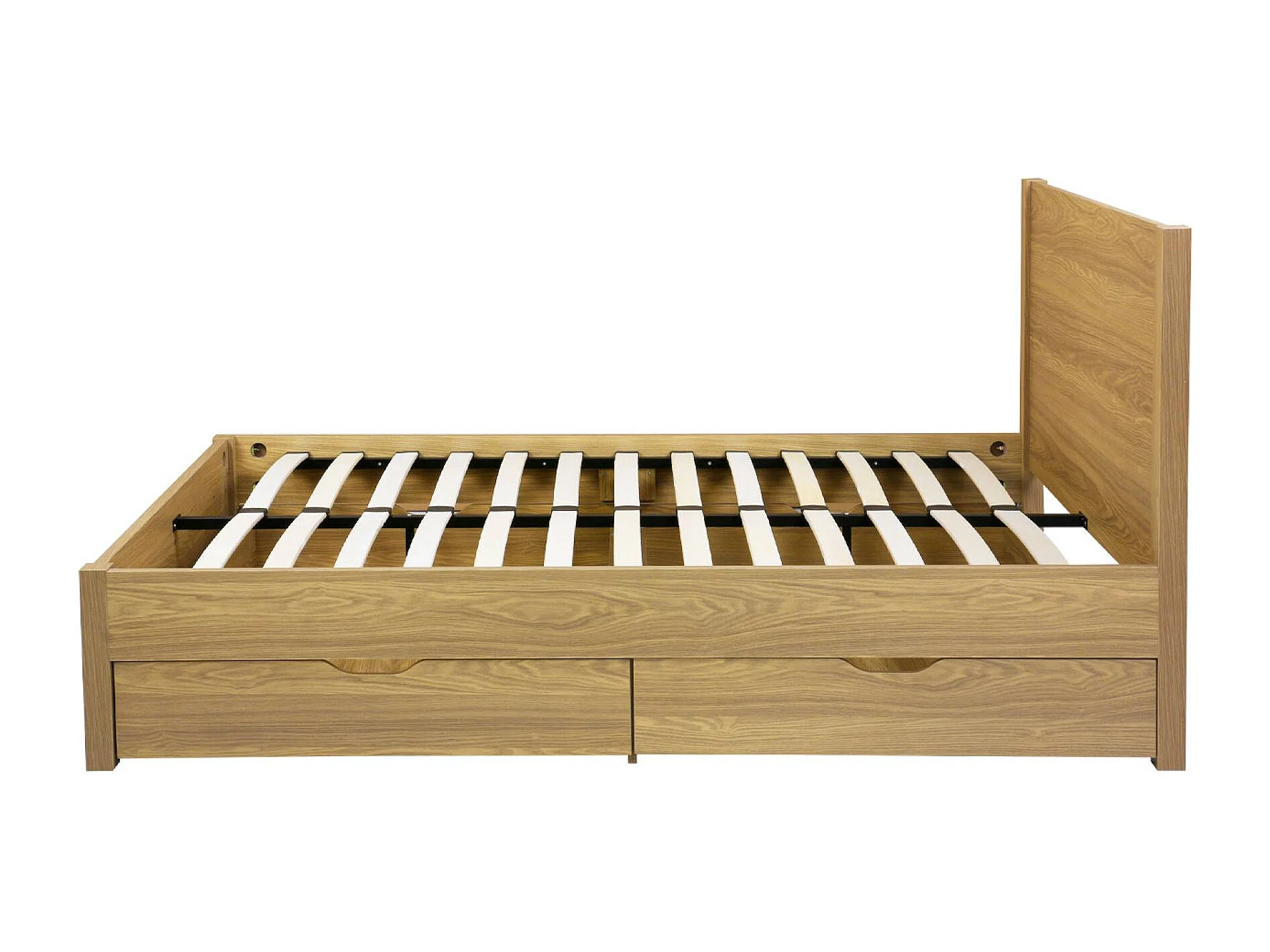 Lit avec sommier à lattes et tête de lit 140 x 190cm + 4 tiroirs décor bois naturel - Nepal