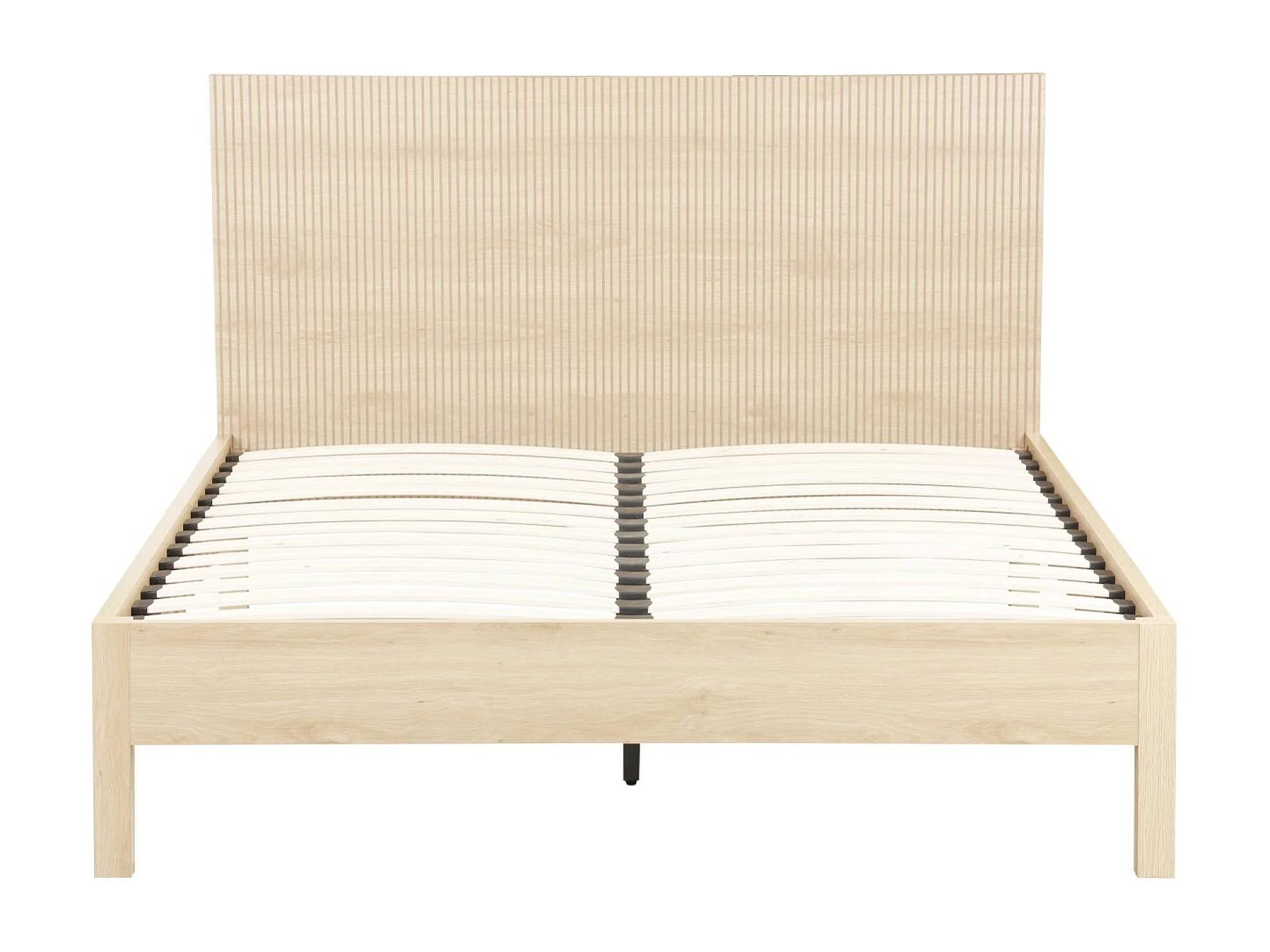 Lit avec sommier à lattes et tête de lit 140x190cm décor bois naturel - Linear