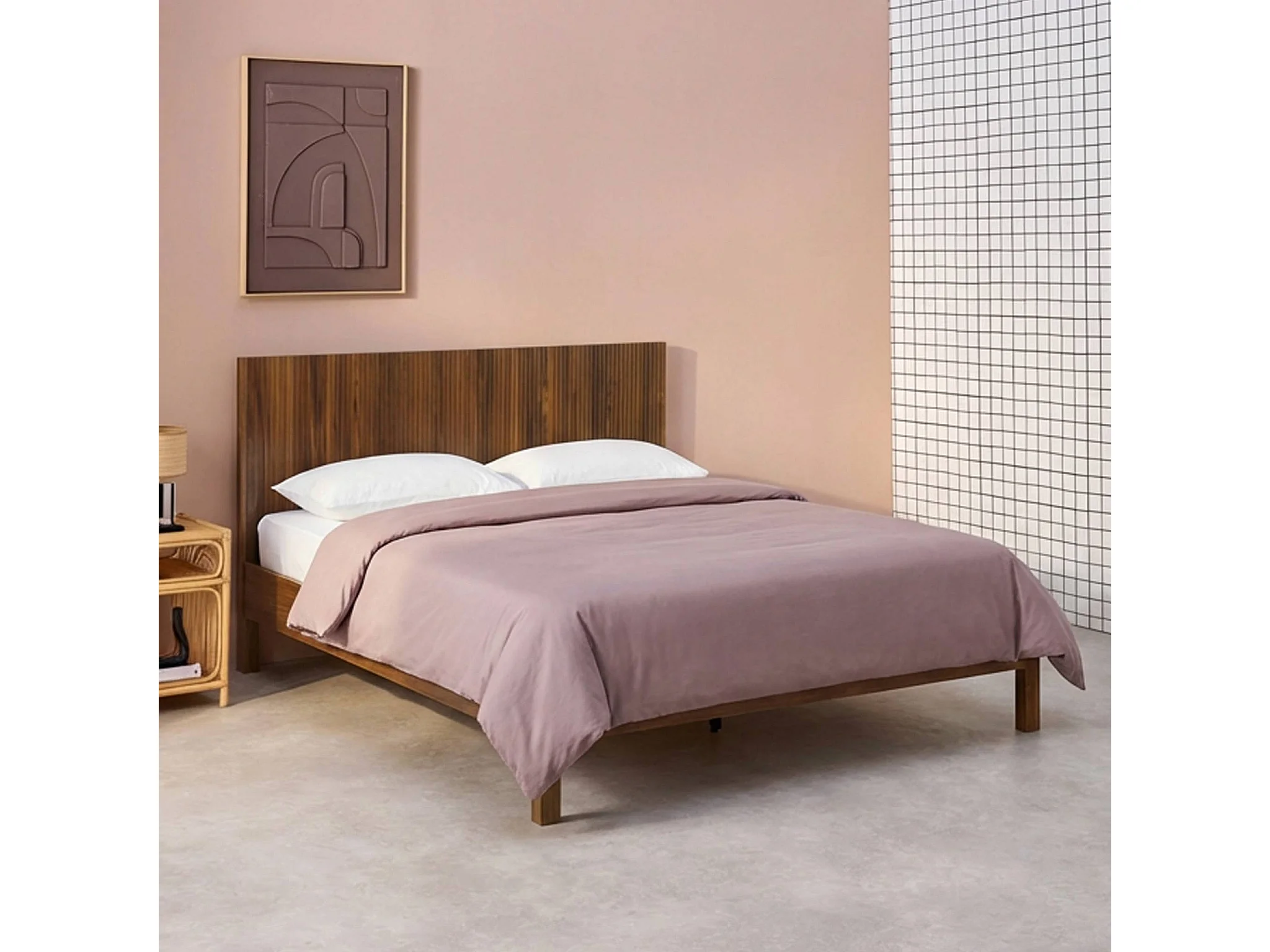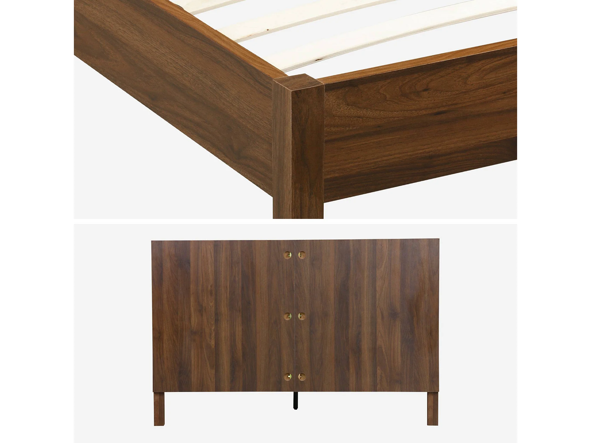 Lit avec sommier à lattes et tête de lit 140x190cm décor bois noyer - Linear