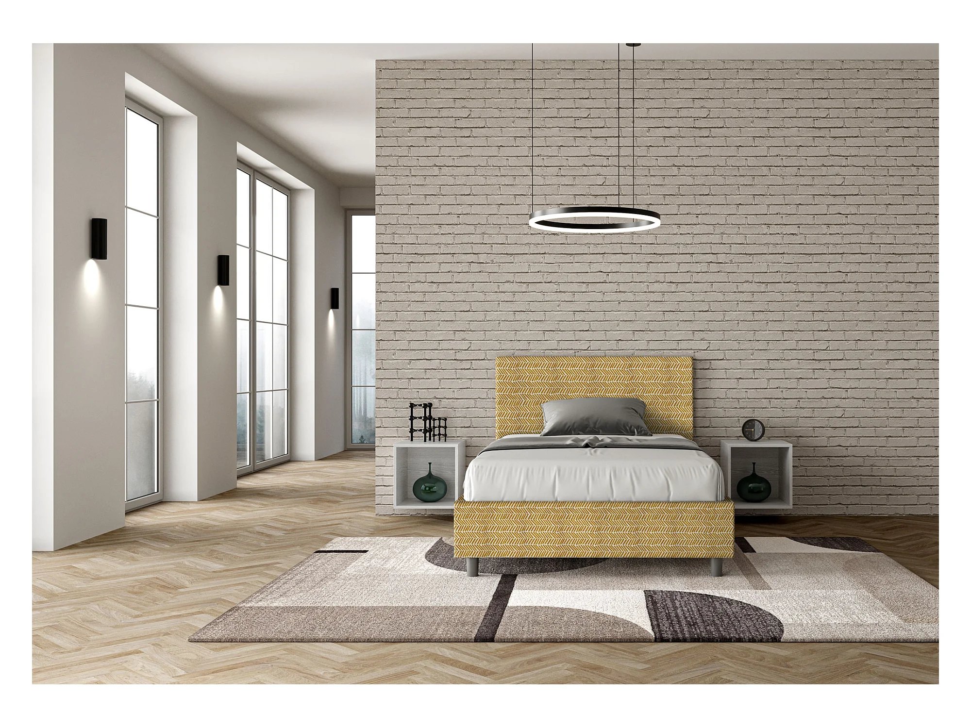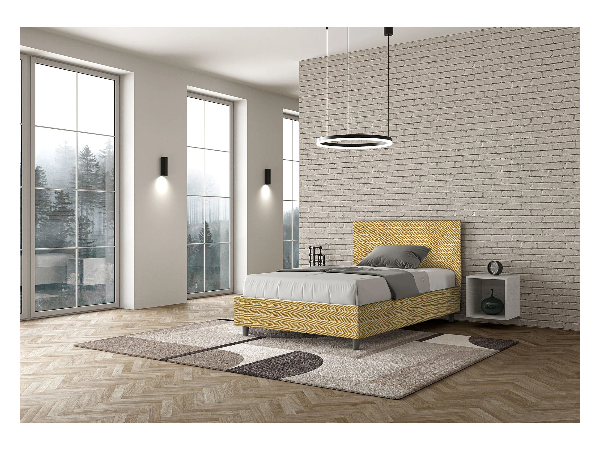Lit 1 place et demi avec sommier rembourré 120x190 tissu Aragona 3 jaune Adele
