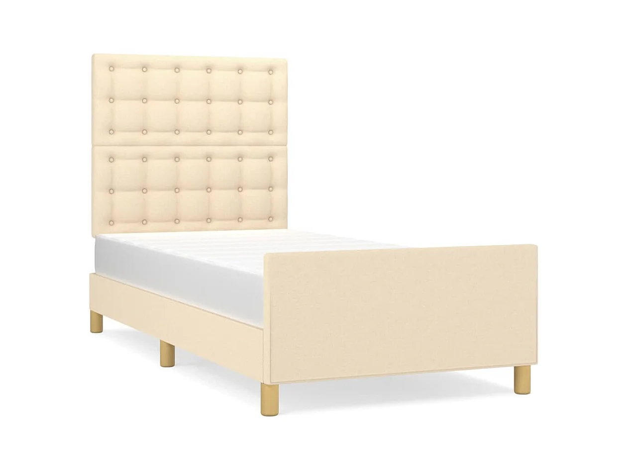 Lit avec tête de lit Crème 90x200 Tissu