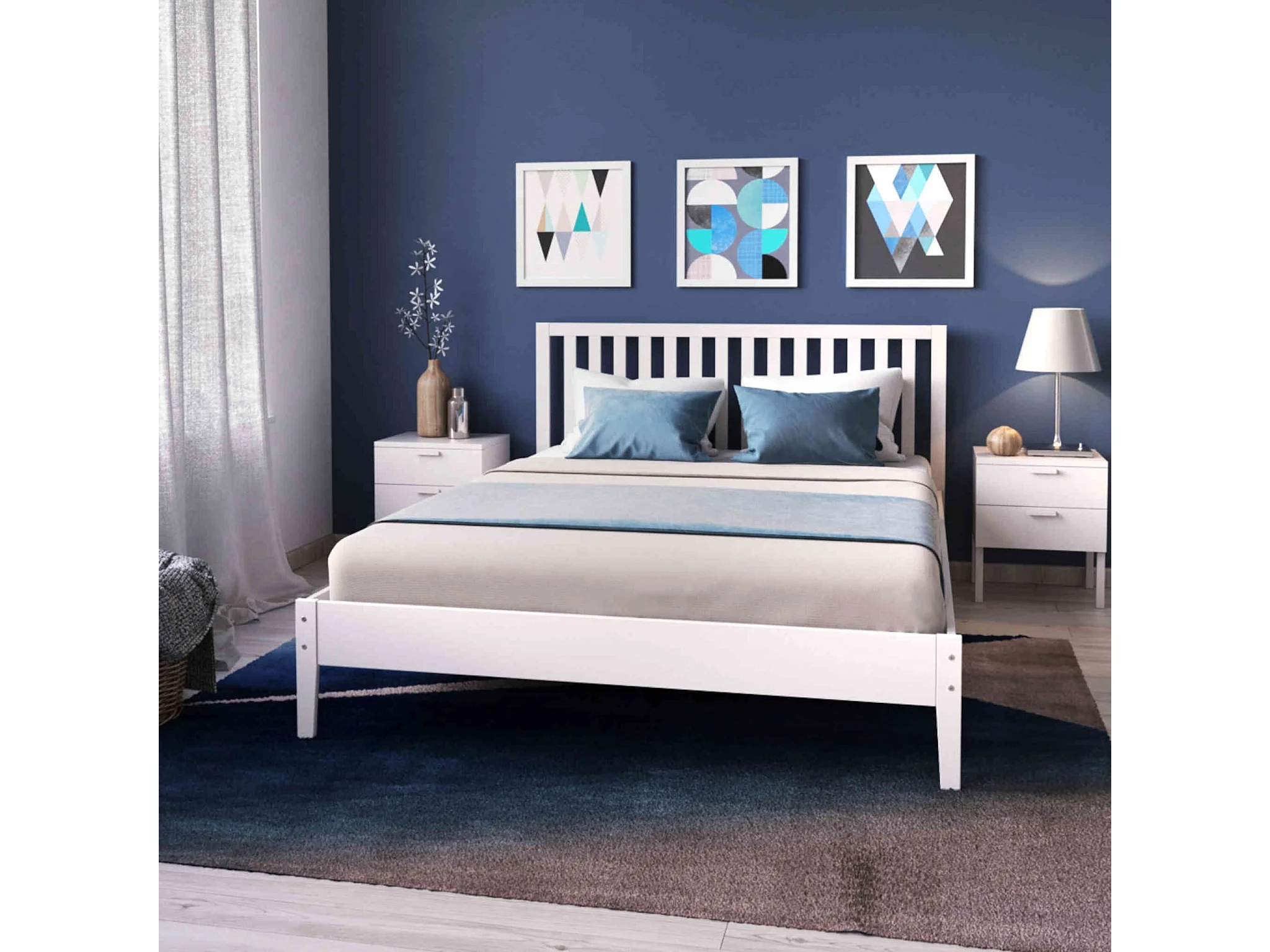 Lit avec tête de lit en bois blanc 140x190 - LT14008
