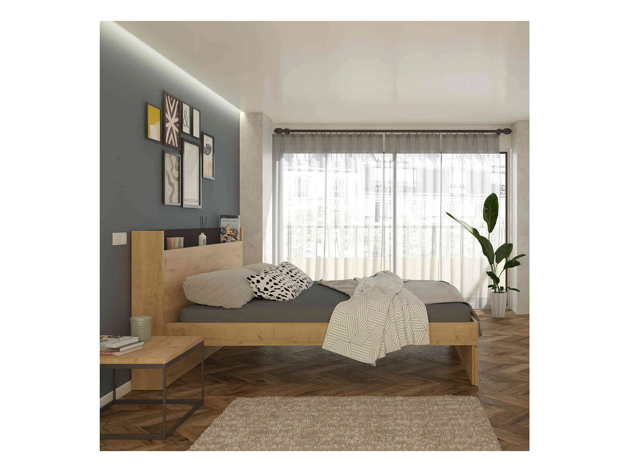 Lit avec tête de lit en bois imitation chêne 160x200 cm - LI9051
