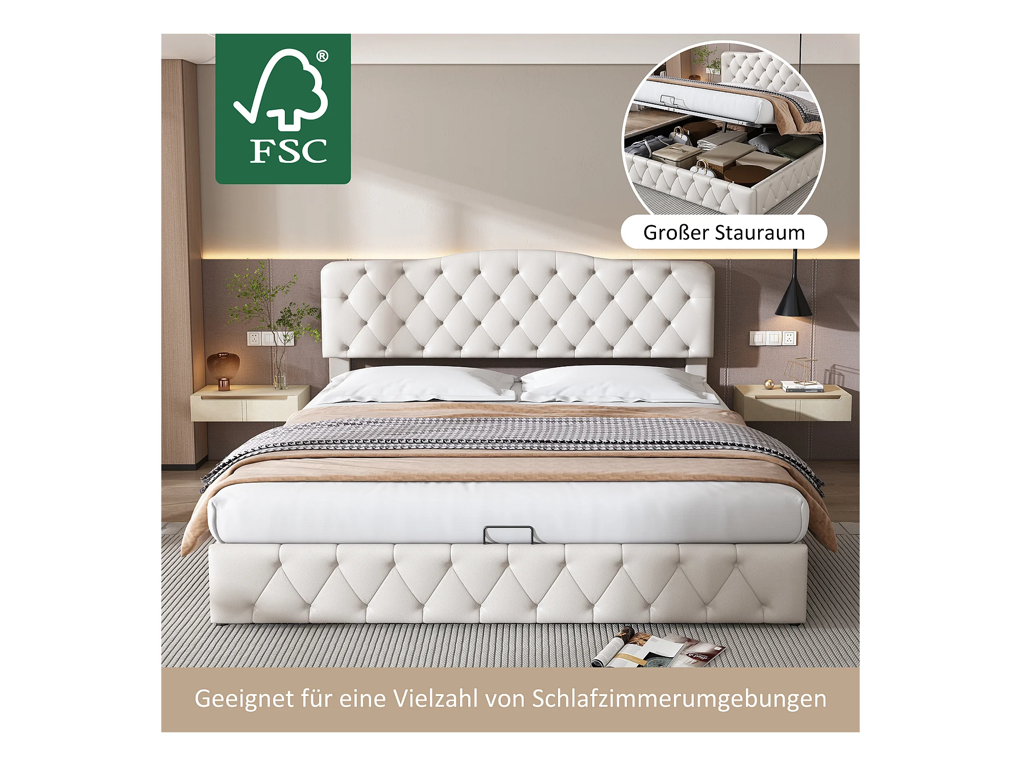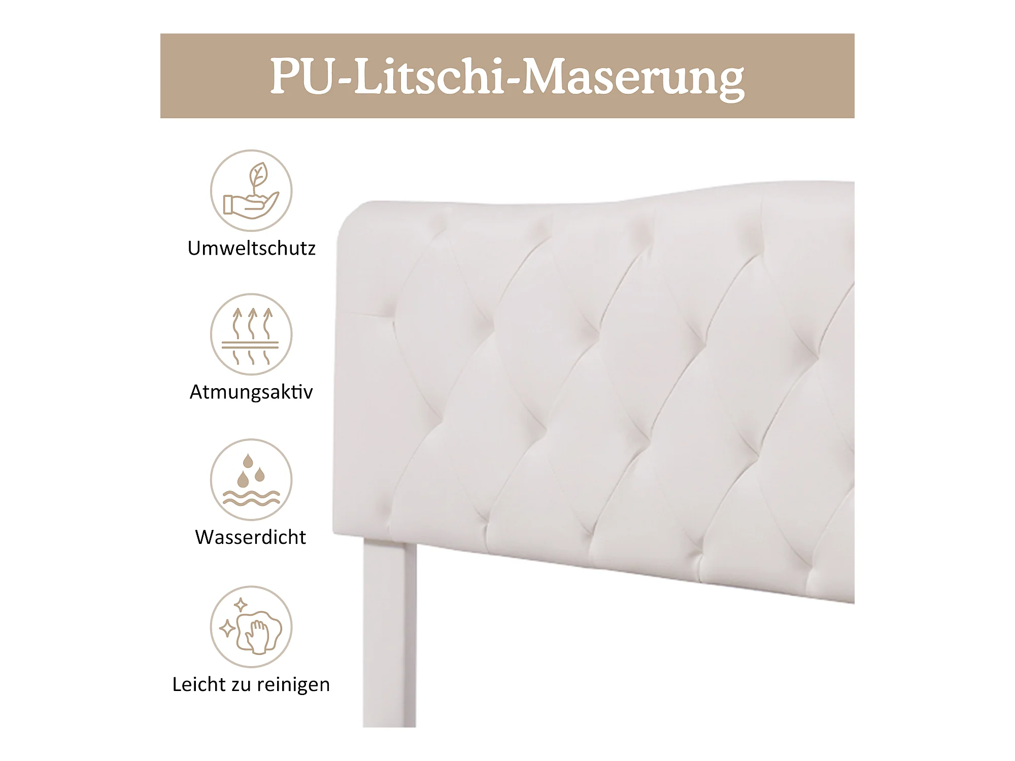 Lit avec tête de lit réglable, 180x200 cm, avec sommier à lattes, design moderne, PU, blanc
