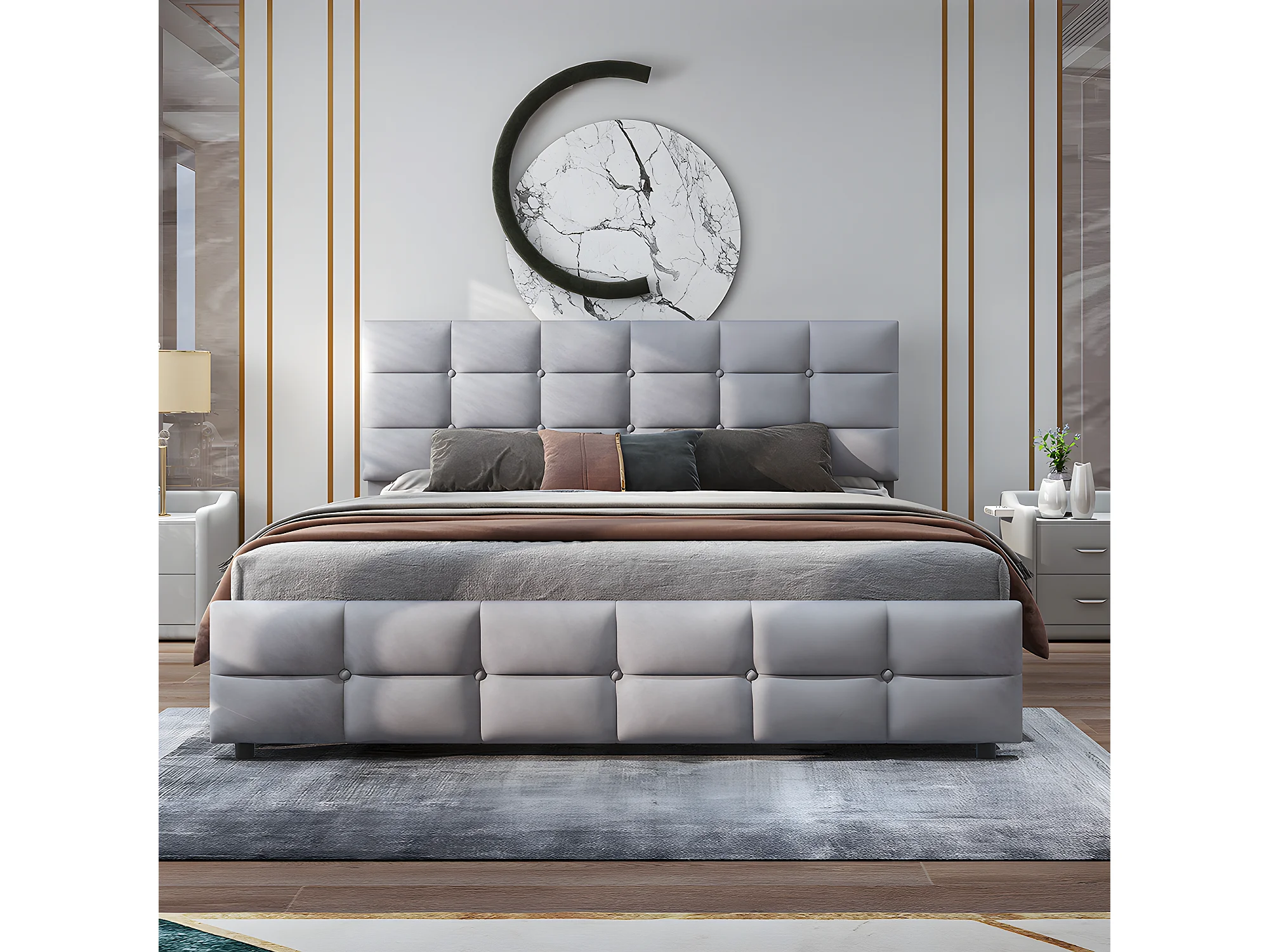 Lit avec tiroirs - 180 x 200 cm, Lit double avec 4 tiroirs - Gris - Sweiko