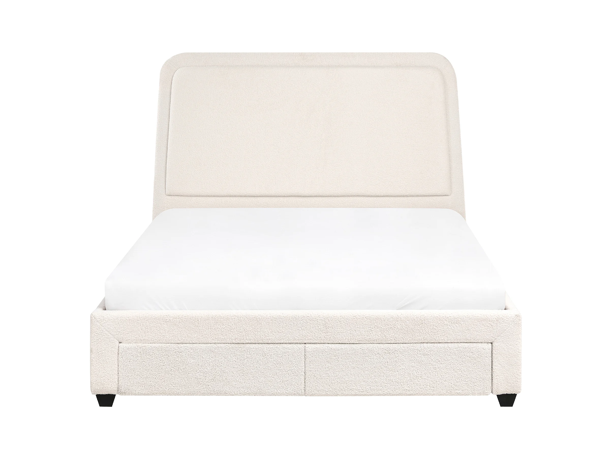 Lit avec tiroirs de rangement Bouclé SARDENT 140 x 200 cm Blanc cassé