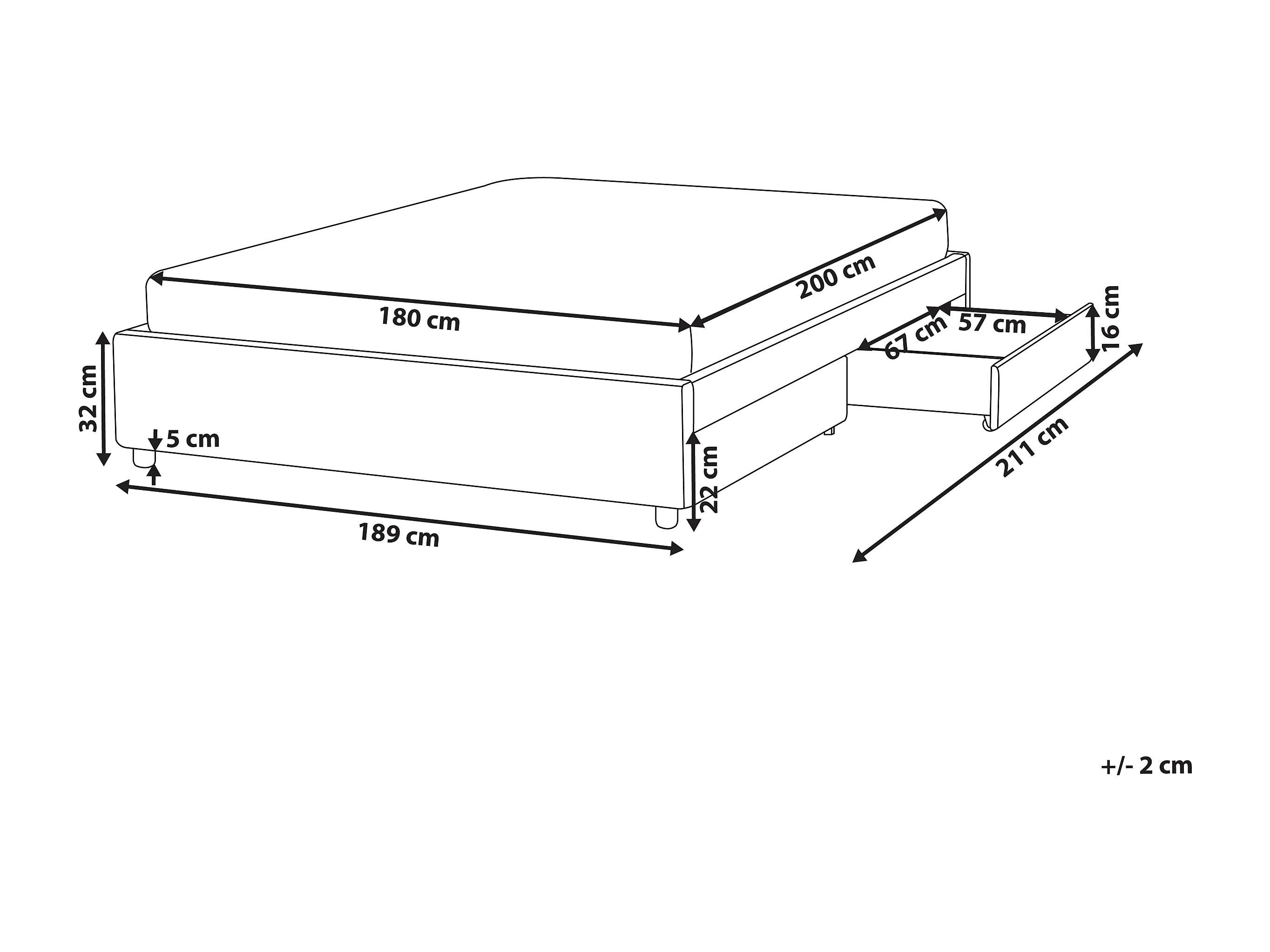 Lit avec tiroirs de rangement sans tête de lit Tissu PRADES 180 x 200 cm Gris clair