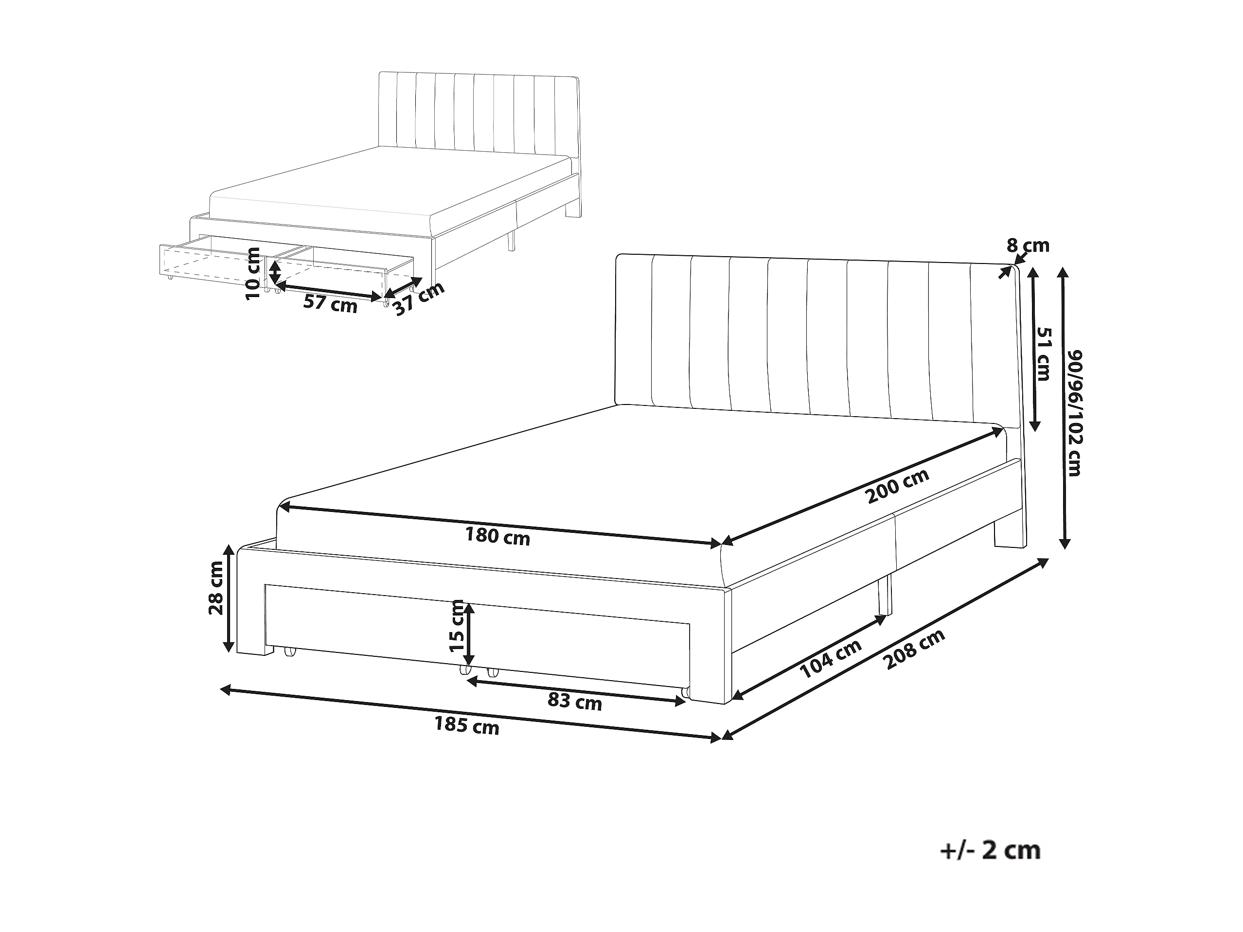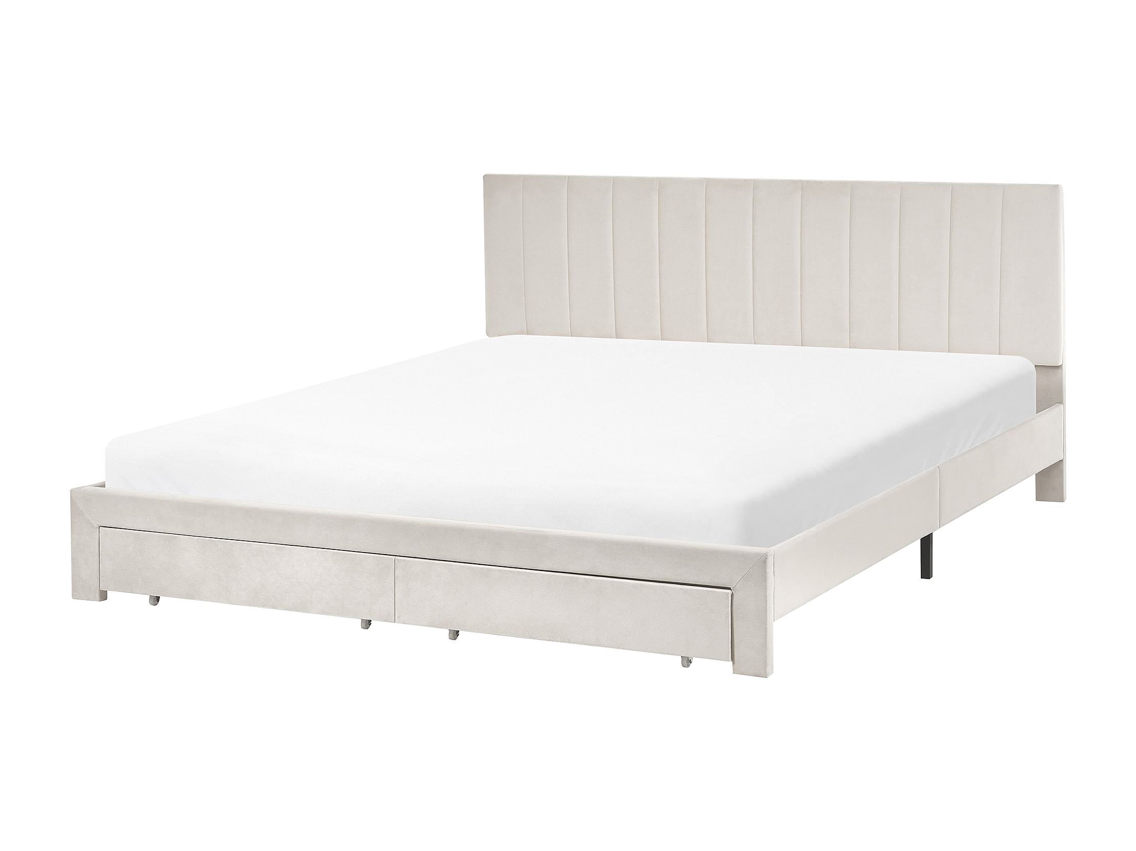 Lit avec tiroirs de rangement Velours LONZAC 180 x 200 cm Blanc cassé