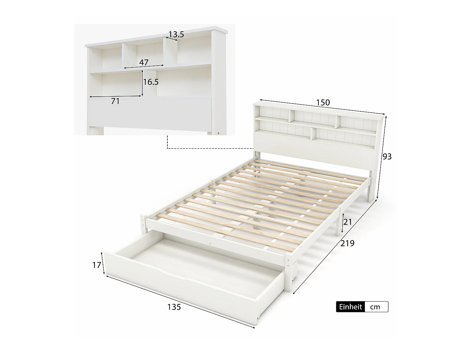 Lit avec tiroirs Lit d'enfant - 140x200cm blanc - Sweiko