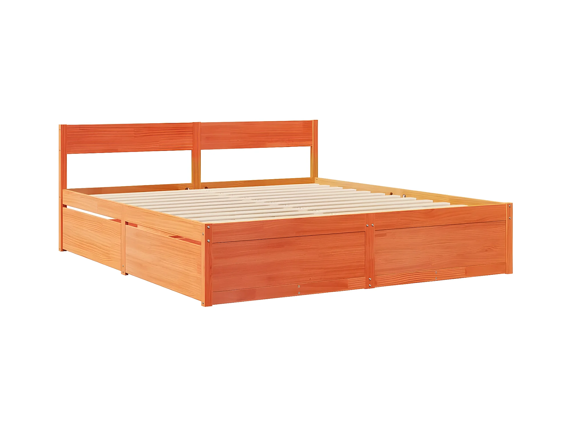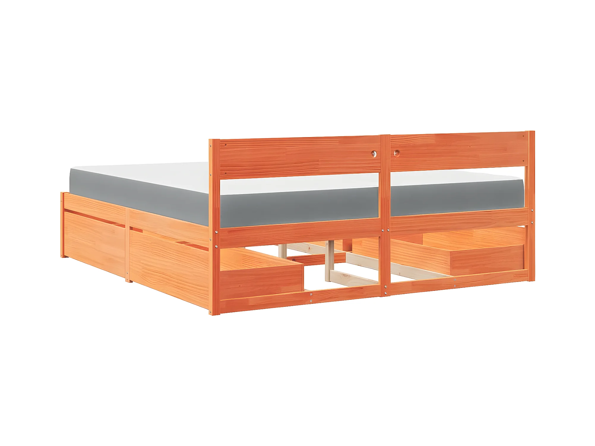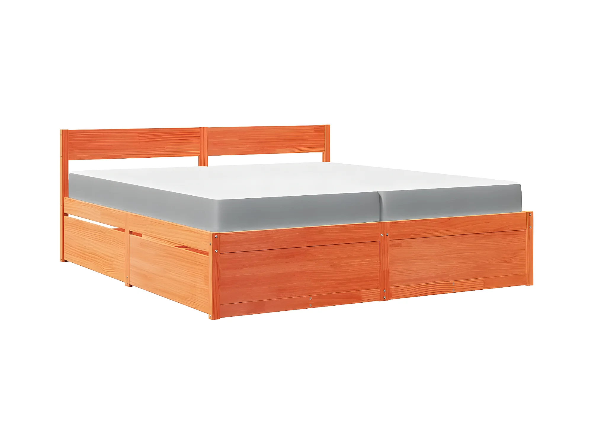 Lit avec tiroirs/matelas cire marron 200x200 cm bois massif pin