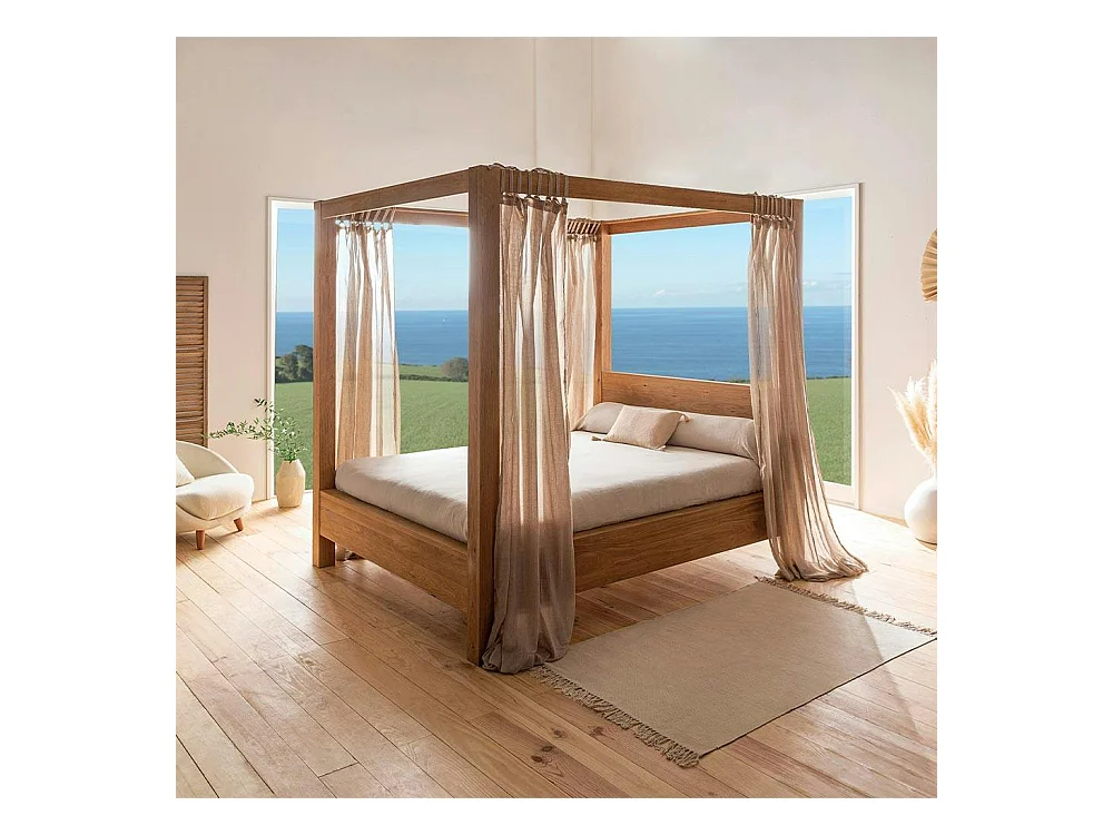 Lit baldaquin cadre 160 cm en bois – style naturel VERBIER