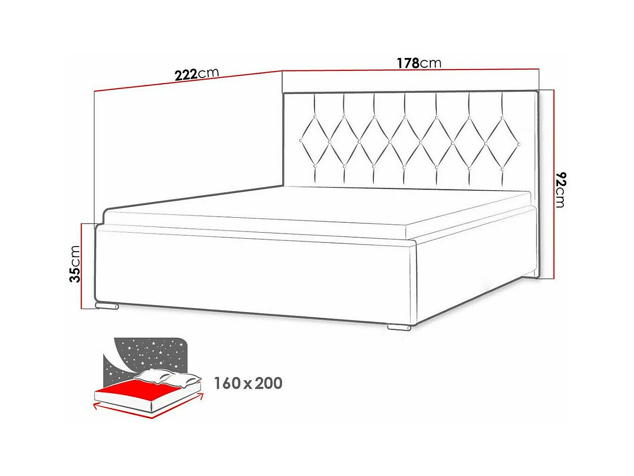 Lit Baltimore 160, Double, Jaune, 160x200, Tapisserie, Sommier à lattes, 178x222x92cm