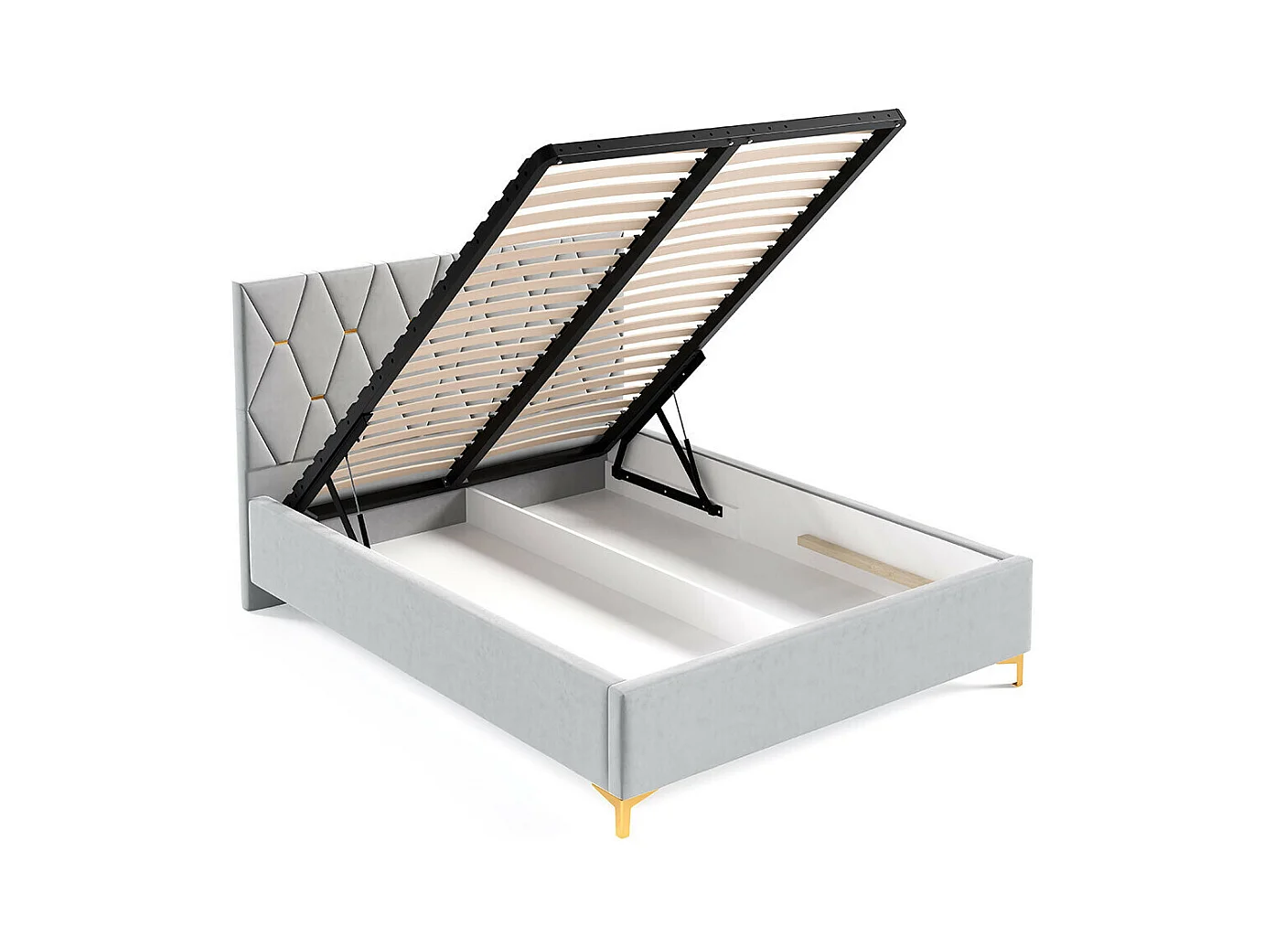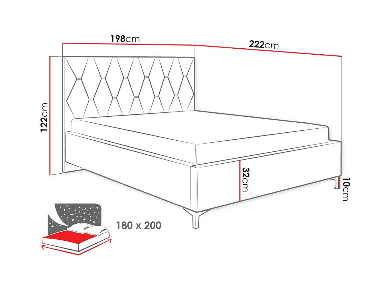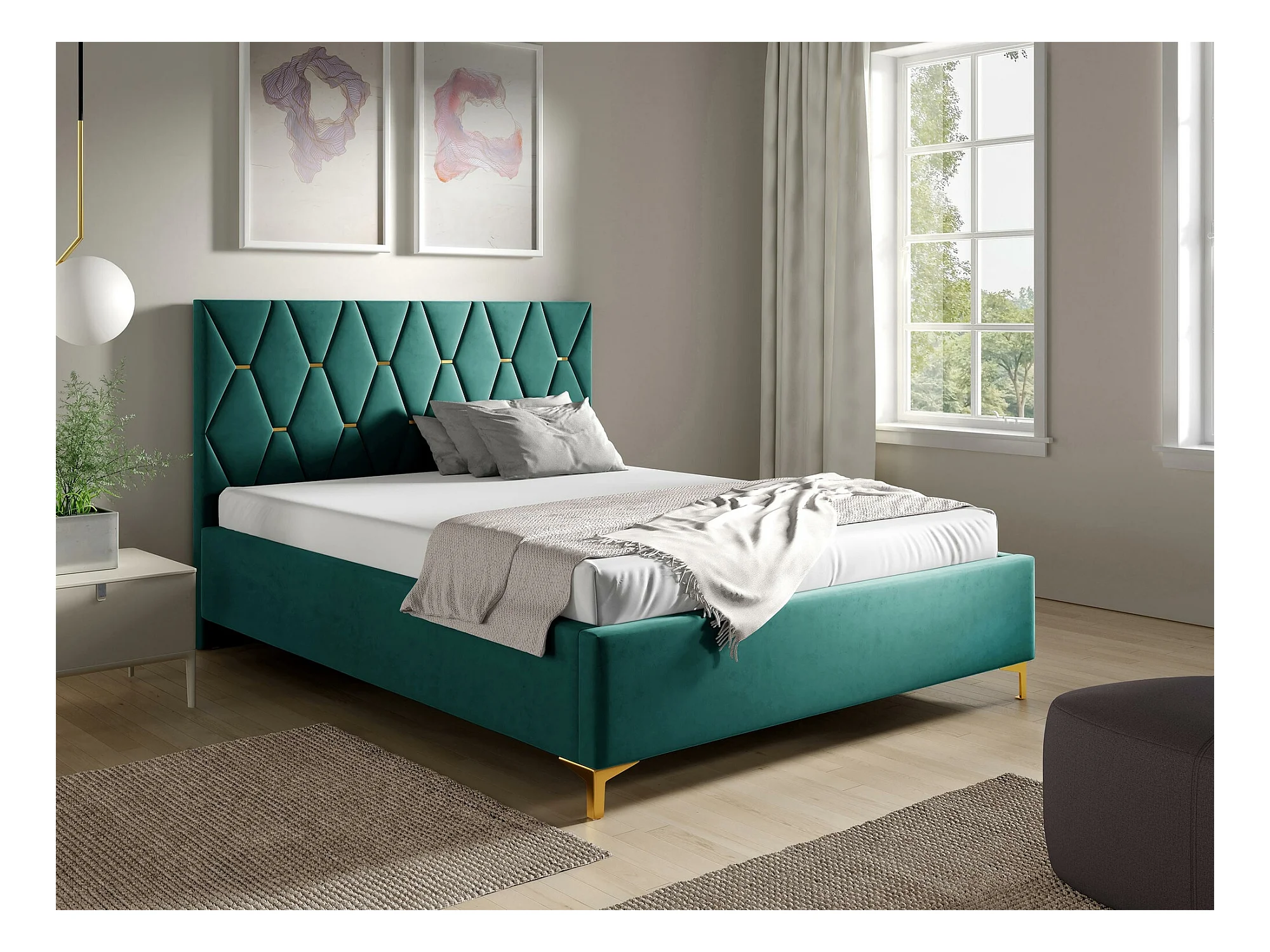 Lit Baltimore 192, Double, Vert, 180x200, Tapisserie, Sommier à lattes, 198x222x122cm