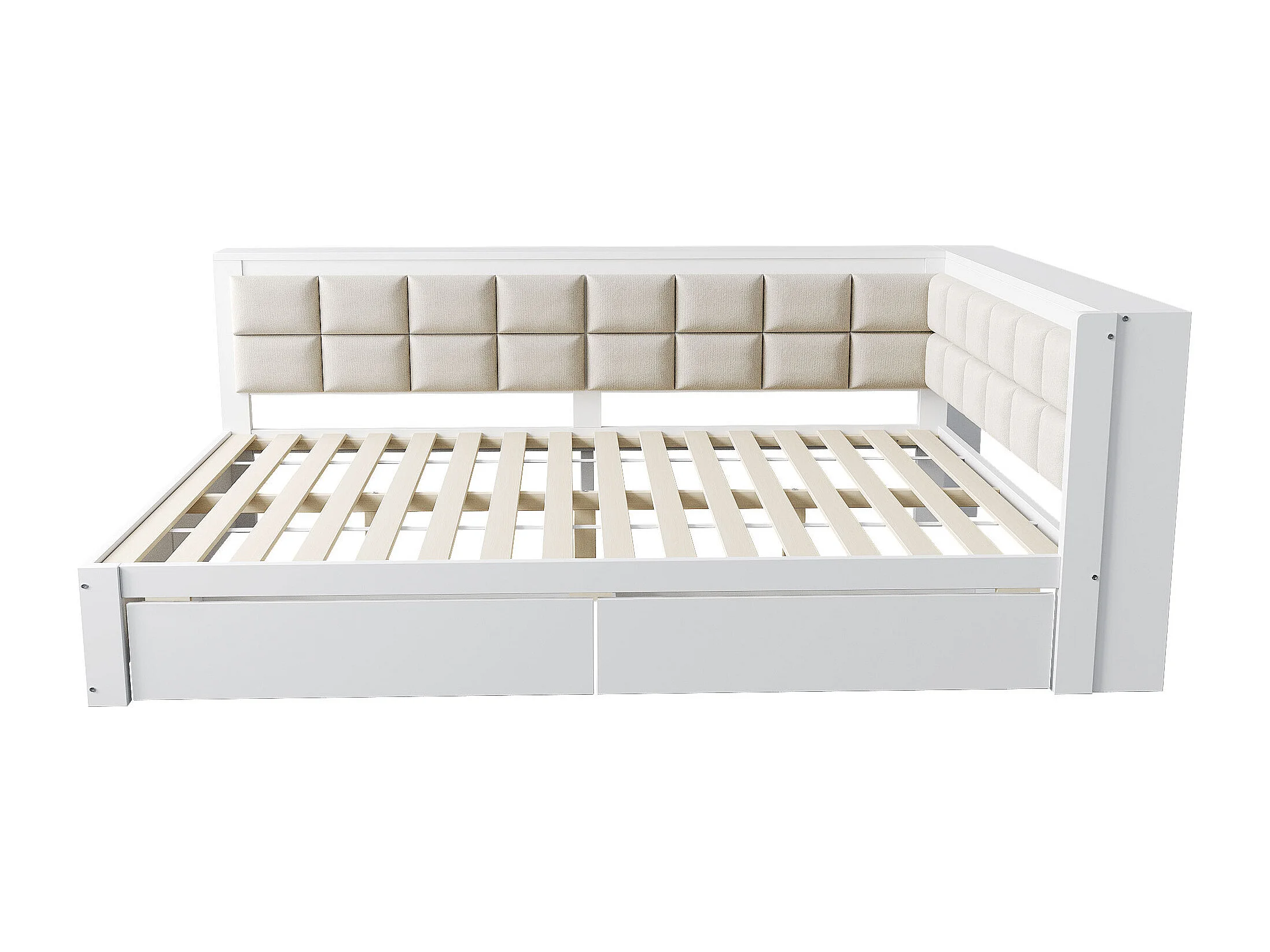 Lit banquette 140x200 cm - avec 2 tiroirs de rangement et sommier à lattes - blanc - sans matelas