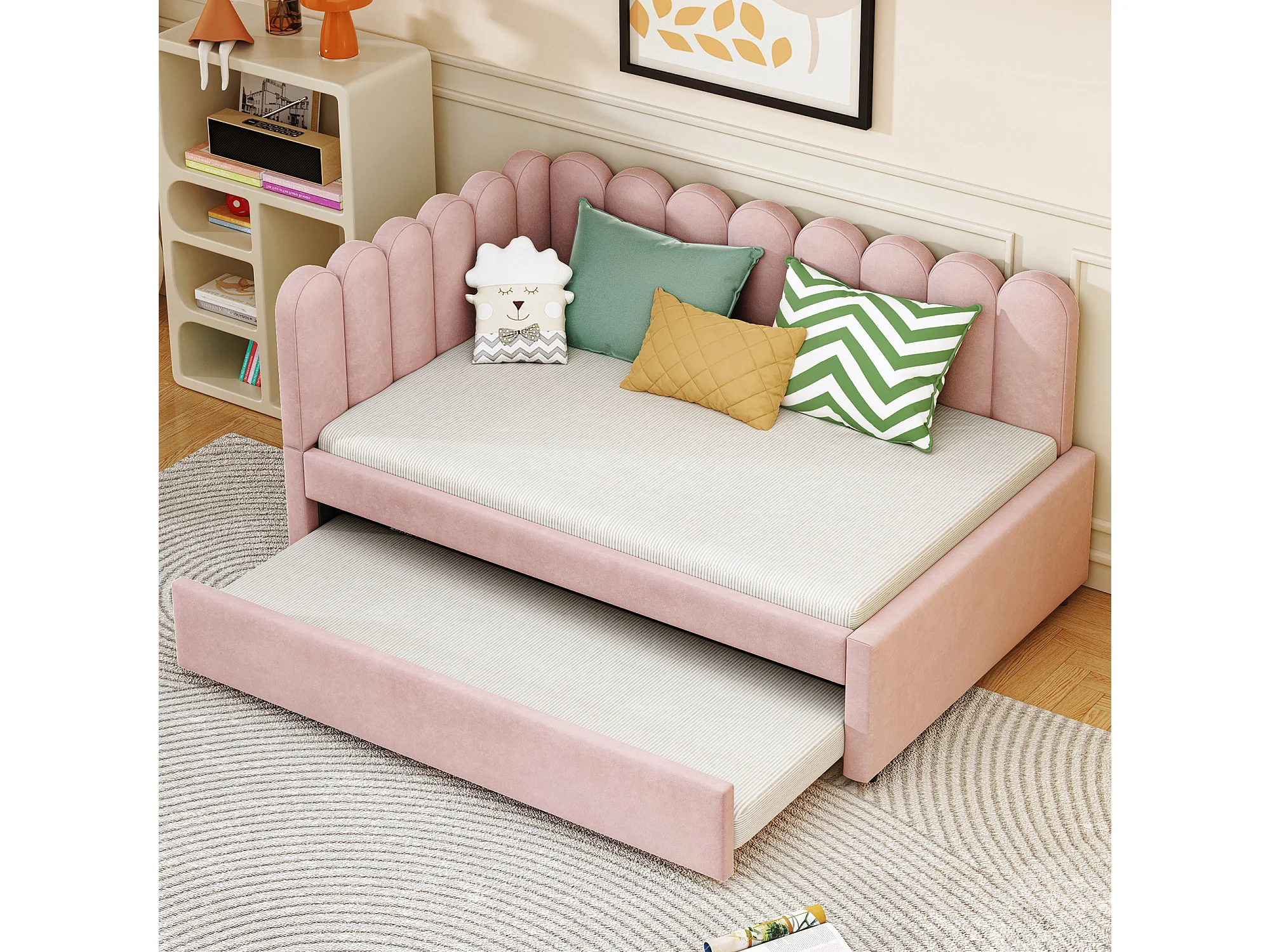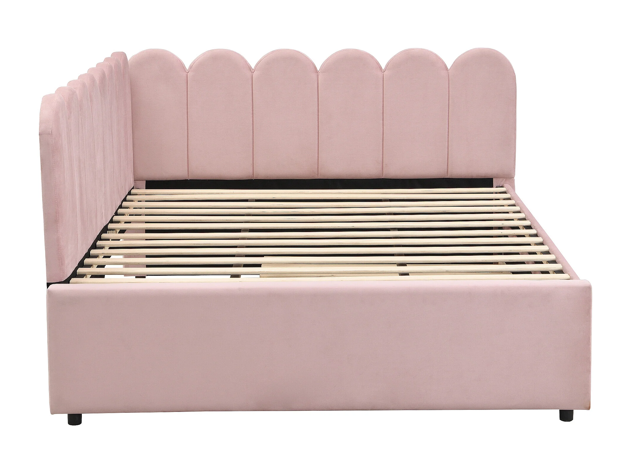 Lit banquette 140x200 cm - Lit adulte avec lit gigogne et sommier à lattes - velours rose - sans matelas
