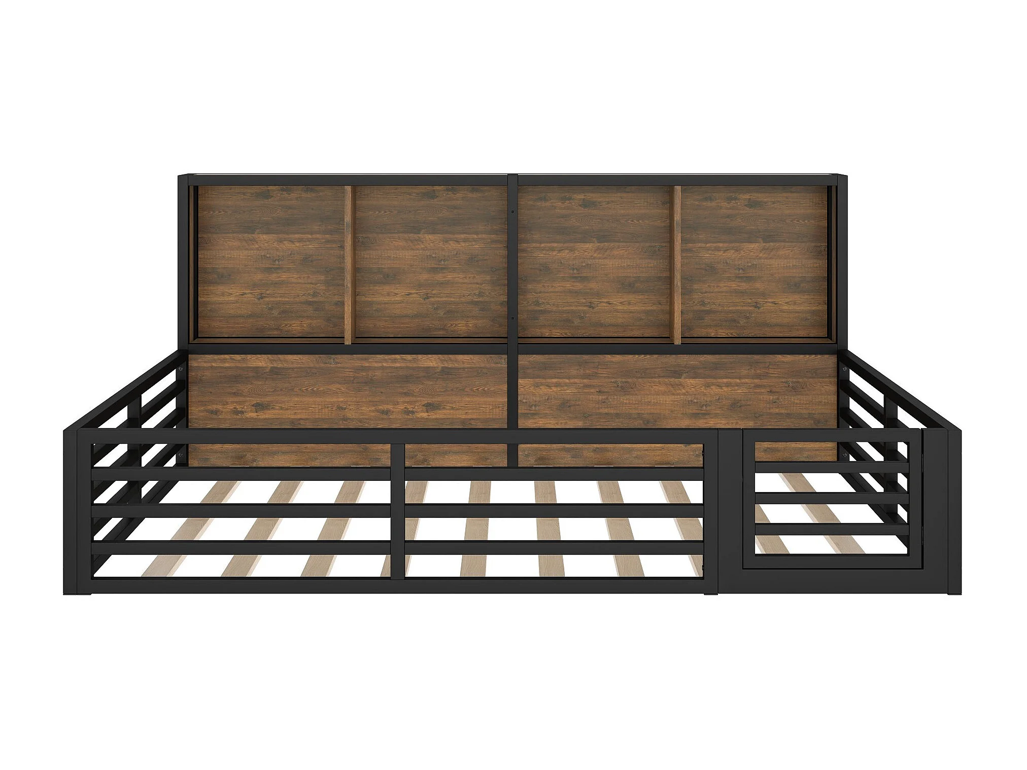 Lit banquette 140x200 cm Lit enfant avec rangements et barrières de sécurité, structure métal - noir (sans matelas)