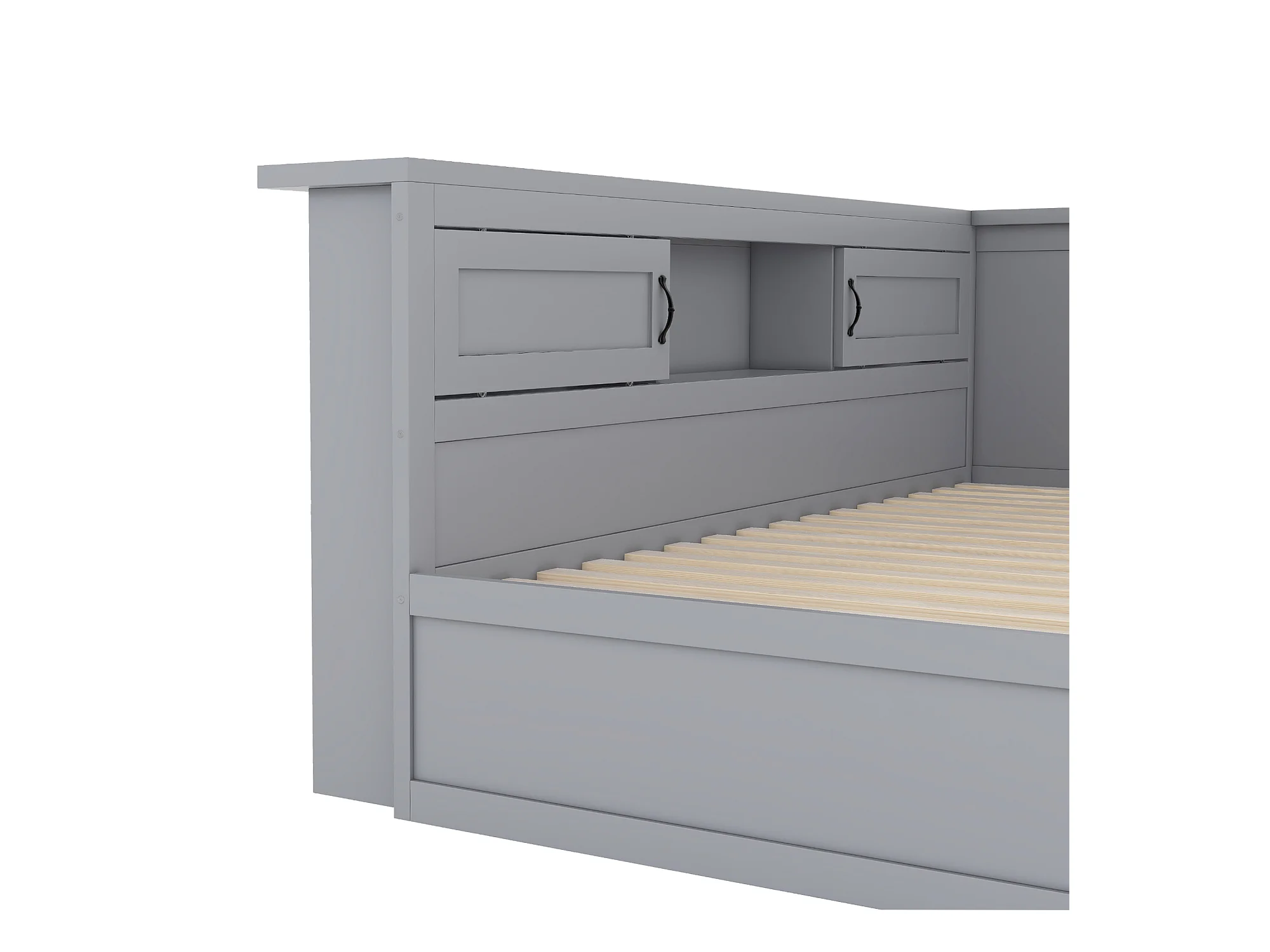 Lit banquette 140x200cm avec LED et prises - avec un lit gigogne 90x190cm - Gris