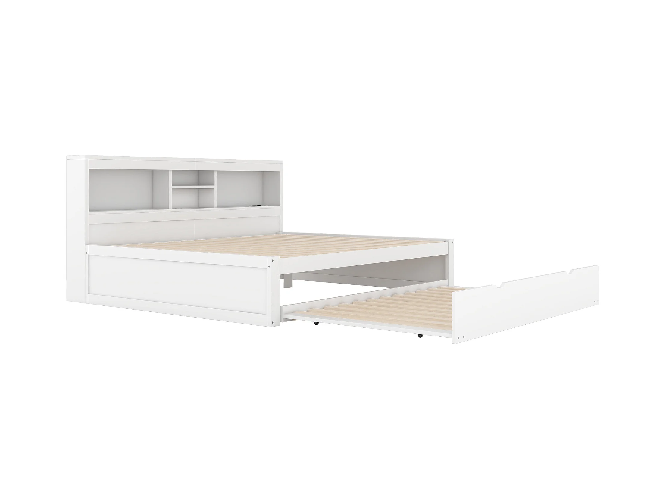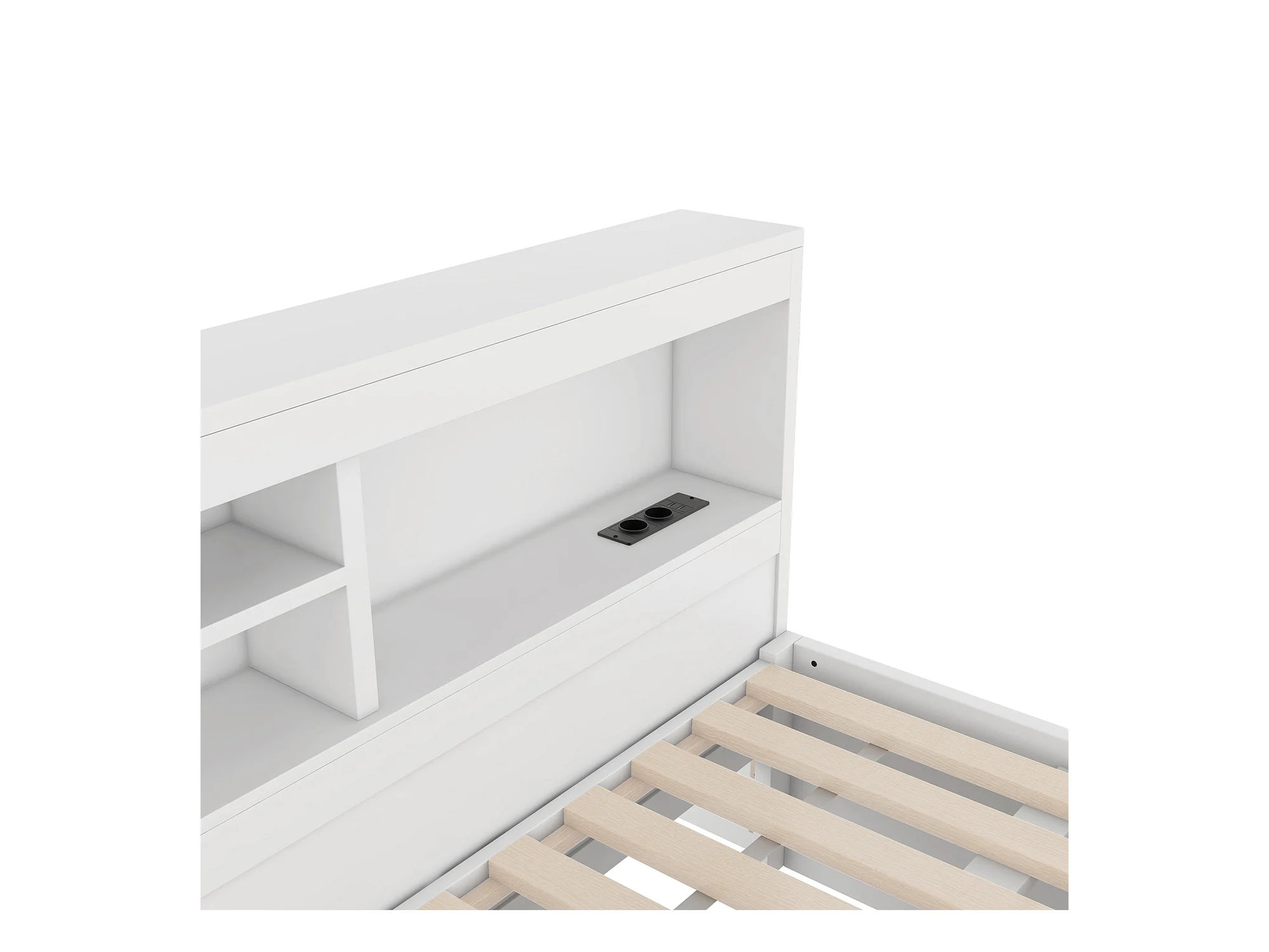 Lit banquette 140x200cm avec un lit gigogne 90x190cm - chevet de rangment avec LED et prises - Blanc