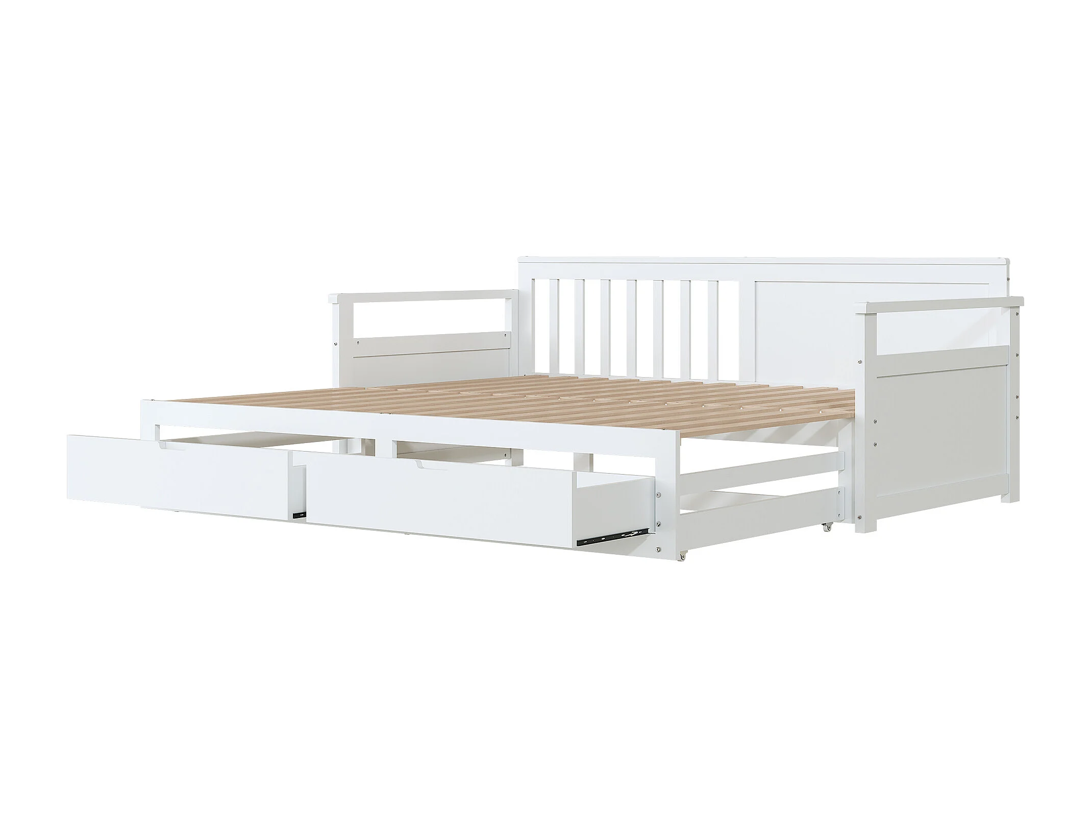 Lit banquette 90 (180) x 190cm avec 2 tiroirs - Multifonctionnel 2 en 1 en bois - Blanc