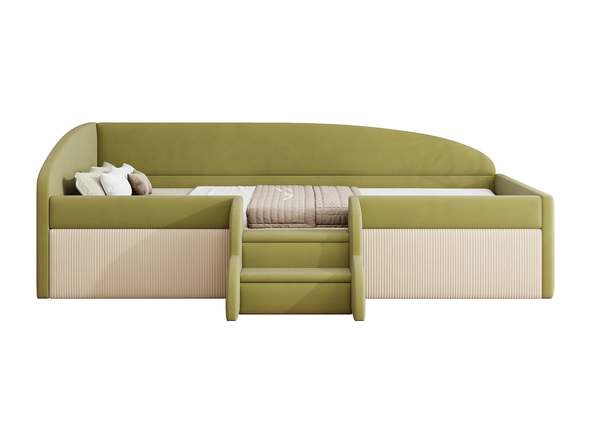 Lit banquette 90x190 cm - Lit enfant avec sommier à lattes - en velours - vert foncé + beige - sans matelas