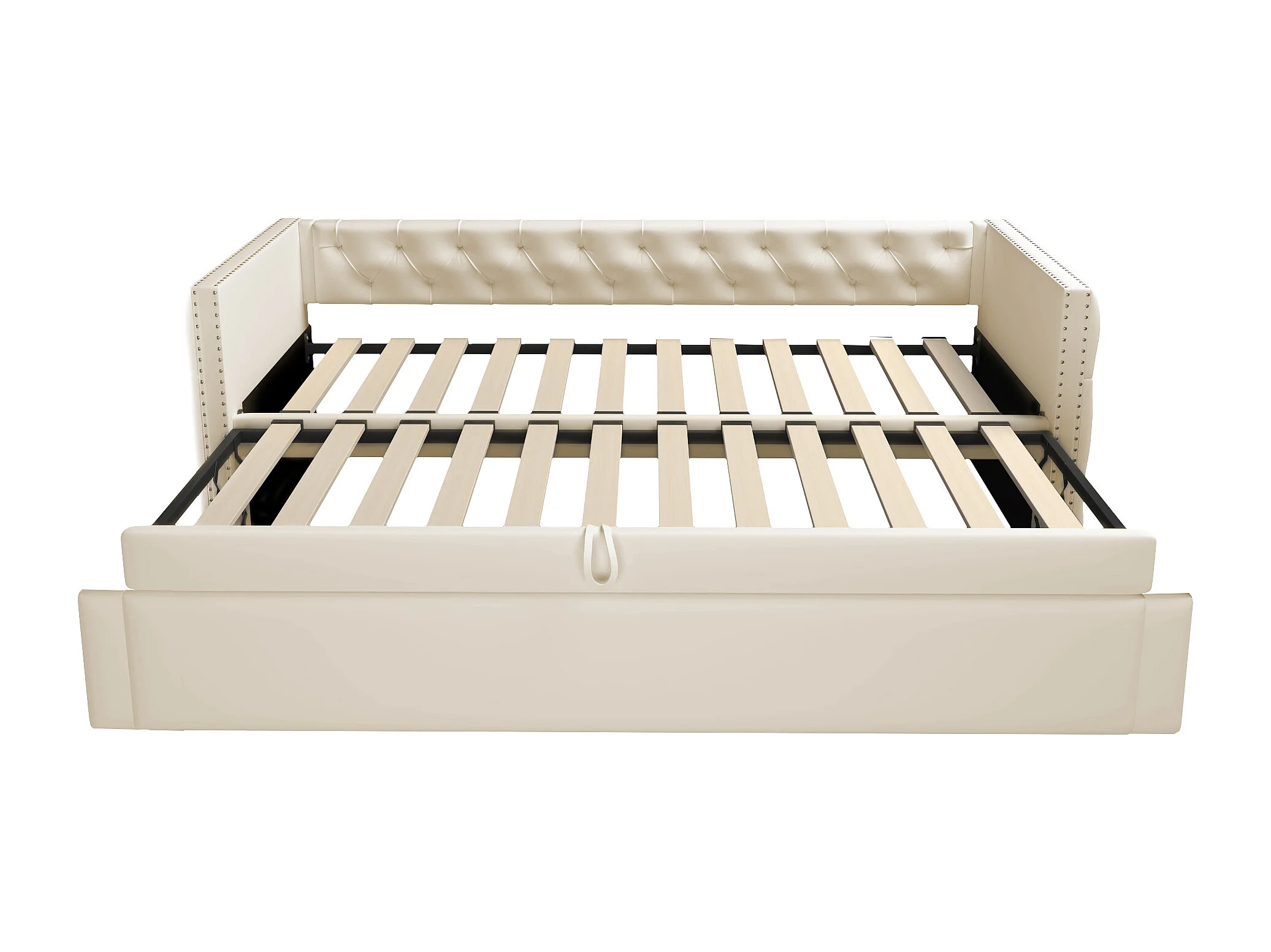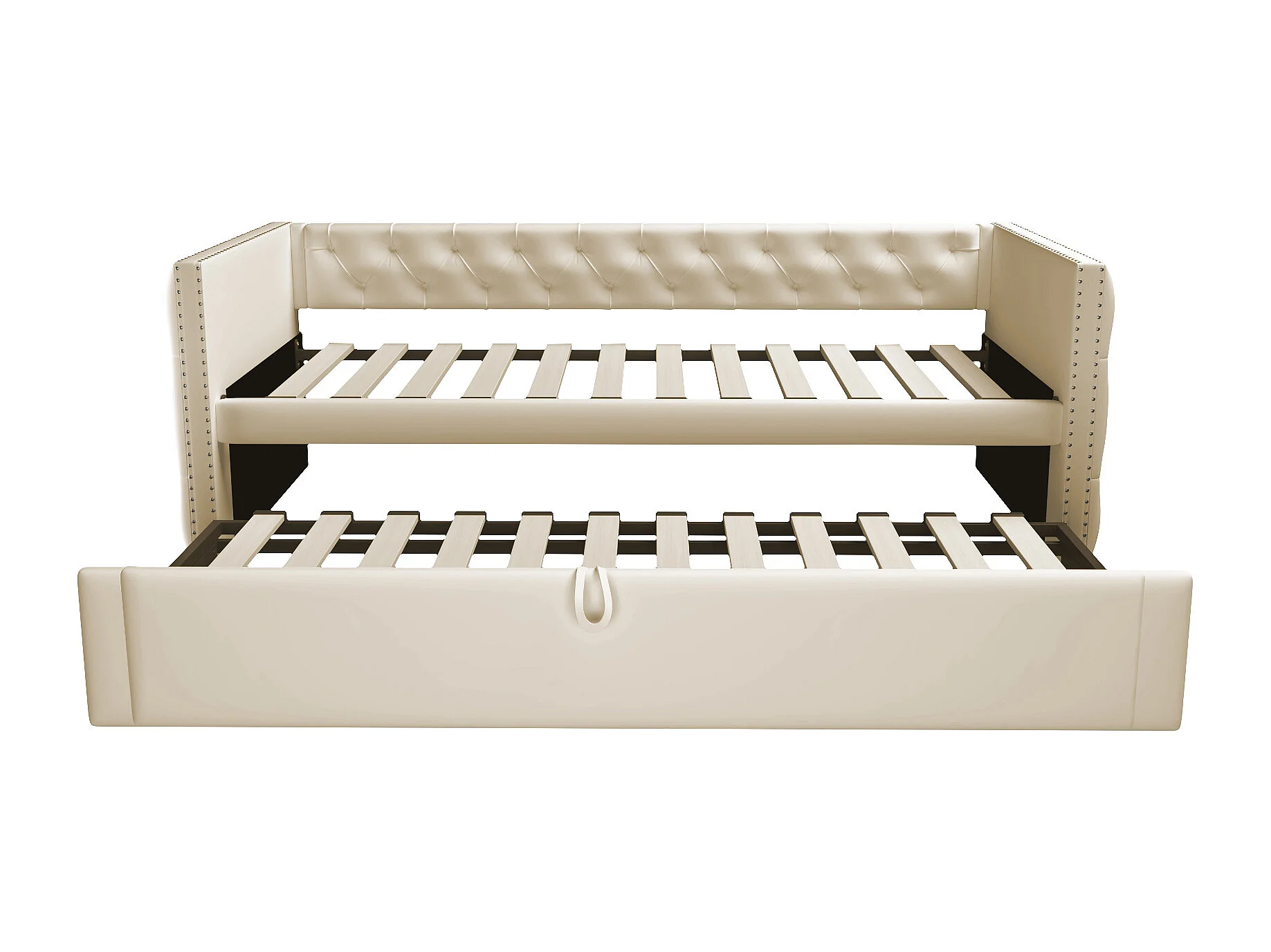 Lit banquette 90x200 cm - Lit enfant avec lit gigogne et sommier à lattes - velours beige - sans matelas