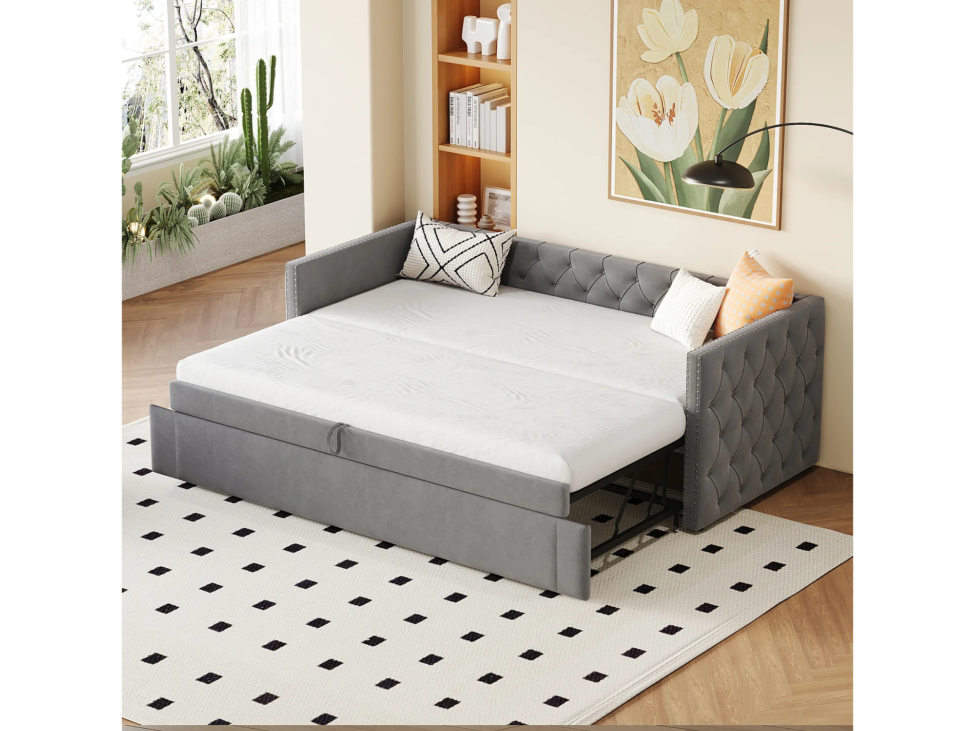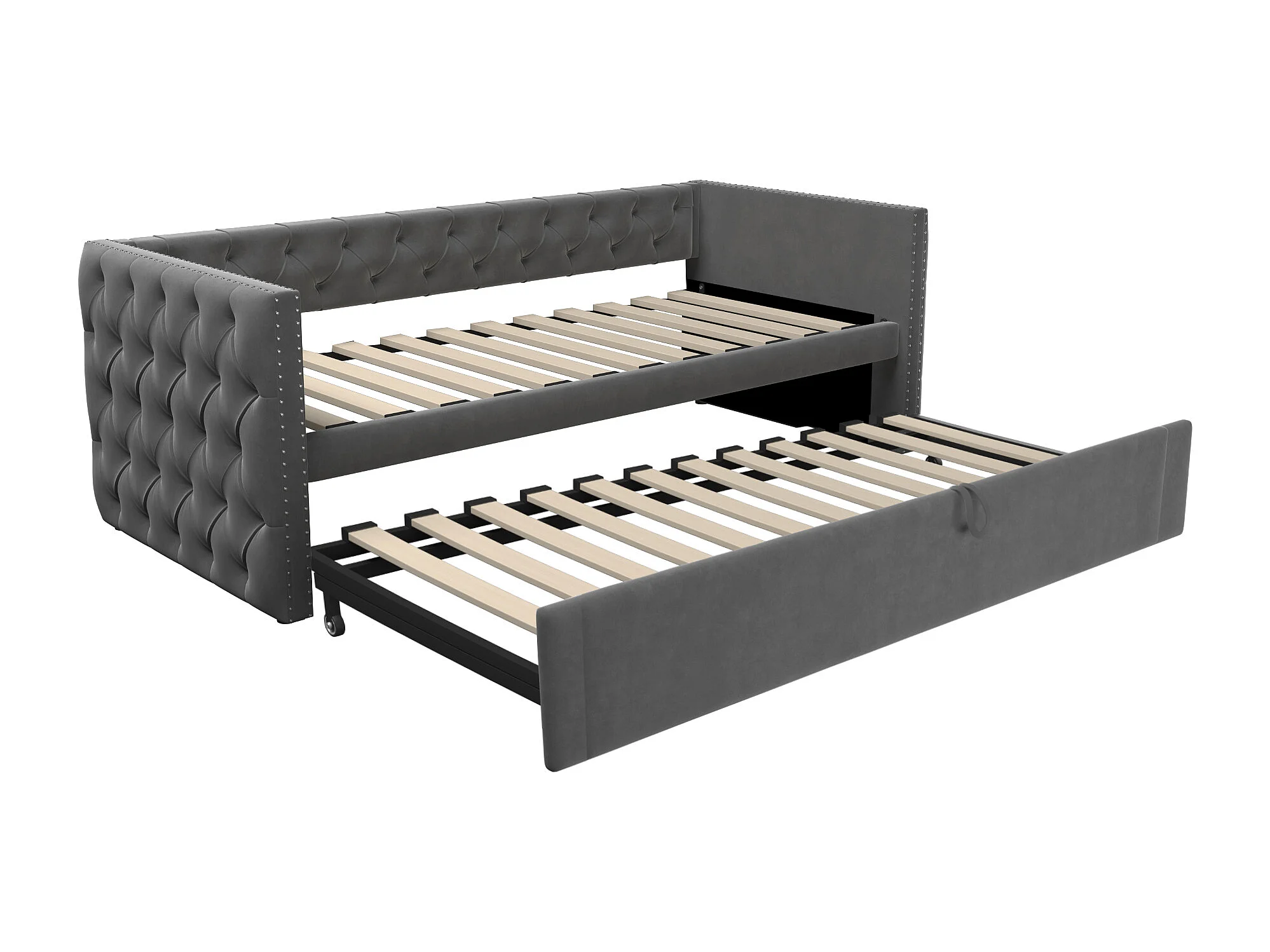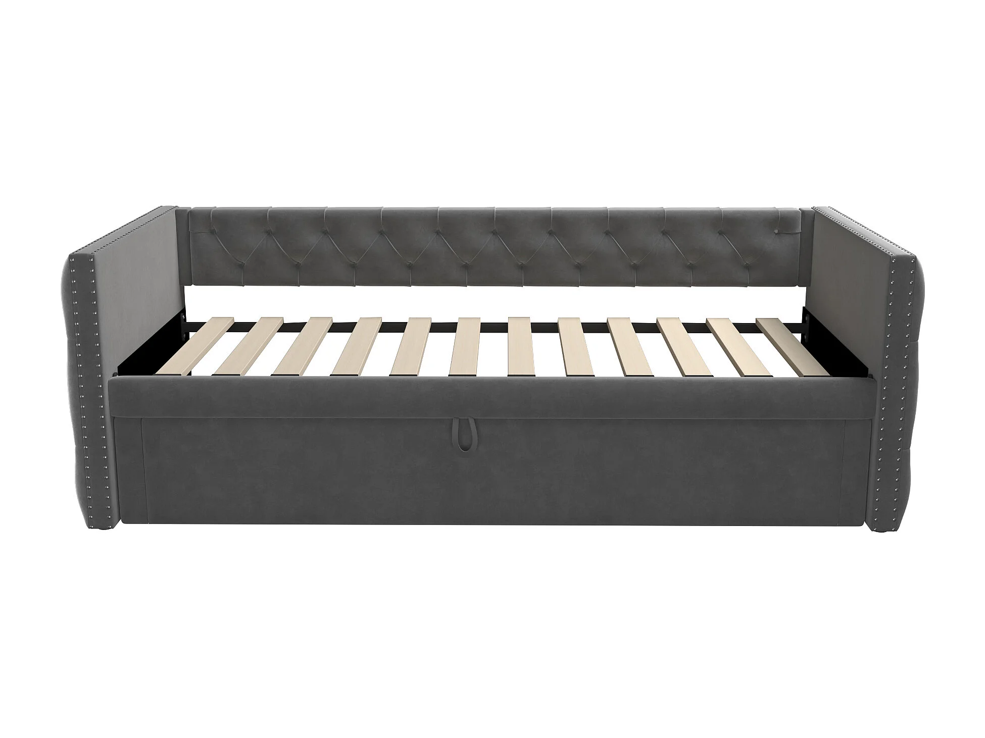Lit banquette 90x200 cm - Lit enfant avec lit gigogne et sommier à lattes - velours gris - sans matelas