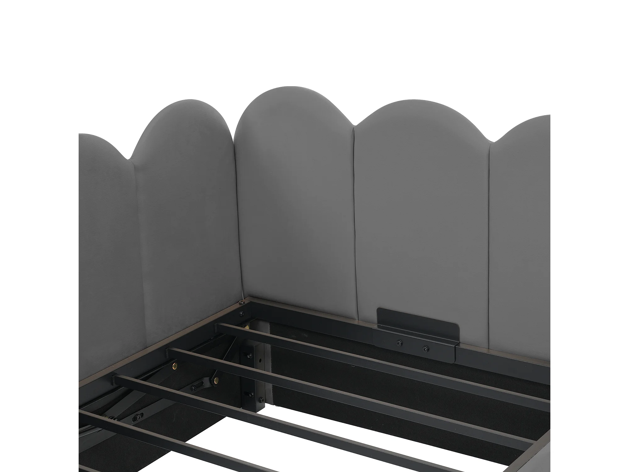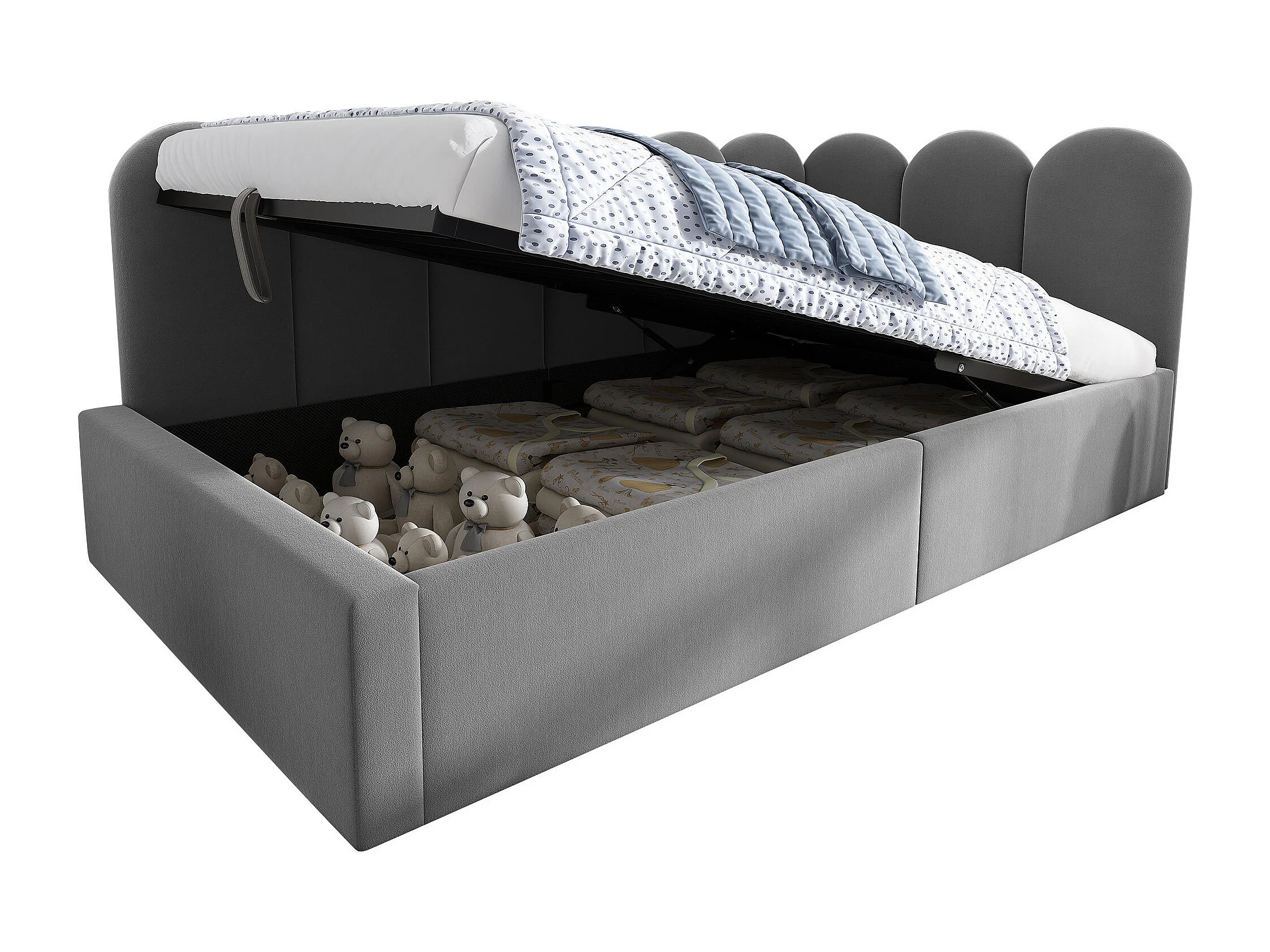 Lit banquette 90x200 cm - Lit enfant avec rangement et sommier à lattes métalliques - velours gris - sans matelas