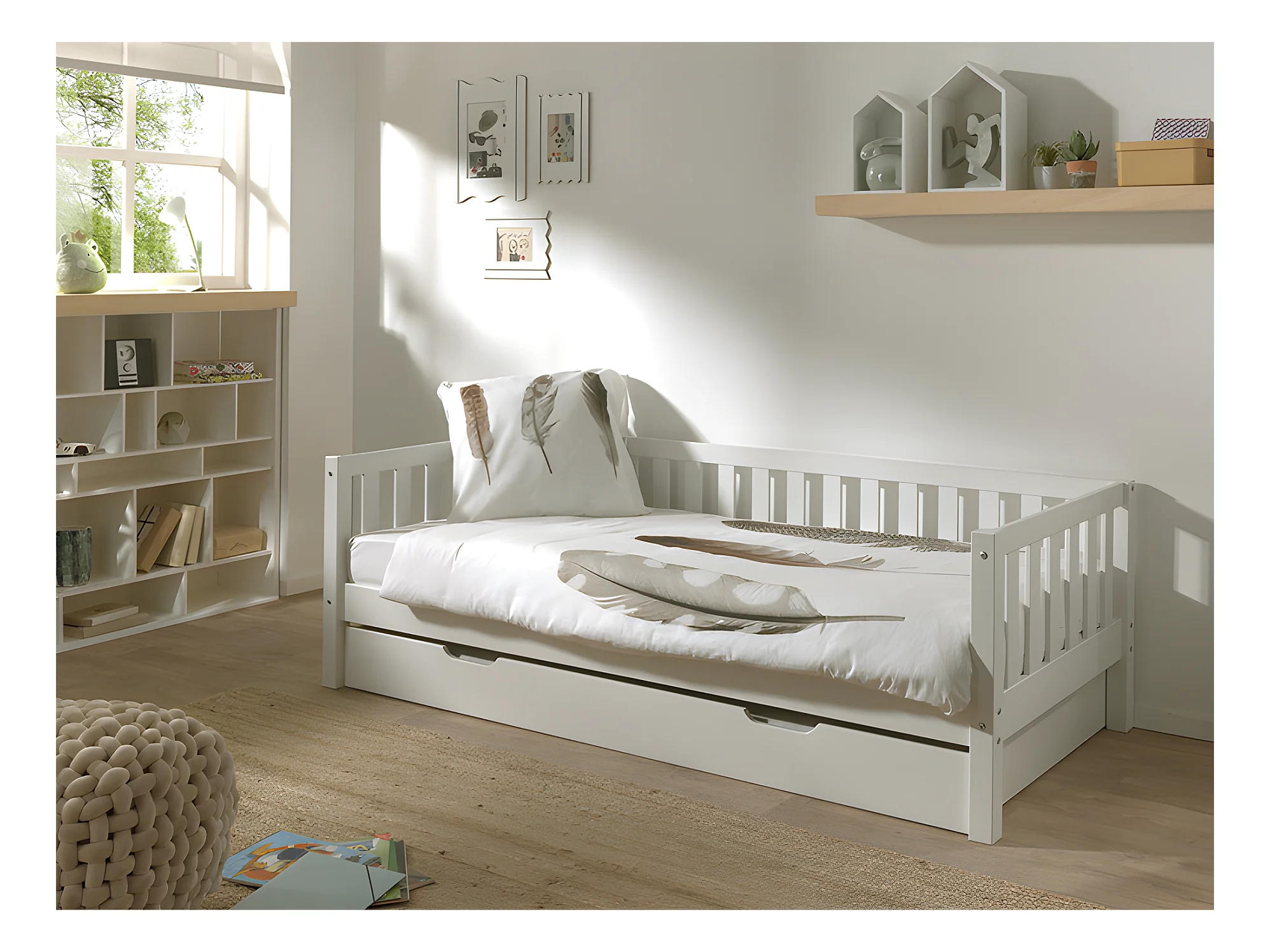 Pack - Lit Capitaine Enfant & Tiroir "Fritz" 90x200cm Blanc