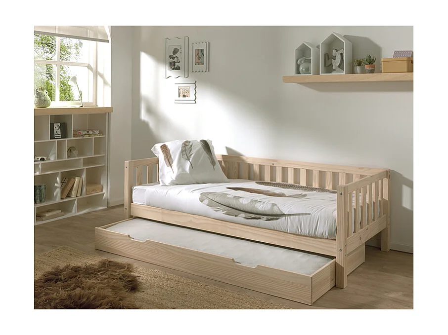 Pack - Lit Capitaine Enfant & Tiroir "Fritz" 90x200cm Naturel