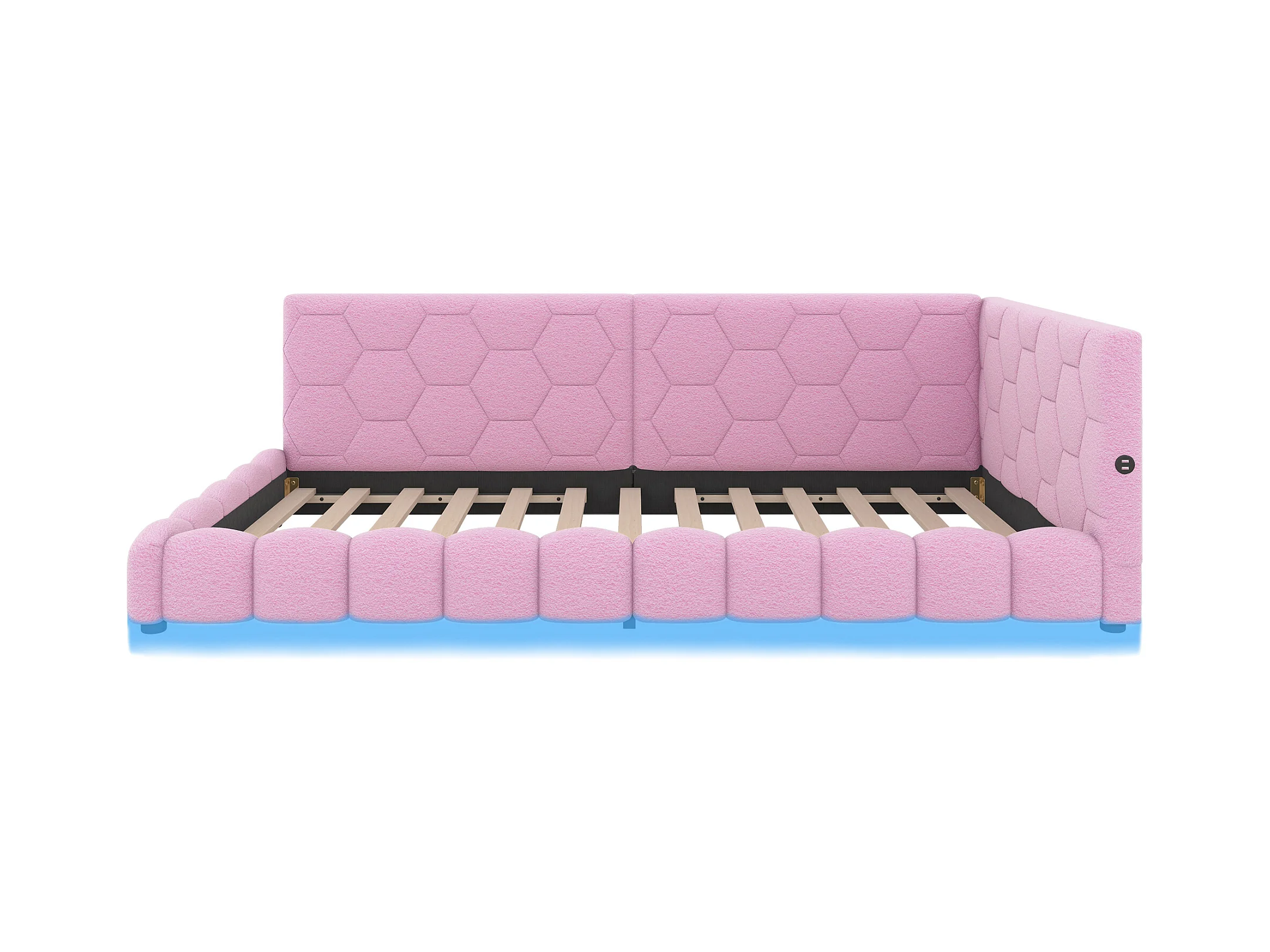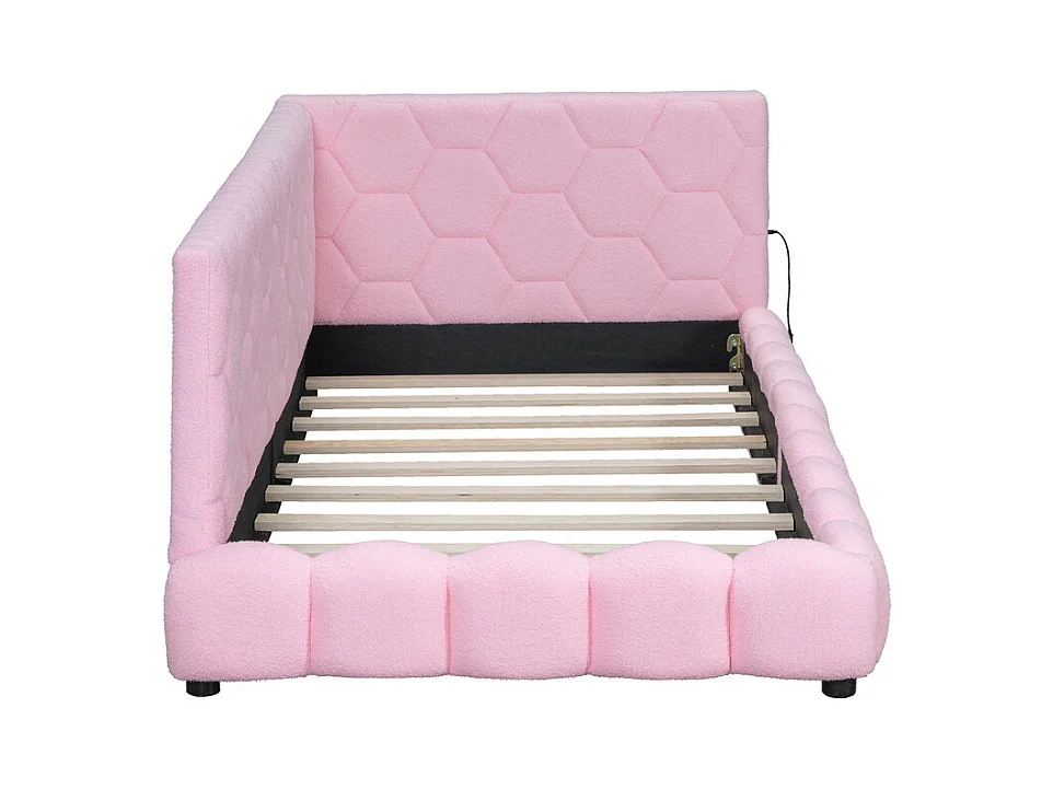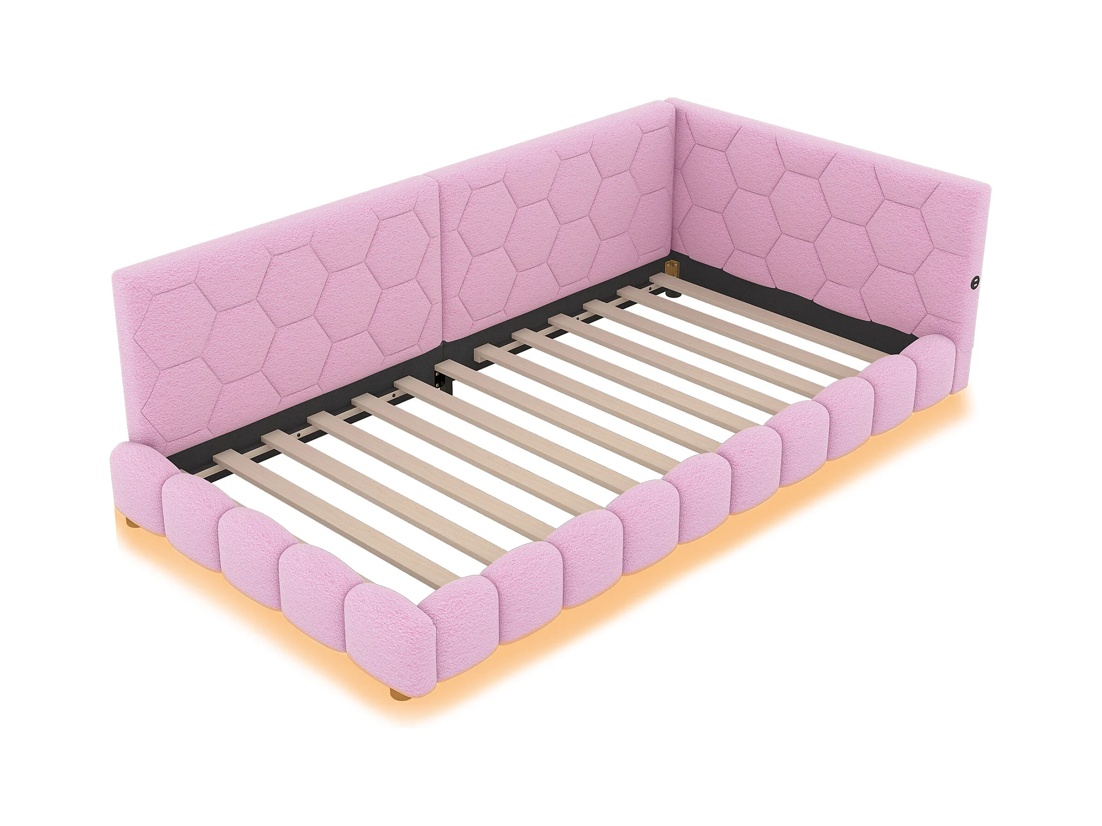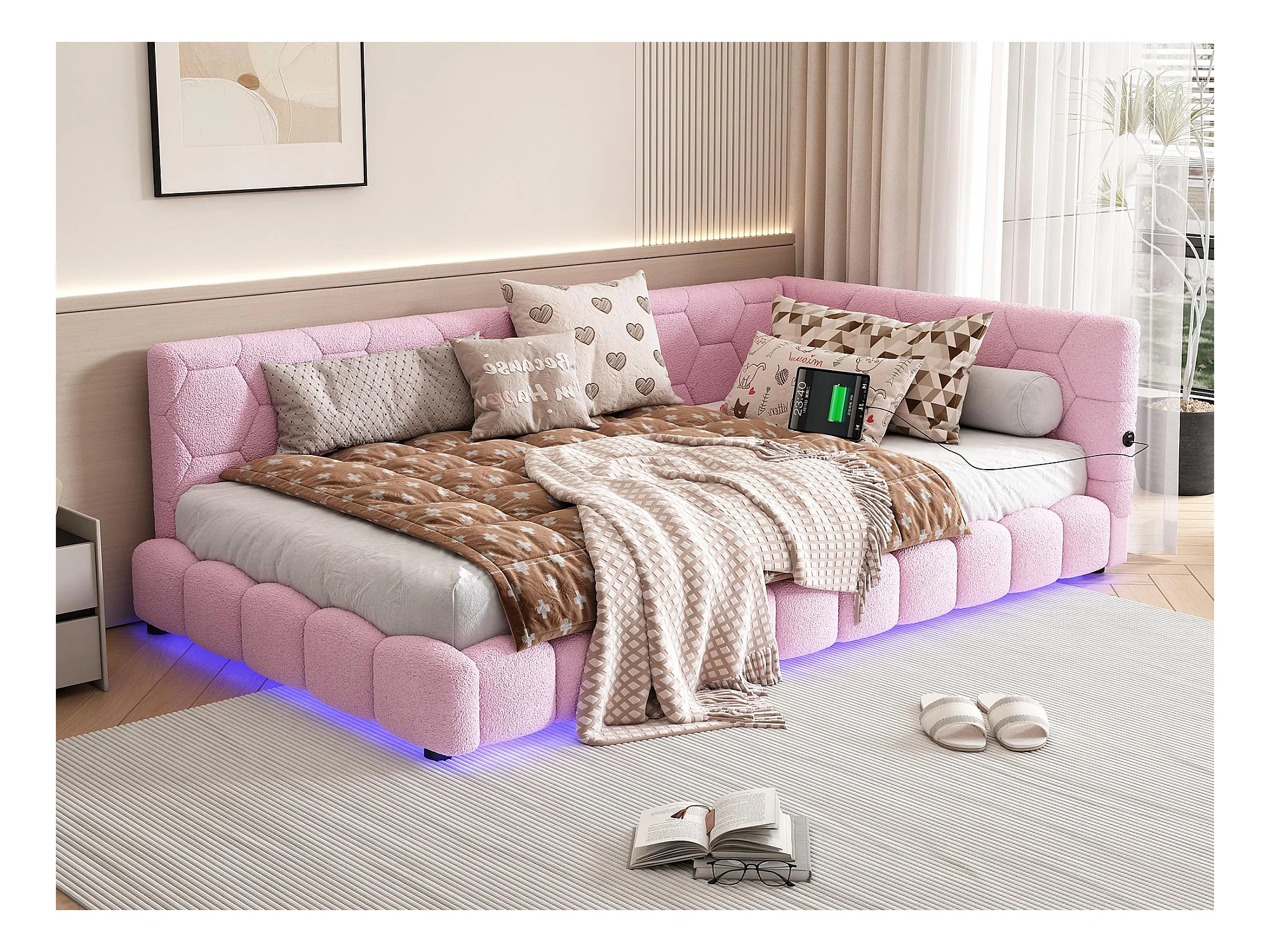 Lit banquette 90x200cm en velours - avec LED et Port USB - Rose
