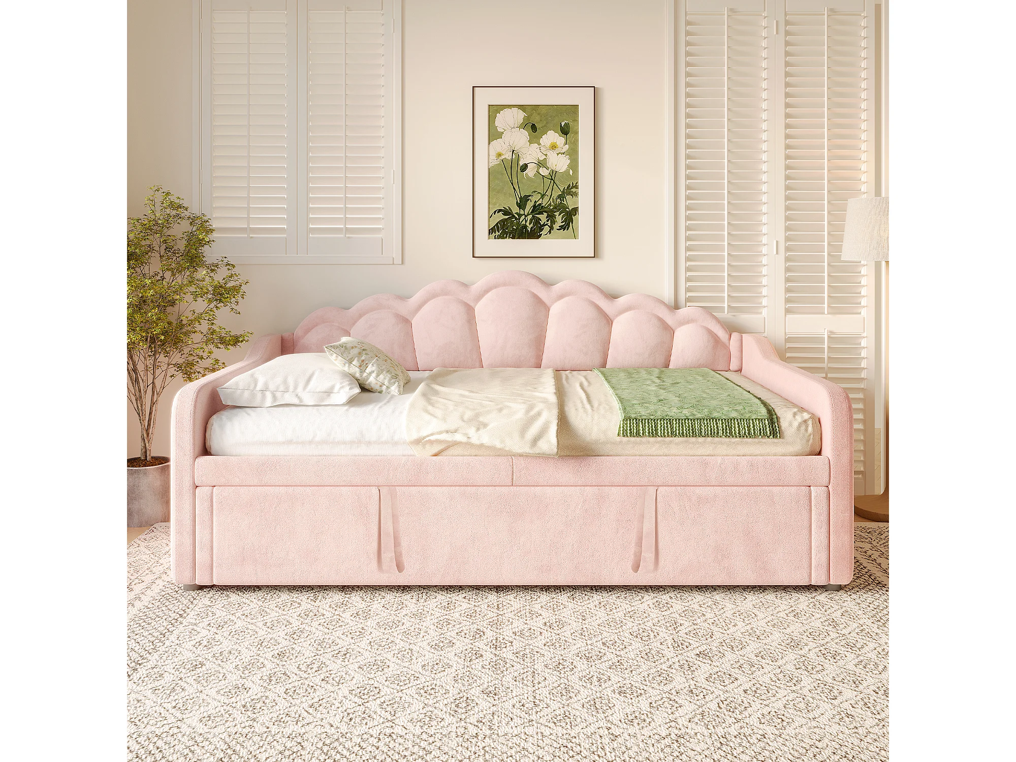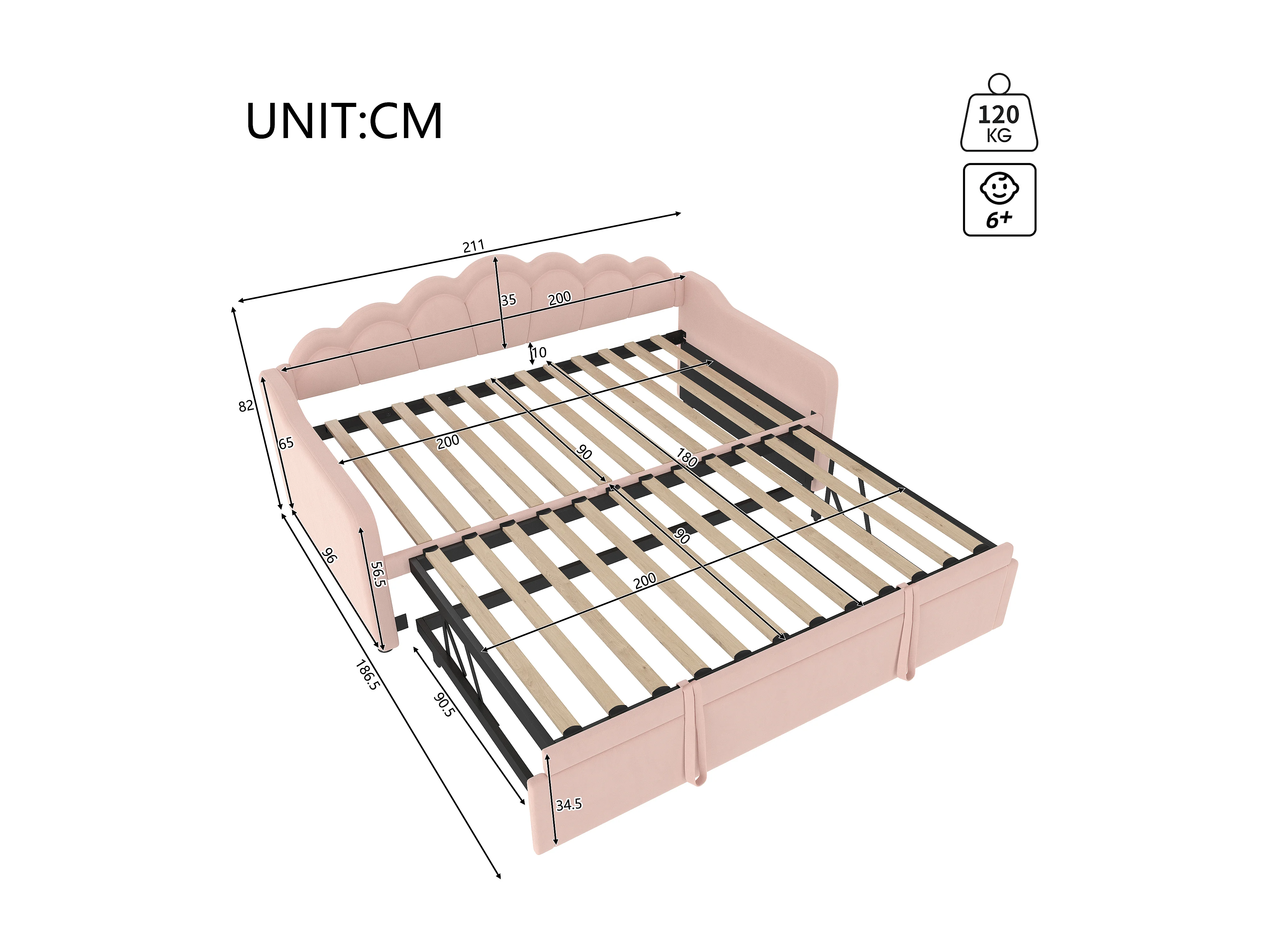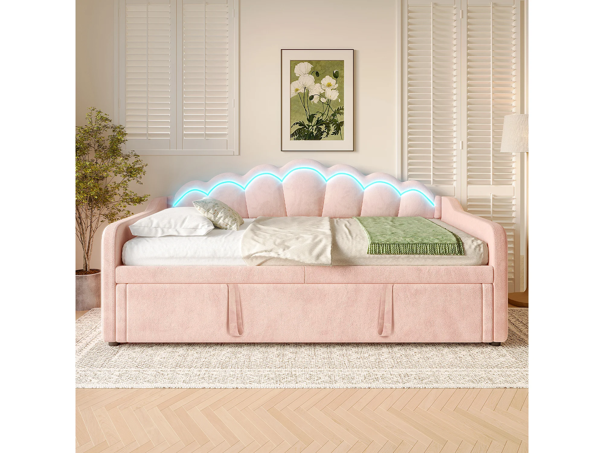 Lit banquette avec lit gigogne - 90/180 x 200 cm - avec Leds - velours - rose
