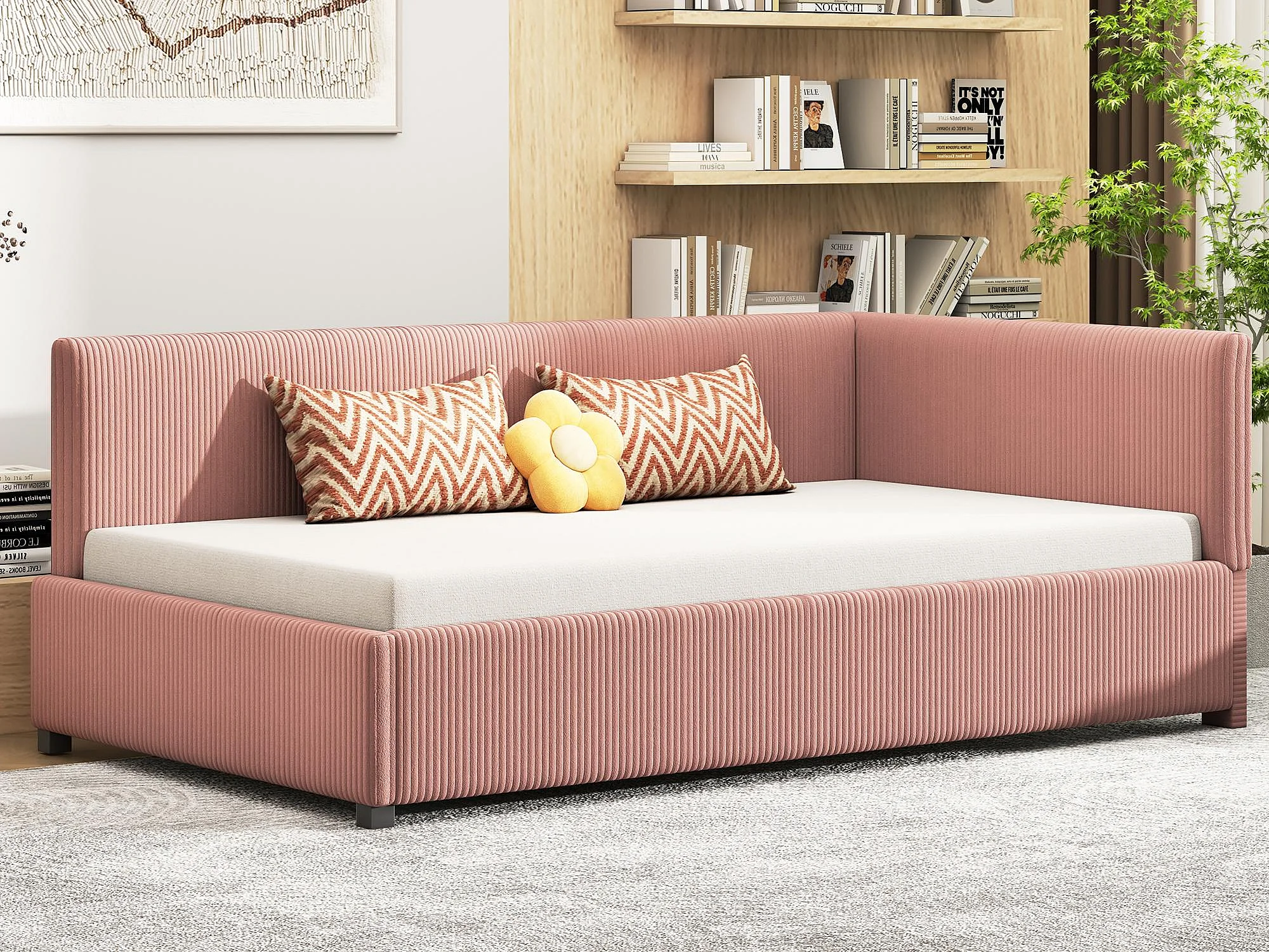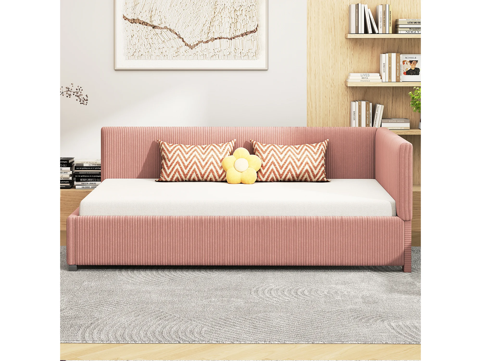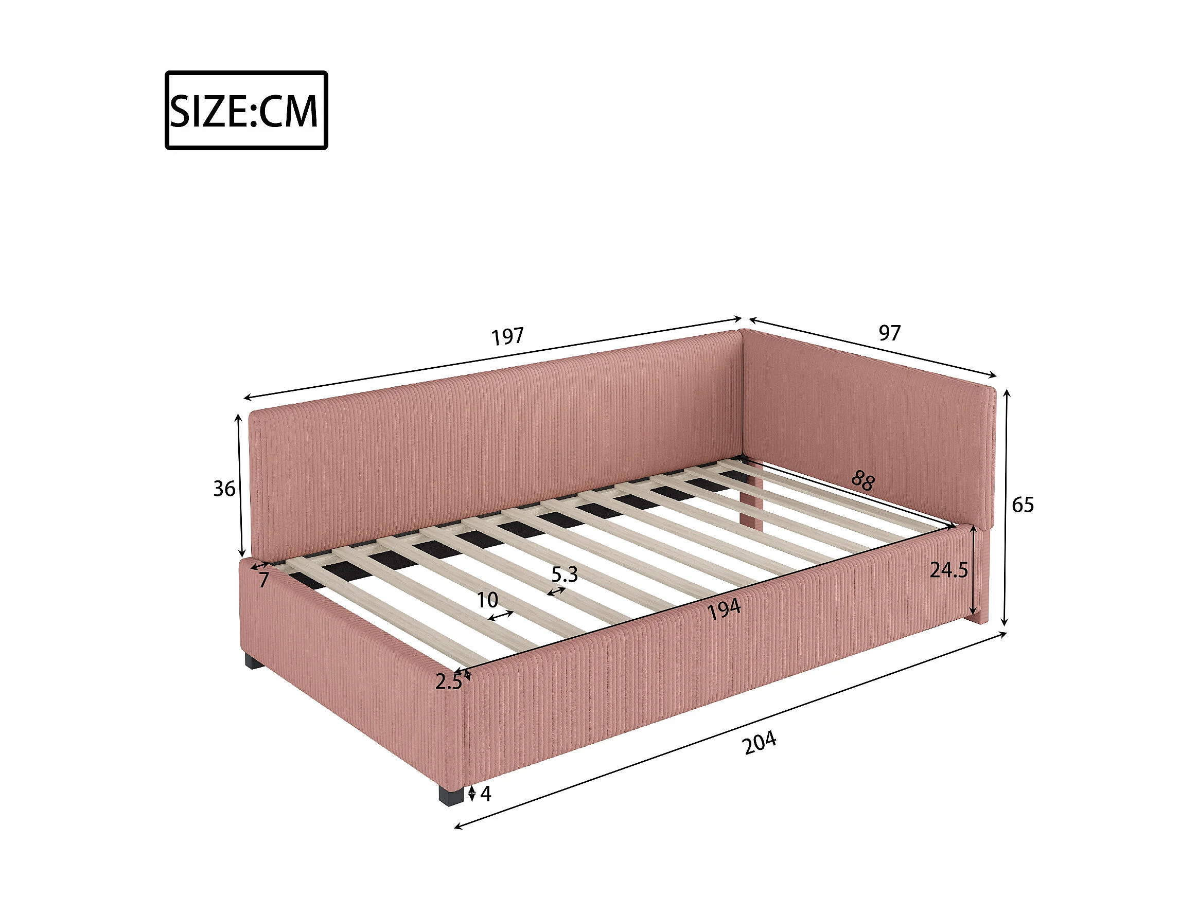 Lit banquette capitonné 90x200cm en velours - avec sommier à lattes - Rose