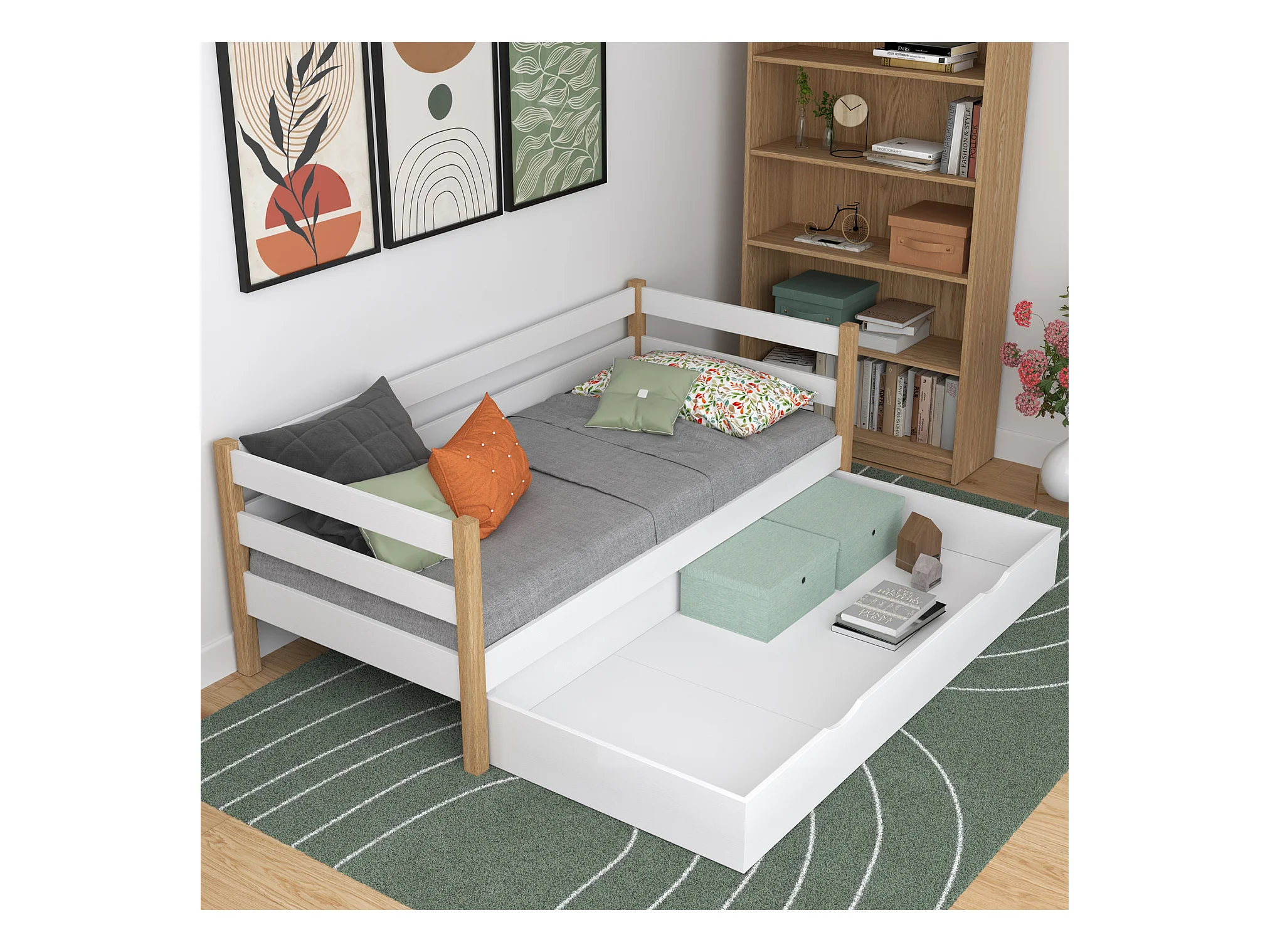 Lit banquette en bois - avec tiroir N01 Blanc / Chêne Naturel 90x190