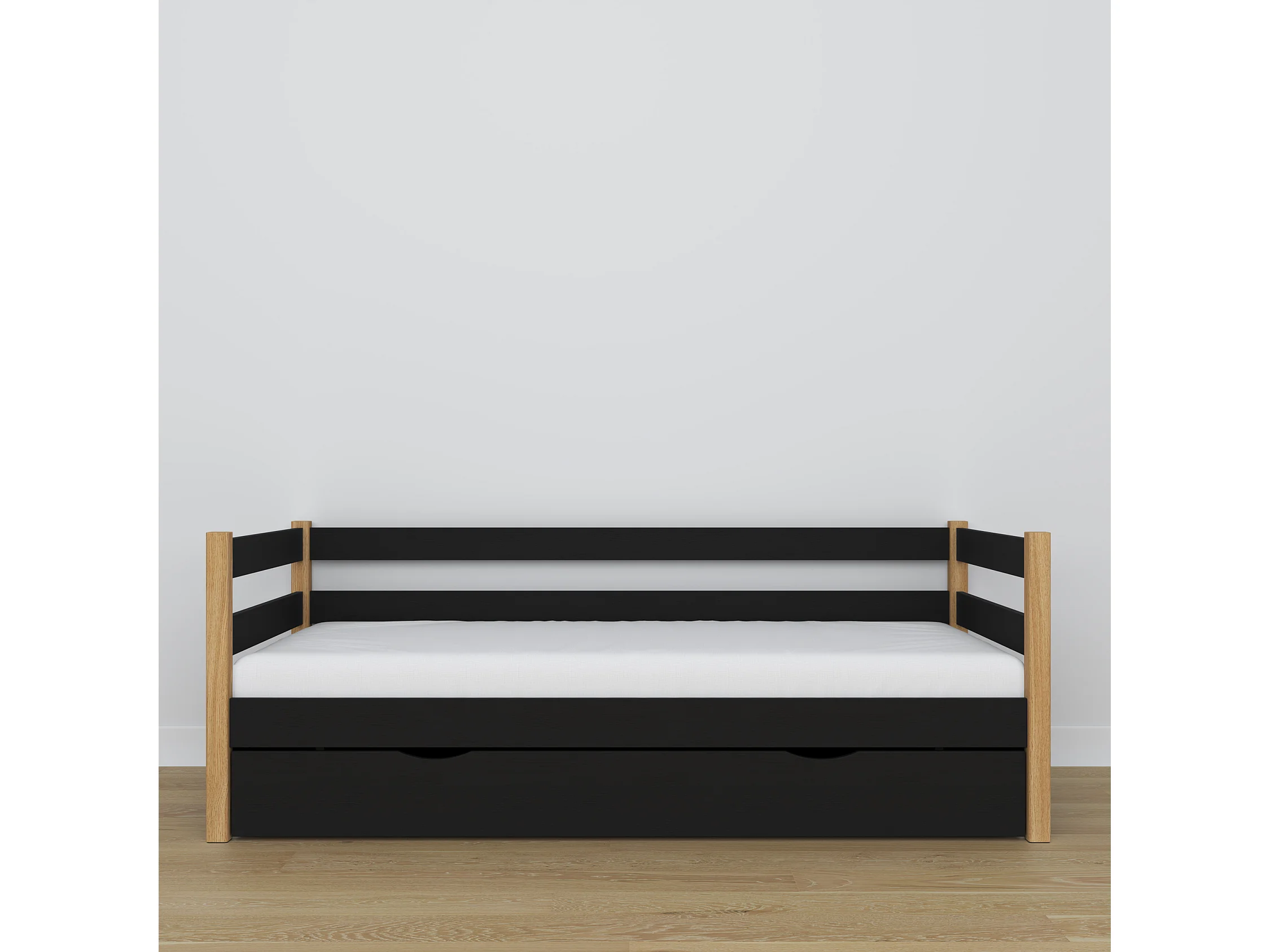 Lit banquette en bois - avec tiroir N01 Noir / Chêne Naturel 90x180
