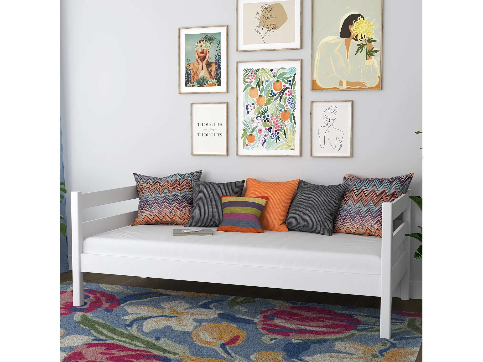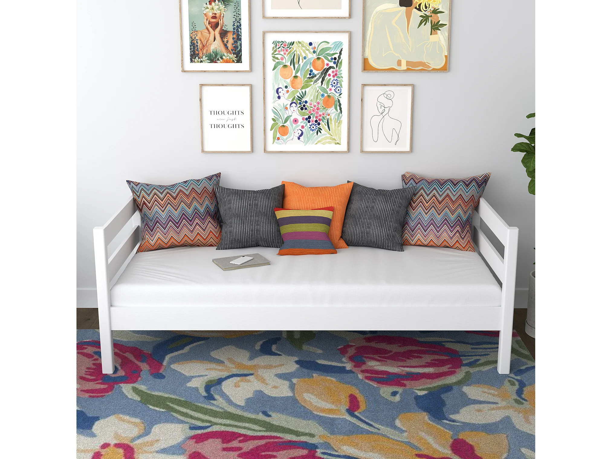 Lit banquette en bois N01 Blanc 90x200