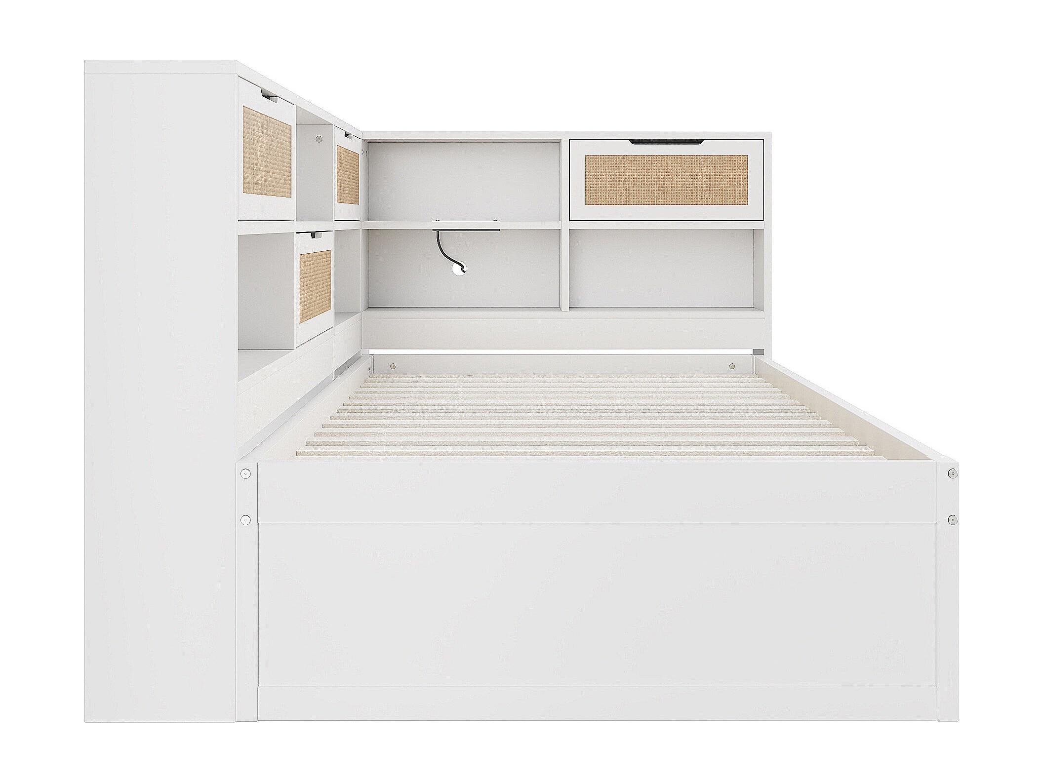 Lit banquette enfant blanc et bois 90x200cm avec lit gigogne 90x190cm , multiples rangements et port de charge (sans matelas)